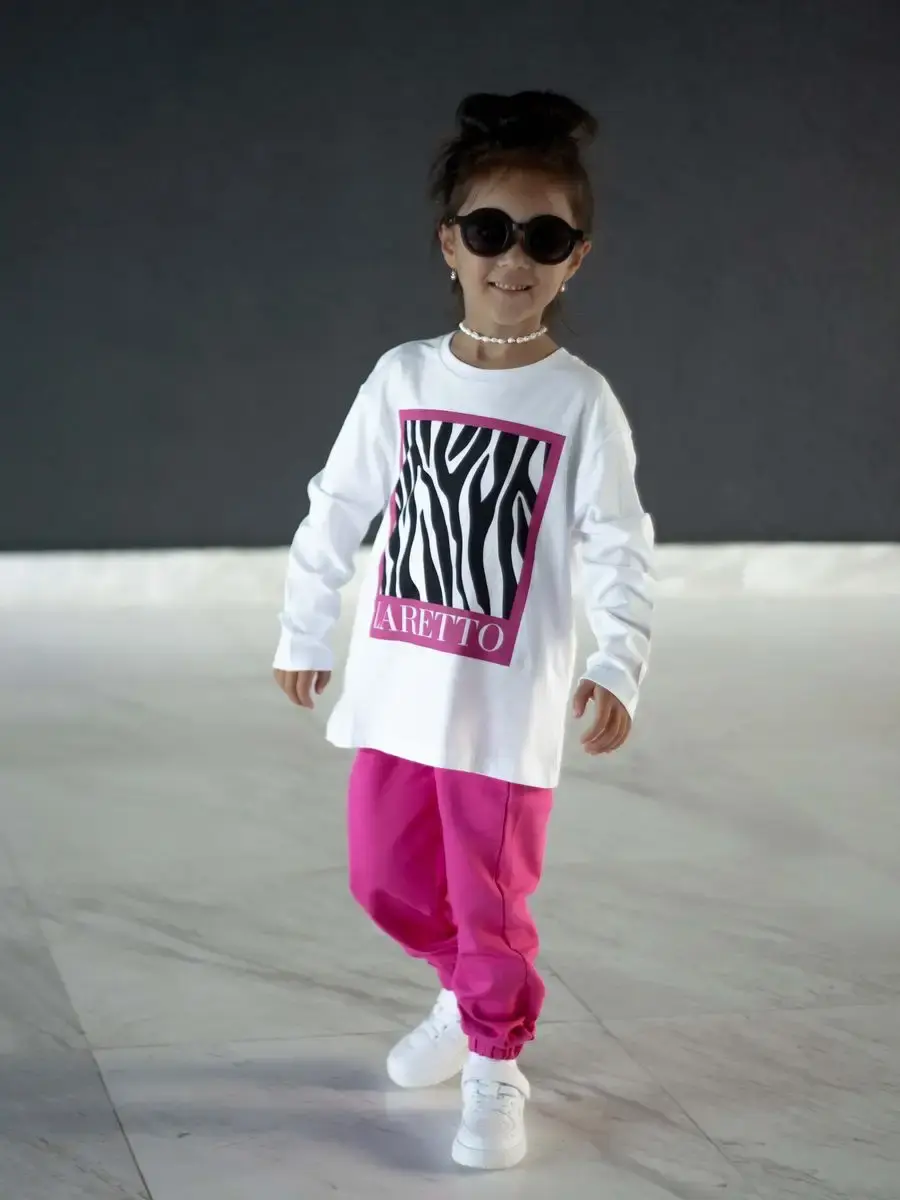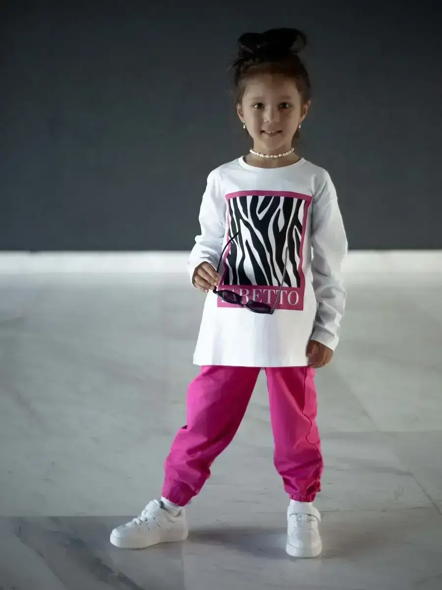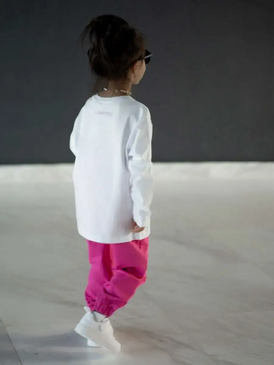 Спортивный костюм для девочек, который сочетает в себе стиль, комфорт и качество. Этот трикотажный детский костюм состоит из удобного лонгслива и модных джоггеров, которые подарят вашей малышке свободу движений в прохладные осенние дни.