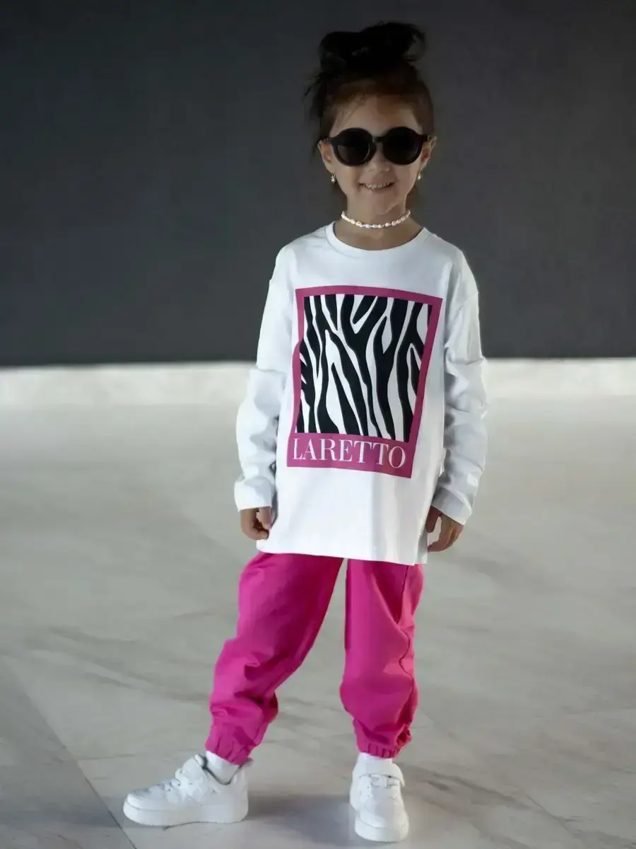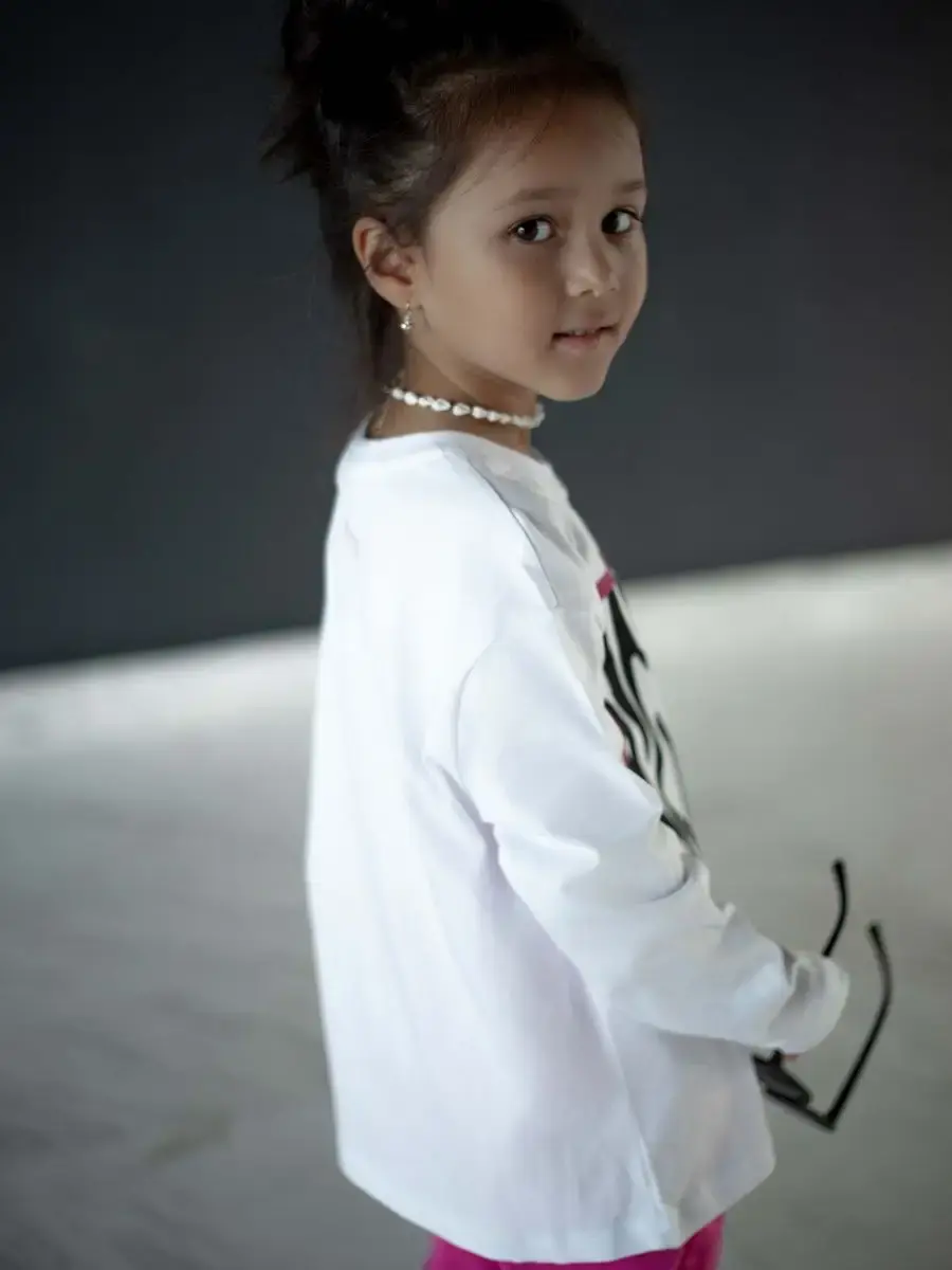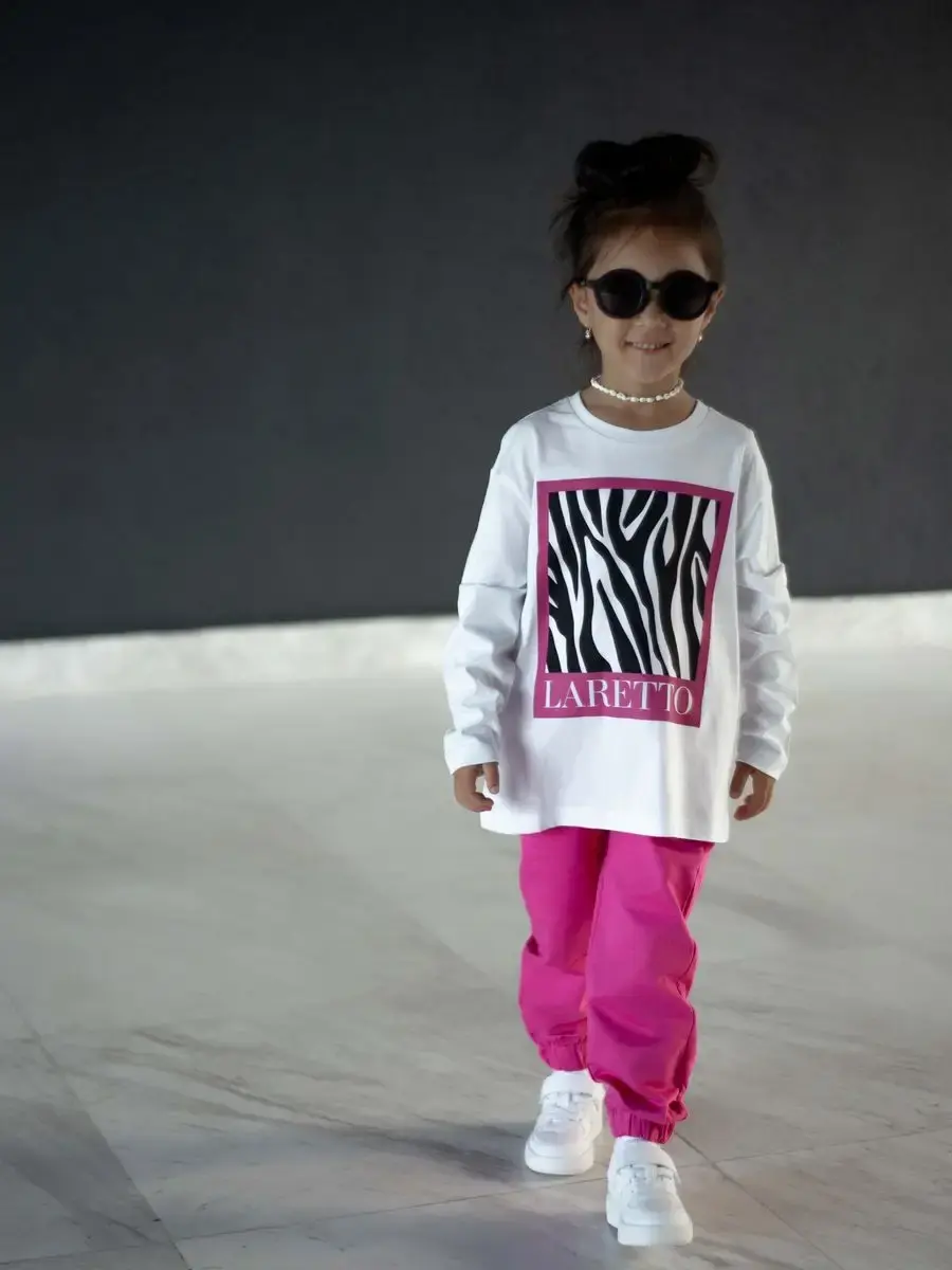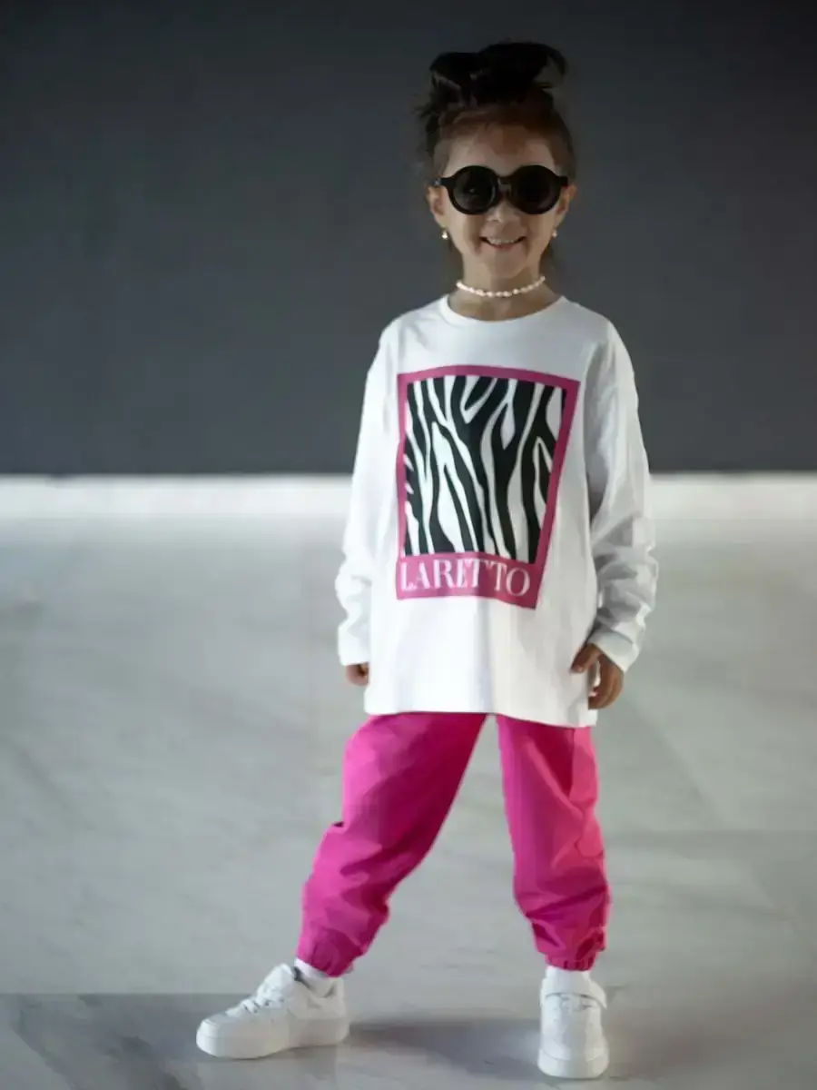 Спортивный костюм для девочек, который сочетает в себе стиль, комфорт и качество. Этот трикотажный детский костюм состоит из удобного лонгслива и модных джоггеров, которые подарят вашей малышке свободу движений в прохладные осенние дни.