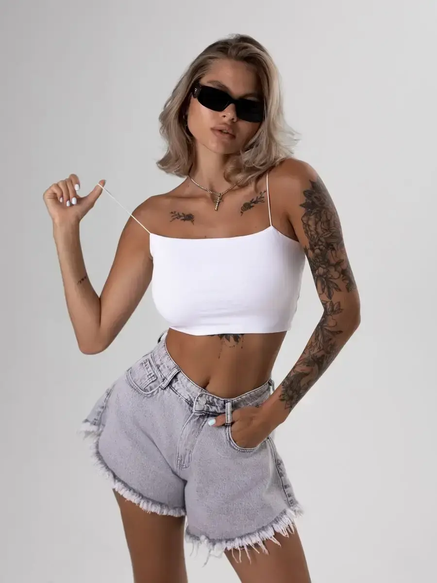 Добавьте яркости вашему гардеробу с этим стильным кроп-топом, идеальным выбором для жаркого лета и вечерних мероприятий. Этот топ на тонких бретелях объединяет в себе современные тренды и комфорт, не оставляя равнодушными любителей моды. Он станет незаменимой частью вашего гардероба. Изготовленный из легкого и дышащего материала, он обеспечивает максимальный комфорт в жаркую погоду. Двухслойная конструкция придает дополнительную поддержку и создает идеальный силуэт.