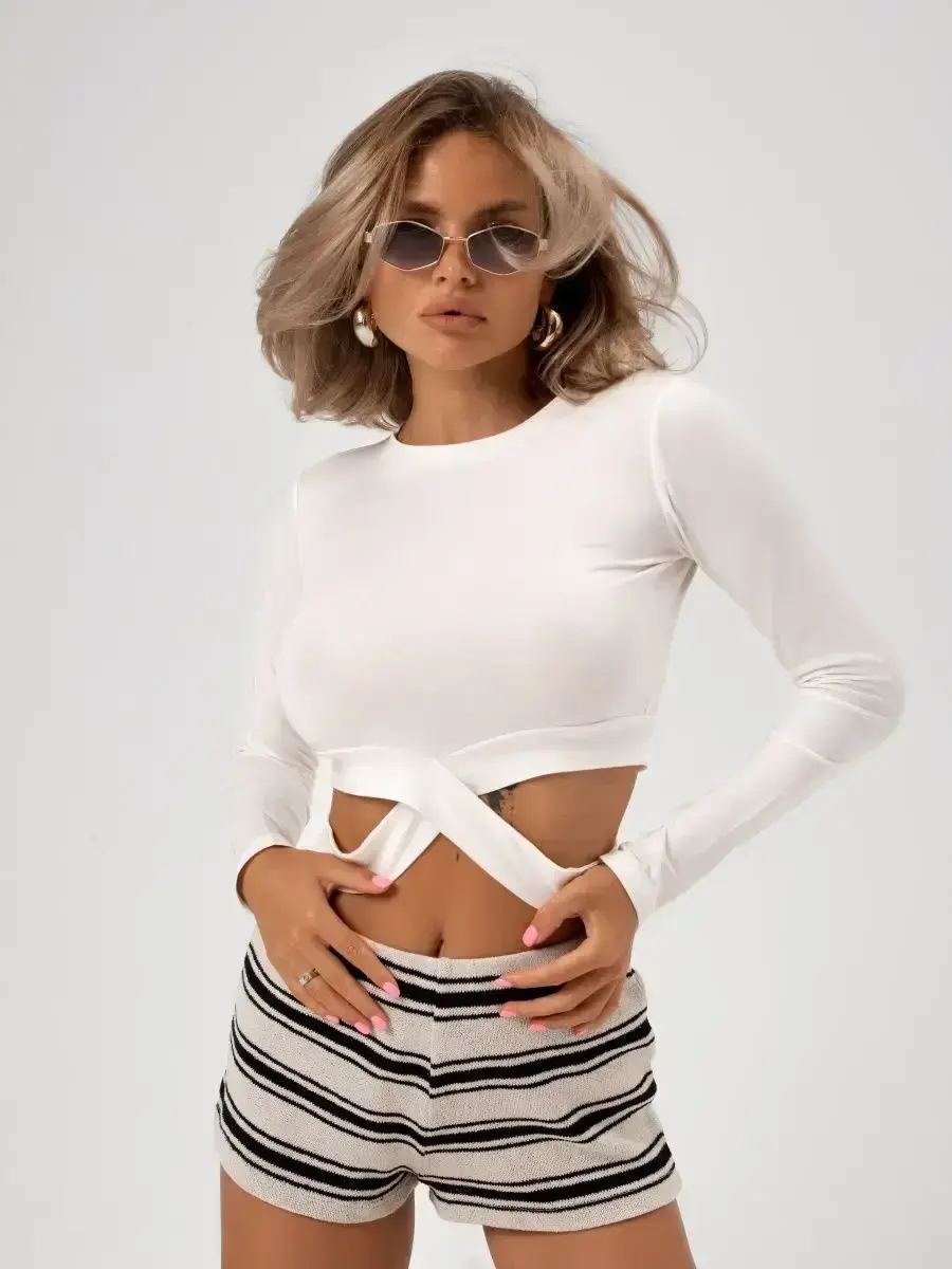 Лонгслив женский с длинным рукавом – это неотъемлемая часть гардероба. Кофта укороченная от бренда LARETTO станет практичным решением для офиса, дома или прогулок. Топик имеет трендовый дизайн с двумя перекрестными лентами. Модный топ выполнен по типу рашгарда и прекрасно подойдет для занятий спортом. Он поможет вам без труда создать красивый look для любого случая. Подходит для подростков в школу. Кроп-топ утонченно дополняет и превосходно комбинируется с разными стилями. Отлично сочетается с любым низом и верхом одежды. Лонгслив с вырезом будет подходящим вариантом для встреч, свиданий и вечеринок. Изделие изготовлено из натуральной хлопковой ткани, максимально удобно и долговечно. Водолазка без горла очень комфортна, не вытягивается и не сохраняет свою первоначальную форму даже после множества стирок. Качественный текстиль не образует катышки и не теряет цвет. Ровные швы, идеальные лекала и посадка. Ткань топика нет необходимости гладить. Облегающий крой подчеркивает фигуру и визуально стройнит. С данной моделью легко создавать как спортивные, так и романтичные образы.