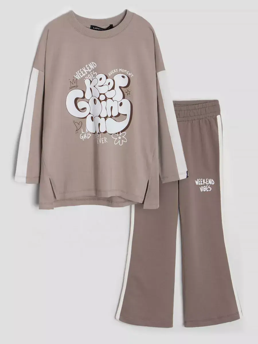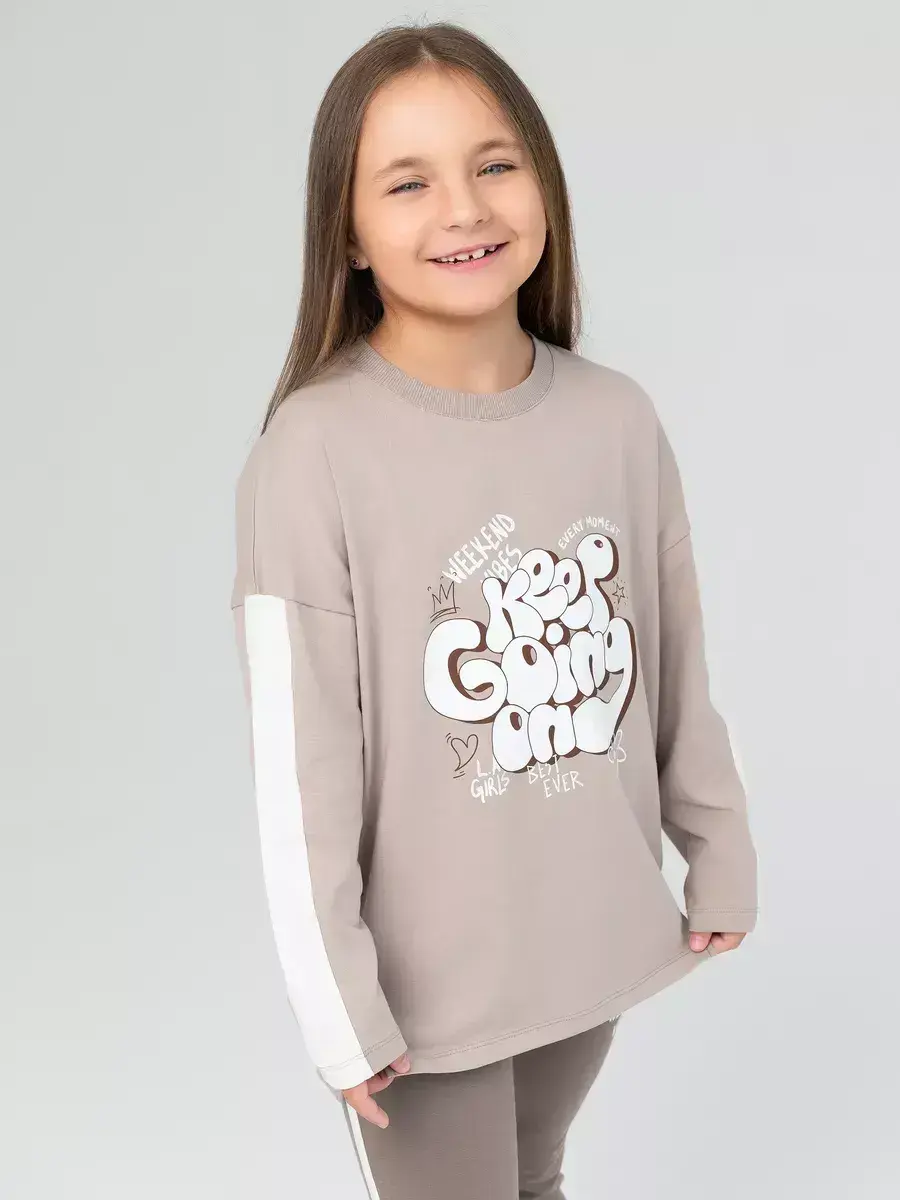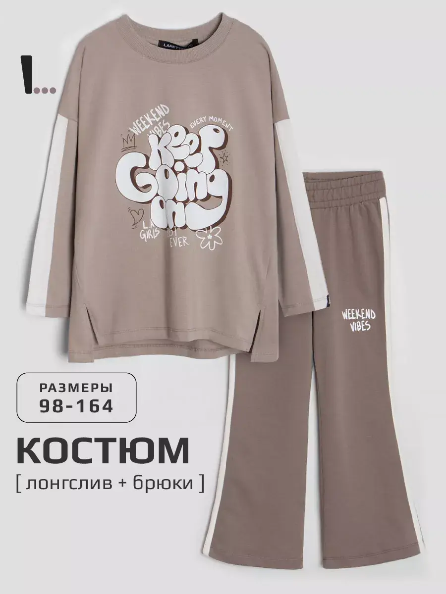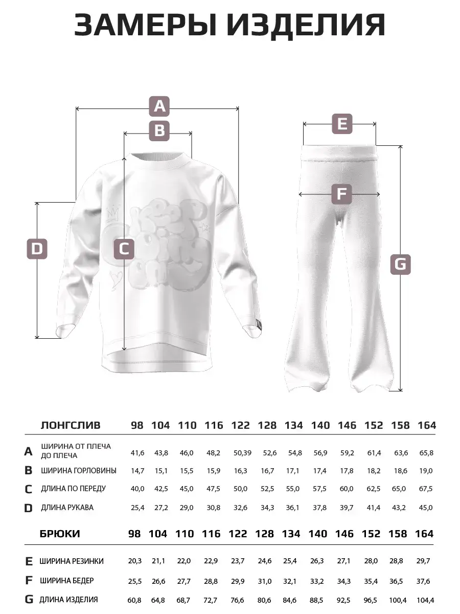 Спортивный костюм для девочек, который сочетает в себе стиль, комфорт и качество. Этот трикотажный детский костюм состоит из удобного лонгслива и модных брюк клеш, которые подарят вашей малышке свободу движений в прохладные осенние дни.