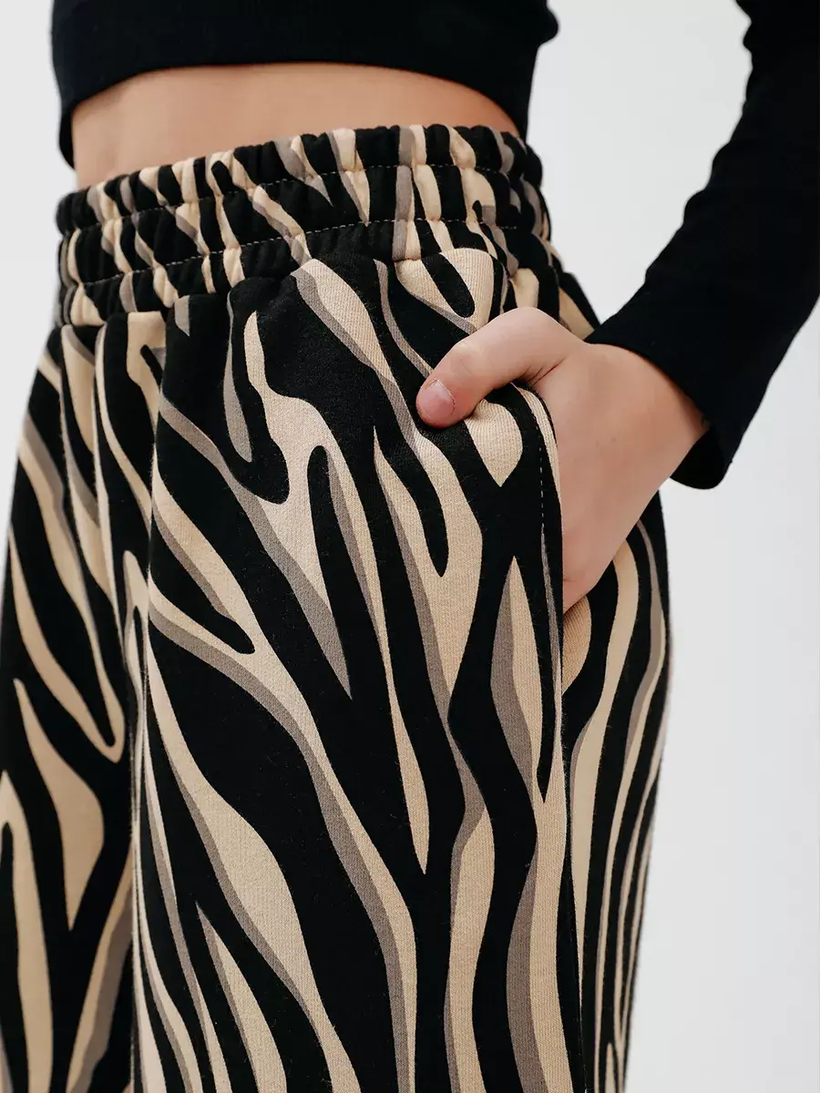 В нашем ассортименте представлены классические однотонные варианты, а также яркие расцветки с принтами, позволяющие создать оригинальный образ. Трикотажные штаны для девочки имеют эластичный пояс на резинке, что делает их удобными и практичными. Они легко сочетаются с футболками, худи и спортивными кофтами, создавая модные и удобные комплекты.