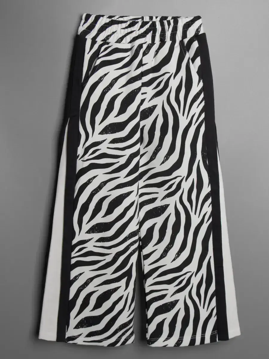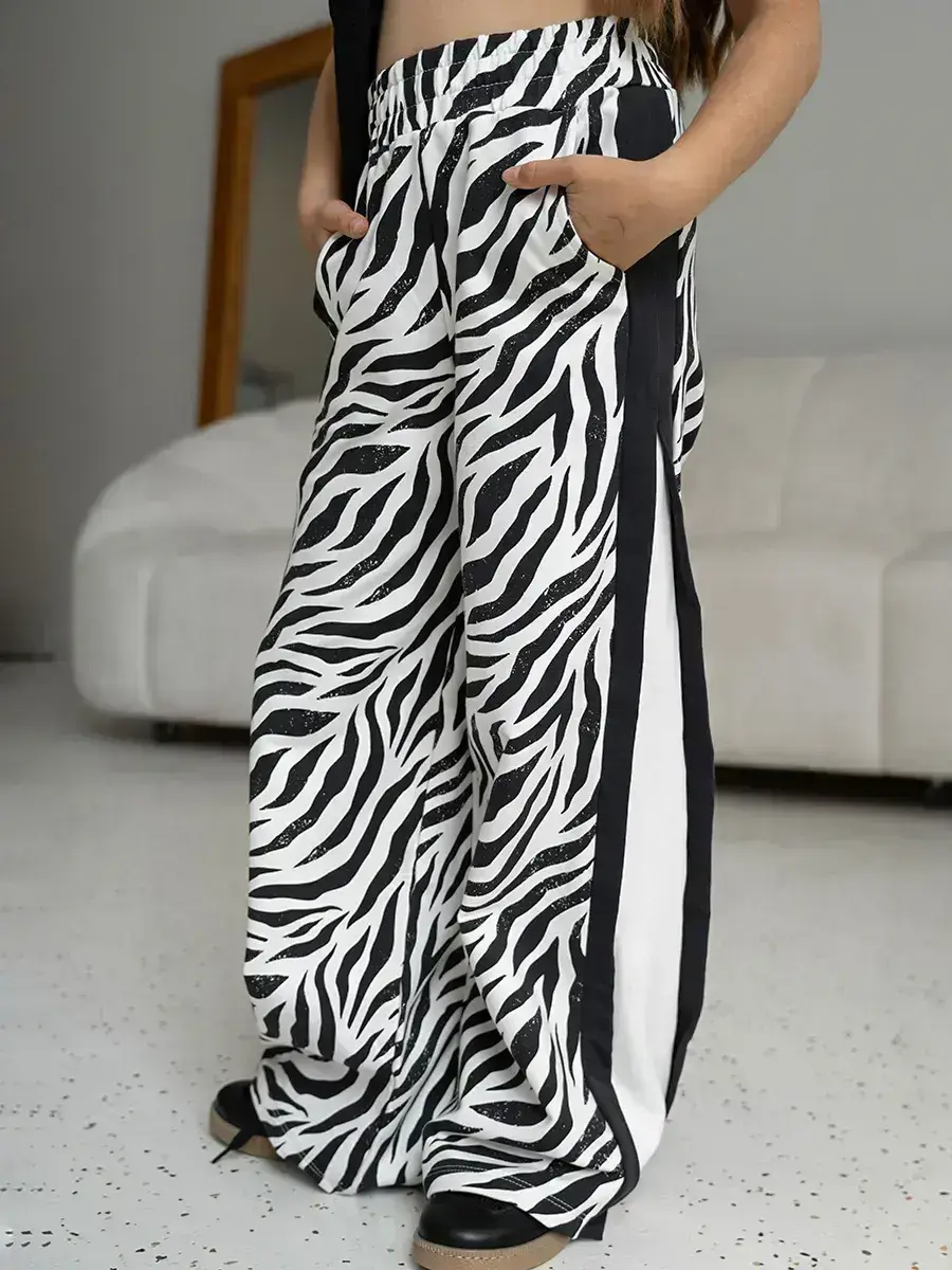 В нашем ассортименте представлены яркие расцветки с принтом зебры, позволяющие создать оригинальный образ, а также однотонные варианты. Трикотажные штаны для девочки имеют эластичный пояс на резинке, что делает их удобными и практичными. Они легко сочетаются с футболками, худи и спортивными кофтами, создавая модные и удобные комплекты.