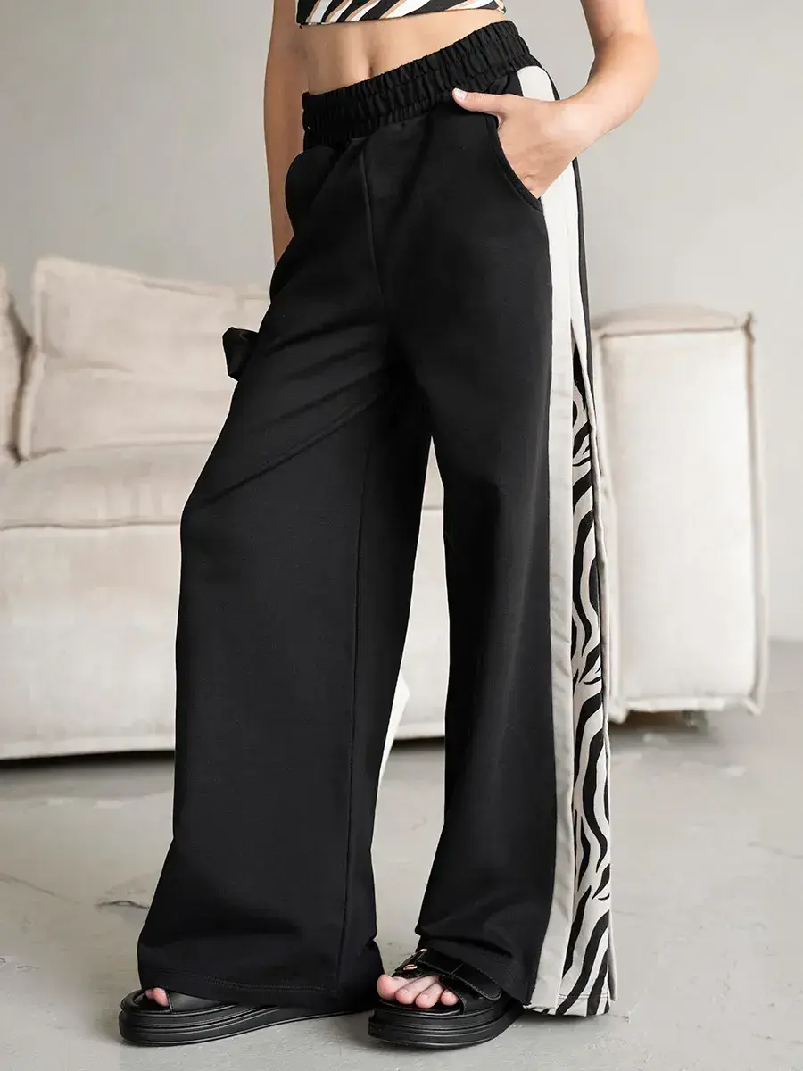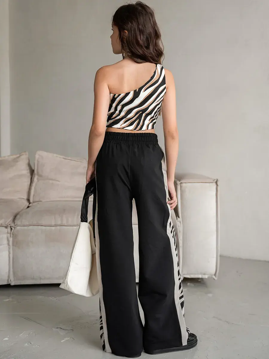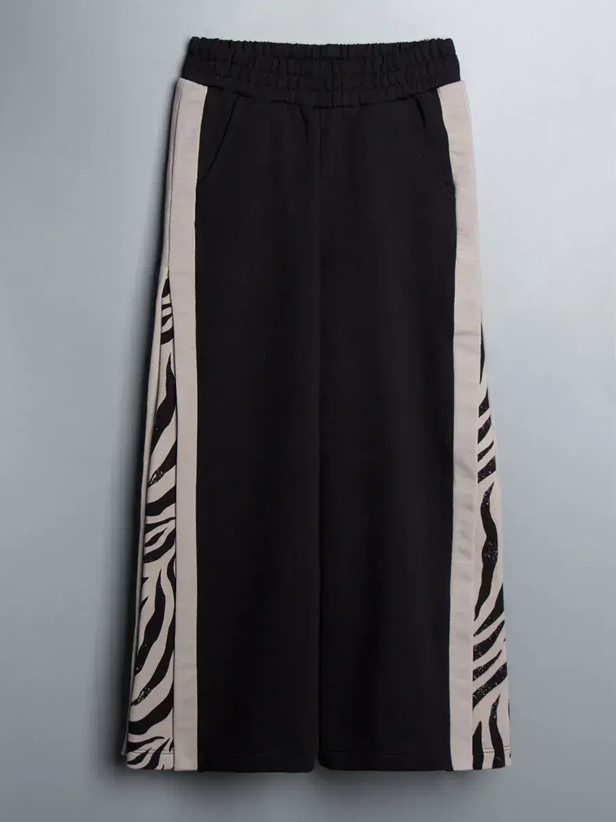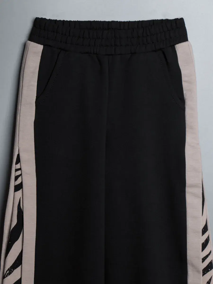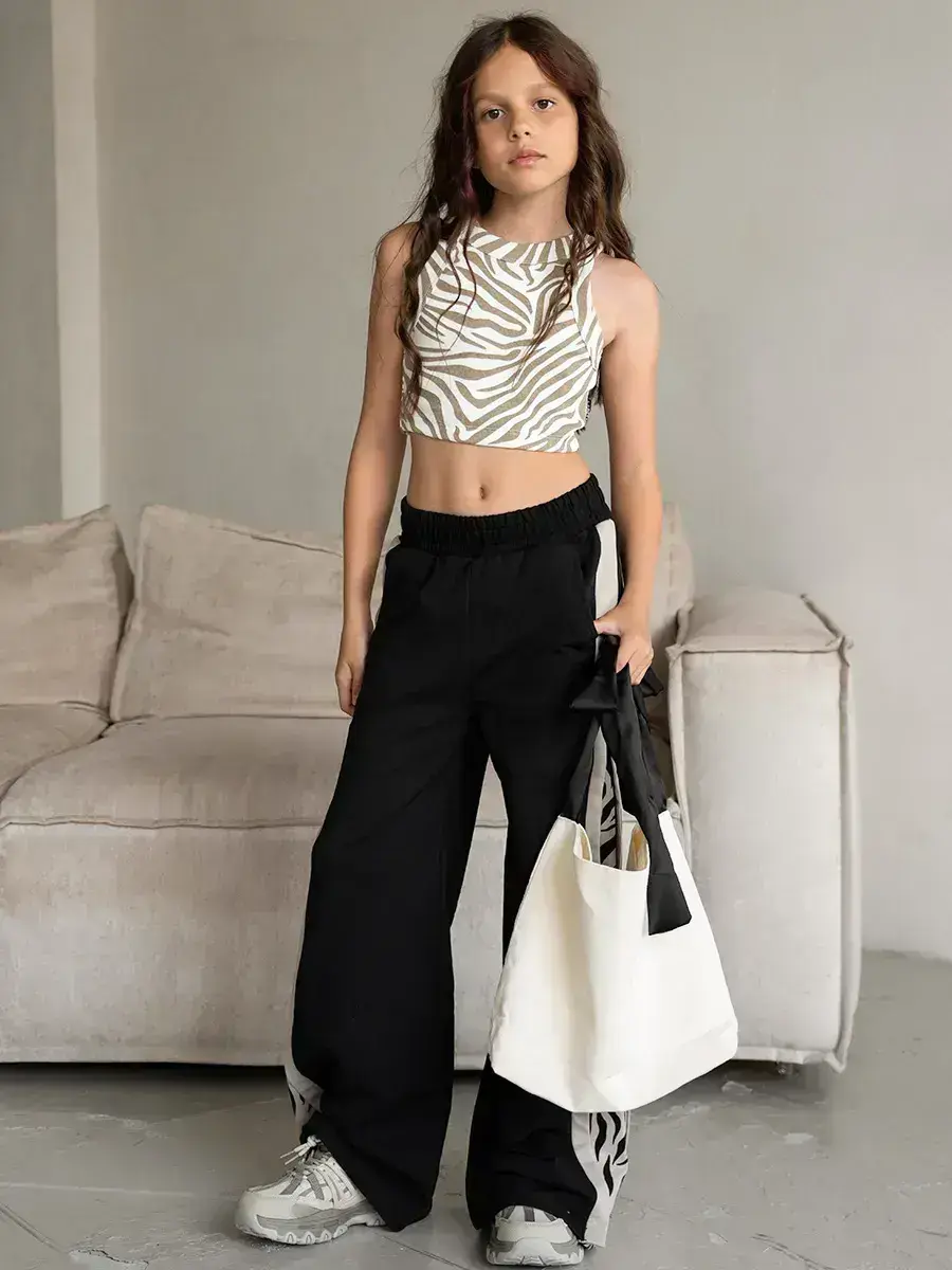 В нашем ассортименте представлены яркие расцветки с принтом зебры, позволяющие создать оригинальный образ, а также однотонные варианты. Трикотажные штаны для девочки имеют эластичный пояс на резинке, что делает их удобными и практичными. Они легко сочетаются с футболками, худи и спортивными кофтами, создавая модные и удобные комплекты.
