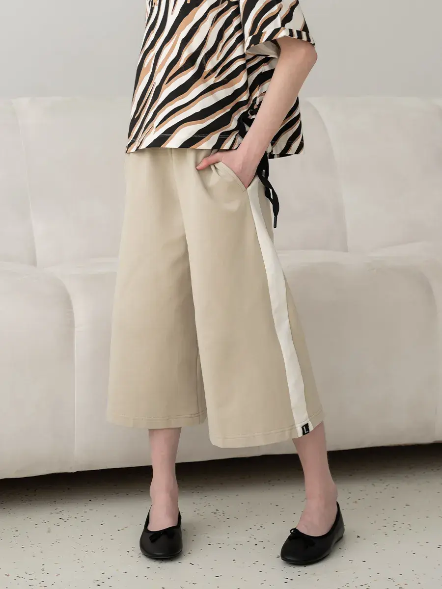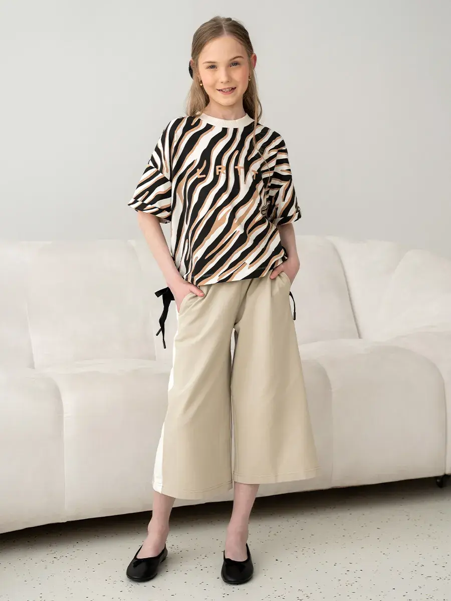 Брюки кюлоты для девочки в стиле y2k – это широкие штаны, которые стали незаменимыми в гардеробе юной иконы стиля. Это универсальная модель с лампасами для детей и подростков, которая подойдет как в качестве школьной формы, так и для выхода на мероприятия.