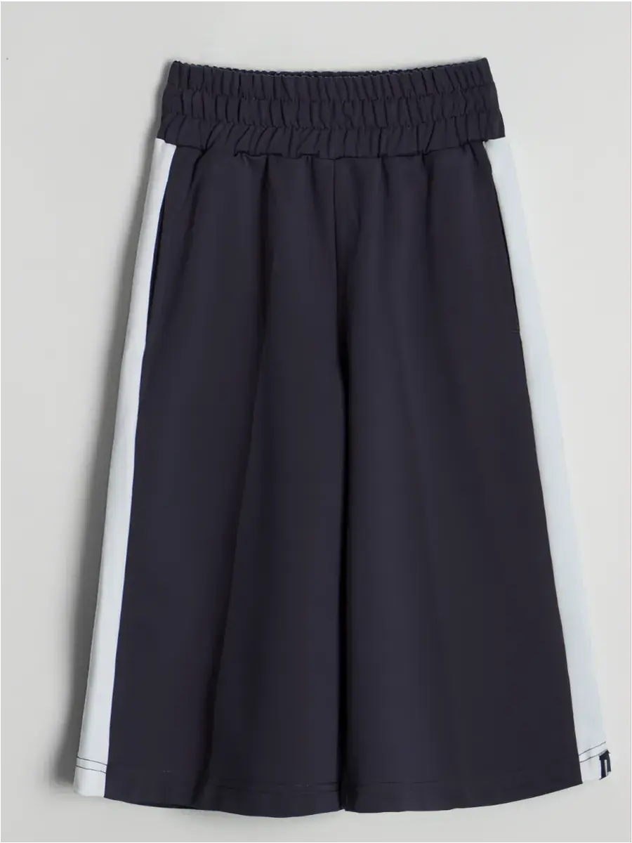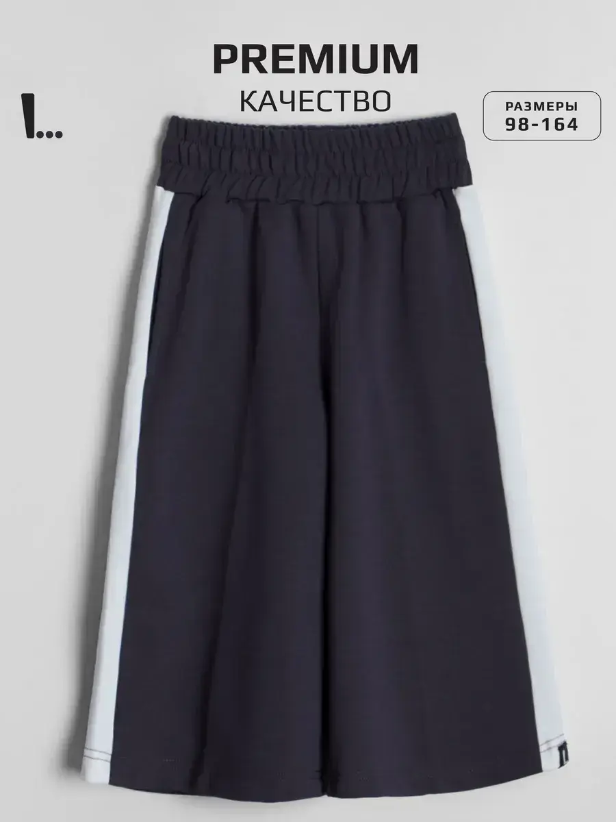 Брюки кюлоты для девочки в стиле y2k – это широкие штаны, которые стали незаменимыми в гардеробе юной иконы стиля. Это универсальная модель с лампасами для детей и подростков, которая подойдет как в качестве школьной формы, так и для выхода на мероприятия.