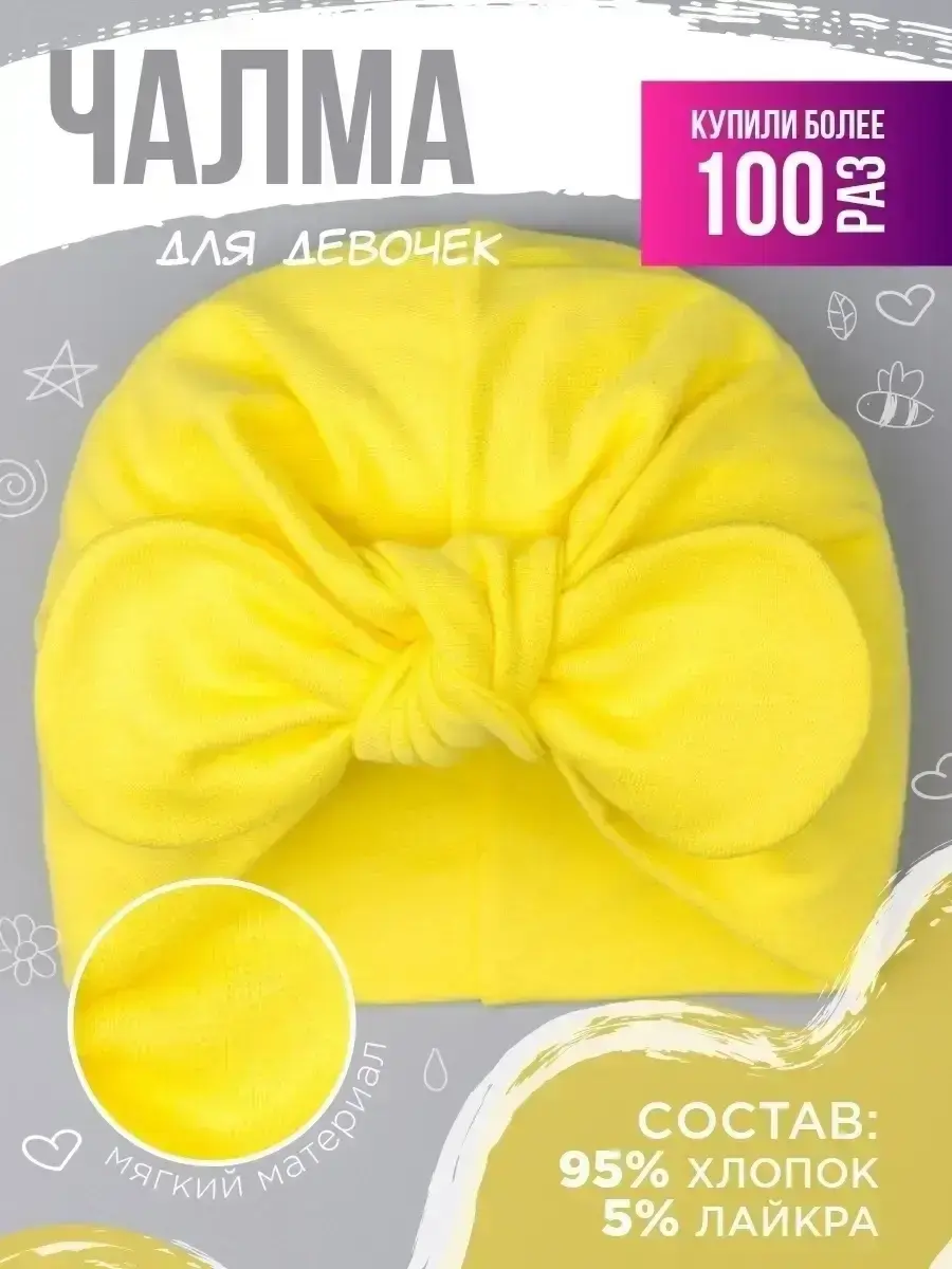 Чалма детская без завязок станет прекрасным повседневным вариантом на эту осень. Шапка для дочки смотрится очень стильно и лаконично, и подходит даже самым маленьким (от 1 мес). Тюрбан для девочки выполнен из высококачественного двухслойного трикотажа (в составе хлопок-95% и лайкра-5 %) и обязательно порадует своим комфортом Вашего малыша. Модель отлично сидит на голове, не сползает и не перекручивается во время активных игр. Аксессуар для головы с бантом позволит создавать новые яркие образы каждый день. Благодаря широкой палитре цветов, Вы с легкостью подберете детский тюрбан к любому гардеробу юной принцессы. При условии бережного ухода изделие надолго сохранит свою первоначальную форму и цвет. В нашем магазине Вы также сможете подобрать к чалме красивый снуд или нагрудник. Высокое качество и доступная цена отмечены множеством положительных отзывов наших постоянных покупателей! Порадуйте своего ребенка модным аксессуаром из нашей коллекции головных уборов! Бережная стирка при t не более 30 С и правильная сушка позволит изделию радовать Вас дольше. Сделано в России.