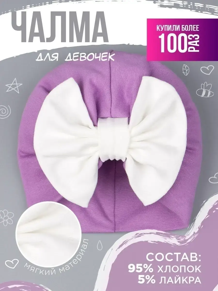 Чалма детская без завязок станет прекрасным повседневным вариантом на эту осень. Шапка для дочки смотрится очень стильно и лаконично, и подходит даже самым маленьким (от 1 мес). Тюрбан для девочки выполнен из высококачественного двухслойного трикотажа (в составе хлопок-95% и лайкра-5 %) и обязательно порадует своим комфортом Вашего малыша. Модель отлично сидит на голове, не сползает и не перекручивается во время активных игр. Аксессуар для головы с бантом позволит создавать новые яркие образы каждый день. Благодаря широкой палитре цветов, Вы с легкостью подберете детский тюрбан к любому гардеробу юной принцессы. При условии бережного ухода изделие надолго сохранит свою первоначальную форму и цвет. В нашем магазине Вы также сможете подобрать к чалме красивый снуд или нагрудник. Высокое качество и доступная цена отмечены множеством положительных отзывов наших постоянных покупателей! Порадуйте своего ребенка модным аксессуаром из нашей коллекции головных уборов! Бережная стирка при t не более 30 С и правильная сушка позволит изделию радовать Вас дольше. Сделано в России.