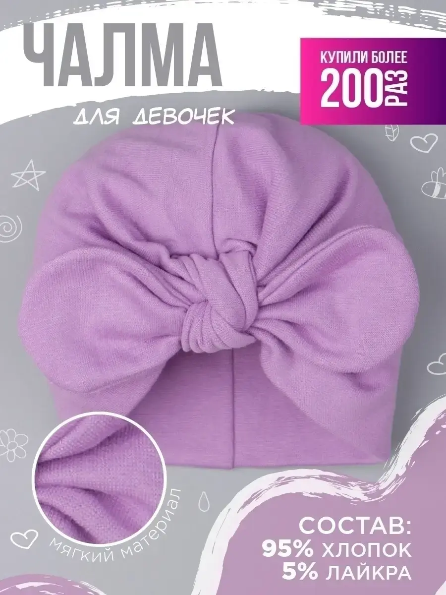 Чалма детская без завязок станет прекрасным повседневным вариантом на эту осень. Шапка для дочки смотрится очень стильно и лаконично, и подходит даже самым маленьким (от 1 мес). Тюрбан для девочки выполнен из высококачественного двухслойного трикотажа (в составе хлопок-95% и лайкра-5 %) и обязательно порадует своим комфортом Вашего малыша. Модель отлично сидит на голове, не сползает и не перекручивается во время активных игр. Аксессуар для головы с бантом позволит создавать новые яркие образы каждый день. Благодаря широкой палитре цветов, Вы с легкостью подберете детский тюрбан к любому гардеробу юной принцессы. При условии бережного ухода изделие надолго сохранит свою первоначальную форму и цвет. В нашем магазине Вы также сможете подобрать к чалме красивый снуд или нагрудник. Высокое качество и доступная цена отмечены множеством положительных отзывов наших постоянных покупателей! Порадуйте своего ребенка модным аксессуаром из нашей коллекции головных уборов! Бережная стирка при t не более 30 С и правильная сушка позволит изделию радовать Вас дольше. Сделано в России.
