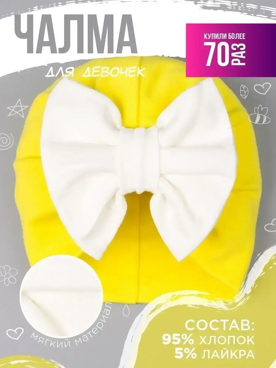 Чалма детская без завязок станет прекрасным повседневным вариантом на эту осень. Шапка для дочки смотрится очень стильно и лаконично, и подходит даже самым маленьким (от 1 мес). Тюрбан для девочки выполнен из высококачественного двухслойного трикотажа (в составе хлопок-95% и лайкра-5 %) и обязательно порадует своим комфортом Вашего малыша. Модель отлично сидит на голове, не сползает и не перекручивается во время активных игр. Аксессуар для головы с бантом позволит создавать новые яркие образы каждый день. Благодаря широкой палитре цветов, Вы с легкостью подберете детский тюрбан к любому гардеробу юной принцессы. При условии бережного ухода изделие надолго сохранит свою первоначальную форму и цвет. В нашем магазине Вы также сможете подобрать к чалме красивый снуд или нагрудник. Высокое качество и доступная цена отмечены множеством положительных отзывов наших постоянных покупателей! Порадуйте своего ребенка модным аксессуаром из нашей коллекции головных уборов! Бережная стирка при t не более 30 С и правильная сушка позволит изделию радовать Вас дольше. Сделано в России.