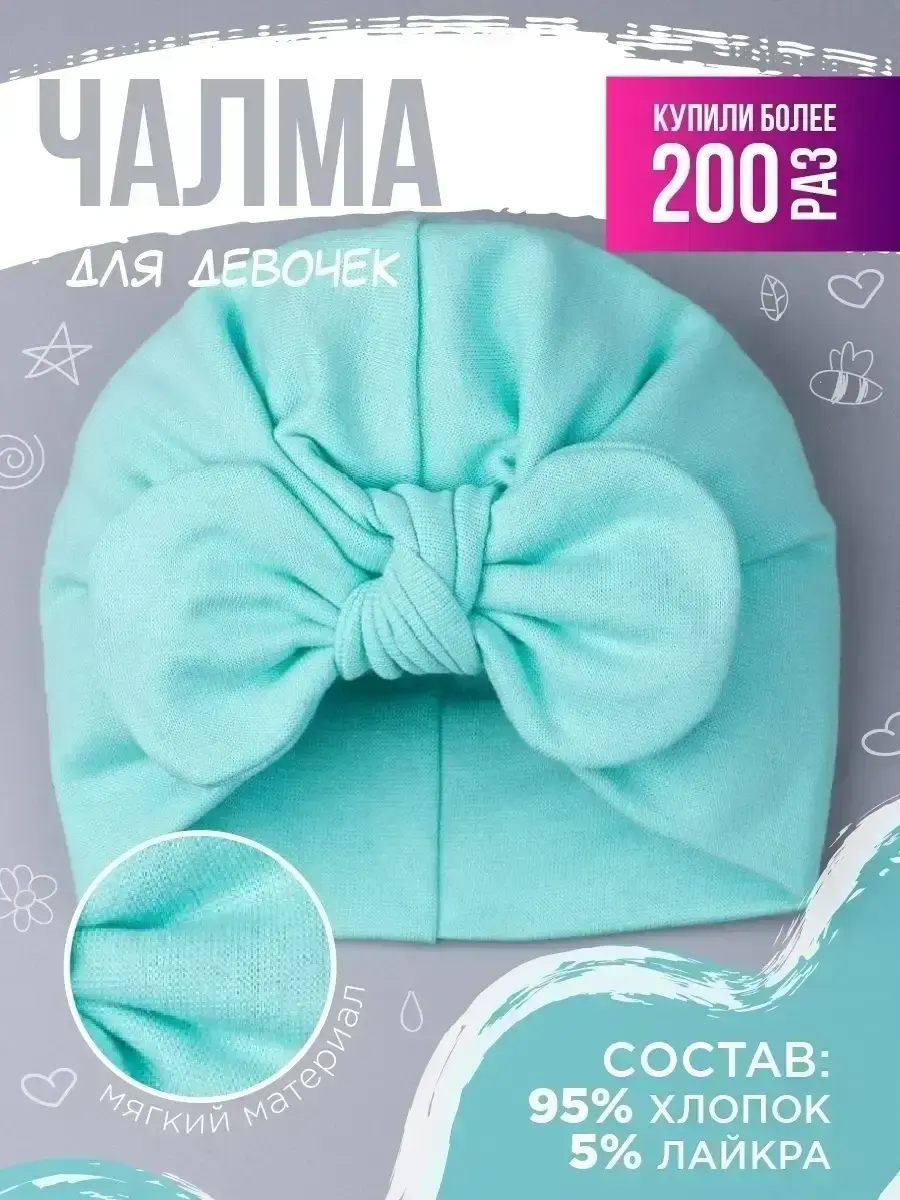 Чалма детская без завязок станет прекрасным повседневным вариантом на эту осень. Шапка для дочки смотрится очень стильно и лаконично, и подходит даже самым маленьким (от 1 мес). Тюрбан для девочки выполнен из высококачественного двухслойного трикотажа (в составе хлопок-95% и лайкра-5 %) и обязательно порадует своим комфортом Вашего малыша. Модель отлично сидит на голове, не сползает и не перекручивается во время активных игр. Аксессуар для головы с бантом позволит создавать новые яркие образы каждый день. Благодаря широкой палитре цветов, Вы с легкостью подберете детский тюрбан к любому гардеробу юной принцессы. При условии бережного ухода изделие надолго сохранит свою первоначальную форму и цвет. В нашем магазине Вы также сможете подобрать к чалме красивый снуд или нагрудник. Высокое качество и доступная цена отмечены множеством положительных отзывов наших постоянных покупателей! Порадуйте своего ребенка модным аксессуаром из нашей коллекции головных уборов! Бережная стирка при t не более 30 С и правильная сушка позволит изделию радовать Вас дольше. Сделано в России.