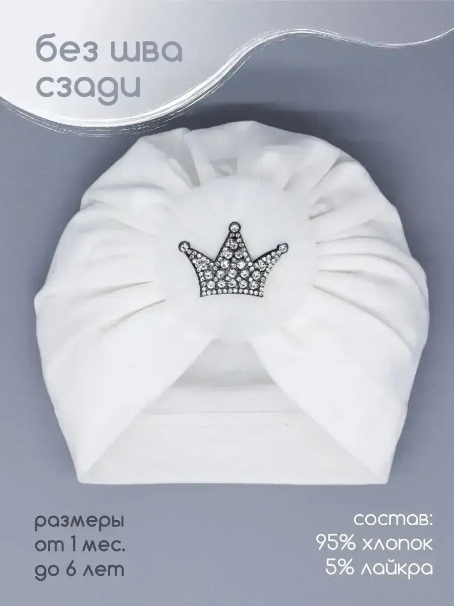Тюрбан для малышей отлично прикрывает ушки и защищает голову, смотрится современно и модно. Тоненькая трикотажная чалма шапка детская идеально подойдет на теплую осень, а так же чалма для девочки прикроет голову ребенка и защитит ее от прохладного ветра. Такая шапка для девочек поставляется в разных размерах, подберите чалму для новорожденного, тюрбан для ребенка любого возраста 5-7 лет. Детский тюрбан идеально сядет по голове. Шапка для девочки для прогулок, отдыха и сна любого возраста. На передней части тюрбана блестящая корона которую можно снять вместо бублика.