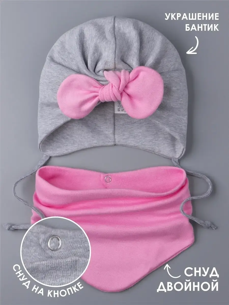 Великолепный комплект - чалма и снуд для девочки выполнен из двойного трикотажа высокого качества. Прекрасно подойдет на теплую осень для вашего малыша. Детская шапка плотно прилегает к голове, а мягкие обработанные швы практически не ощутимы. Чалма детская декорирована съемным красивым бантиком, который при желании можно снять, просто вытянув из перемычки. Создавайте новые яркие образы каждый день! Снуд детский отлично тянется, его легко надевать и снимать. Благодаря универсальной расцветки детская шапочка и снуд хорошо сочетаются с любым осеннем гардеробом. Идеальный выбор для новорожденных и деткам в детский сад. Большой размерный ряд позволит с легкостью выбрать набор для малышки от шести месяцев. Богатая цветовая палитра поможет создавать новые яркие образы каждый день!