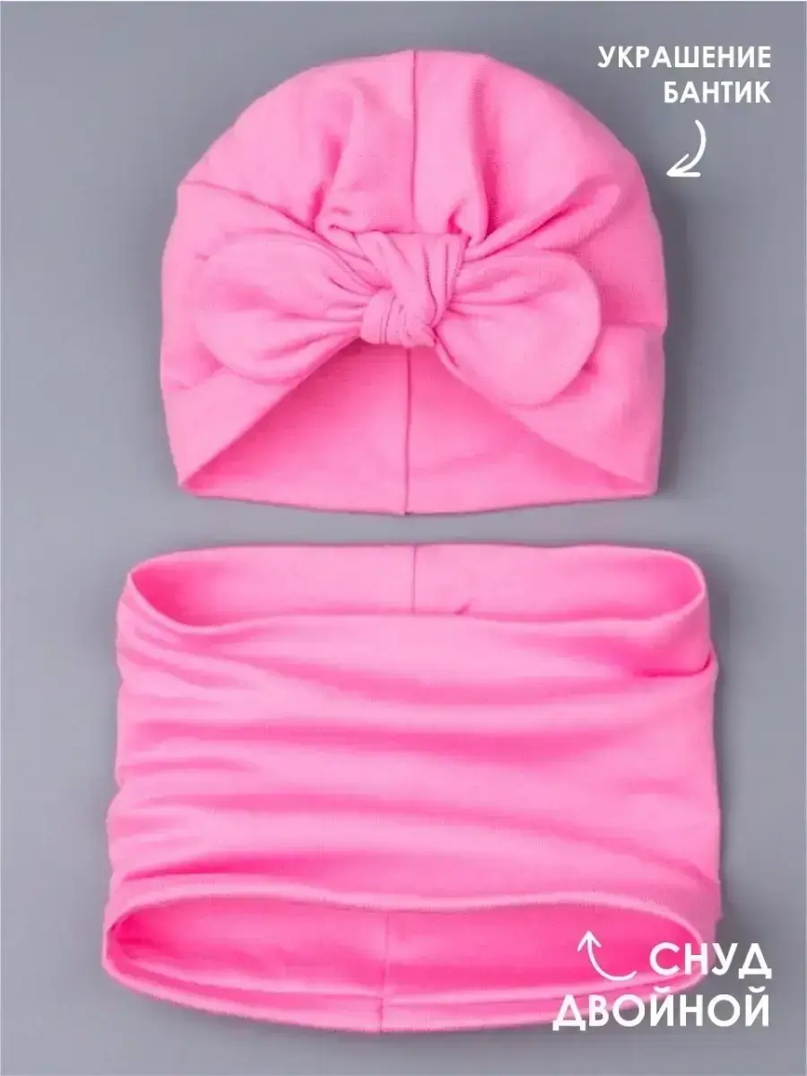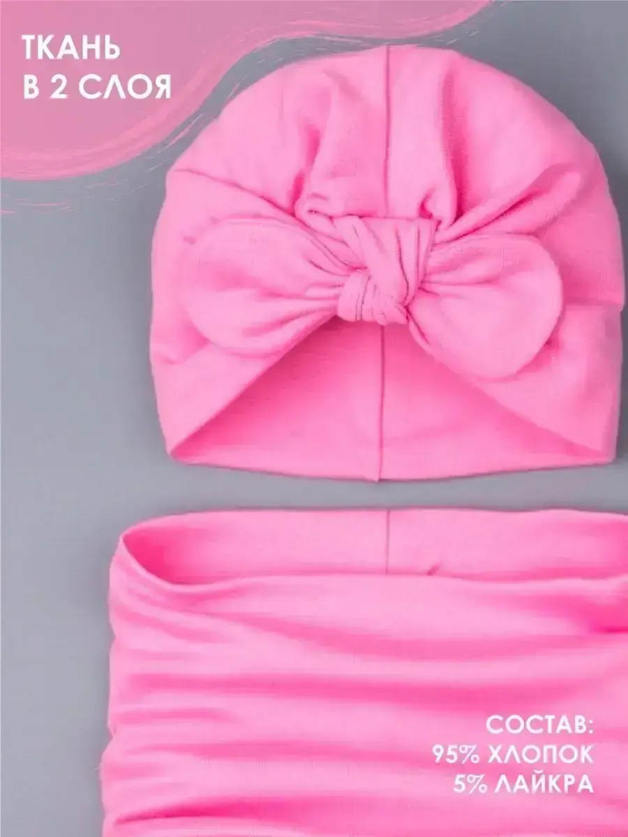 Великолепный комплект - чалма и снуд для девочки выполнен из двойного трикотажа высокого качества. Прекрасно подойдет на теплую осень для вашего малыша. Детская шапка плотно прилегает к голове, а мягкие обработанные швы практически не ощутимы. Чалма детская декорирована съемным красивым бантиком, который при желании можно снять, просто вытянув из перемычки. Создавайте новые яркие образы каждый день! Снуд детский отлично тянется, его легко надевать и снимать. Благодаря универсальной расцветки детская шапочка и снуд хорошо сочетаются с любым осеннем гардеробом. Идеальный выбор для новорожденных и деткам в детский сад. Большой размерный ряд позволит с легкостью выбрать набор для малышки от шести месяцев. Богатая цветовая палитра поможет создавать новые яркие образы каждый день!