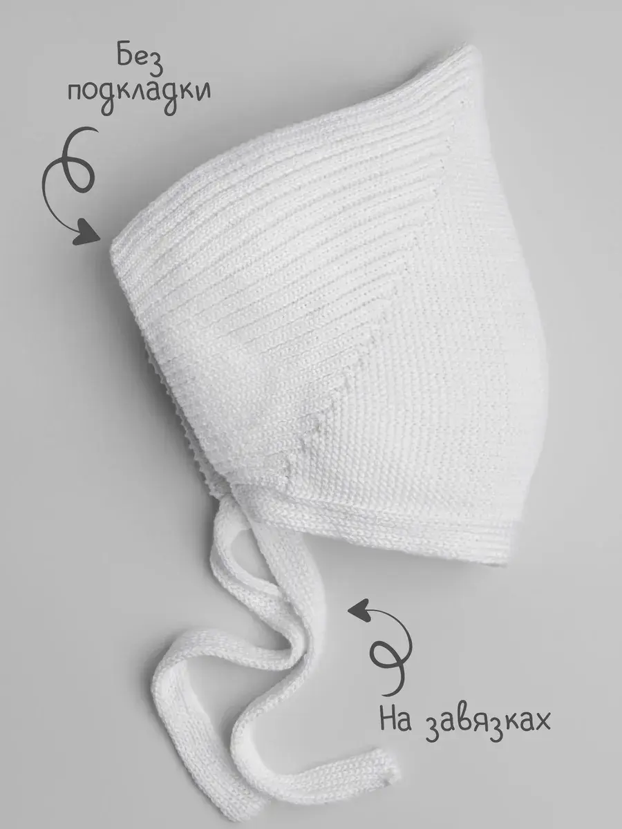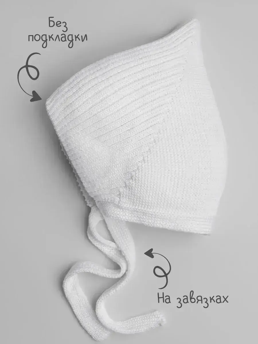 Детский чепчик на завязках станет прекрасным аксессуаром для создания стильного образа для малыша весной и осенью! Невероятно милый головной убор согреет и защитит от ветра и холода в переменчивую погоду межсезонья осенью и весной. Выполненная из качественного материала, шапка осенняя для девочек очень мягкая на ощупь и комфортная в весеннем сезоне! Вязаные демисезонные