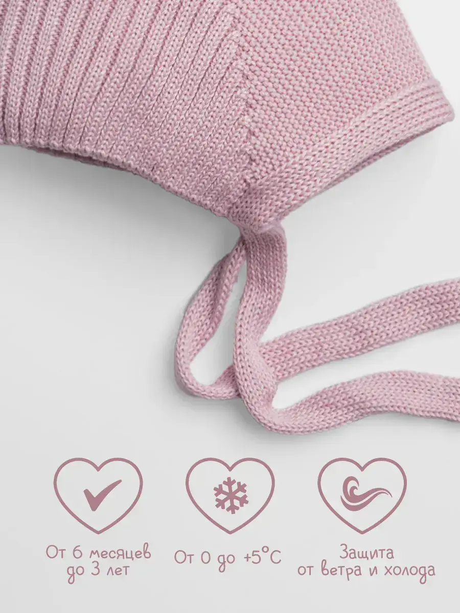 Детский чепчик на завязках станет прекрасным аксессуаром для создания стильного образа для малыша весной и осенью! Невероятно милый головной убор согреет и защитит от ветра и холода в переменчивую погоду межсезонья осенью и весной. Выполненная из качественного материала, шапка осенняя для девочек очень мягкая на ощупь и комфортная в весеннем сезоне! Вязаные демисезонные