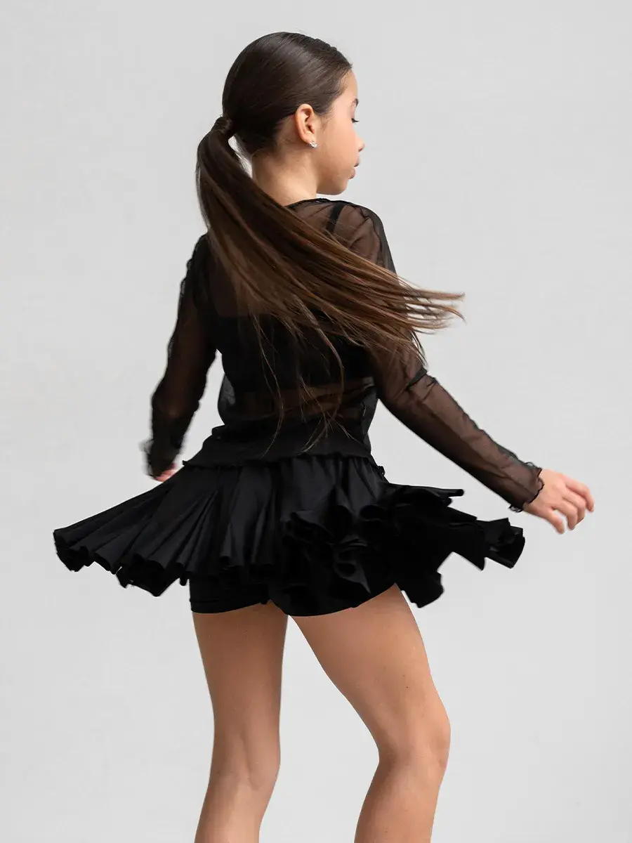 Чёрная юбка-шорты для девочки с воланами — идеальный выбор для весны и лета! Эта стильная и модная детская юбка — тренд 2025 года, создана для активных девочек, которые ценят комфорт. Изготовленная из струящегося, лёгкого материала, юбка для малышек и подростков обеспечивает свободу движений и приятные ощущения в жаркую погоду.