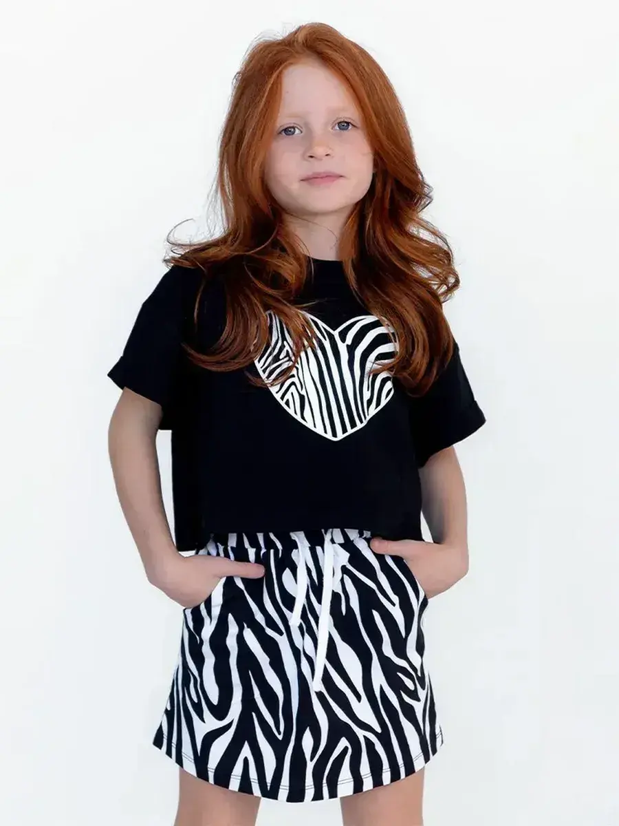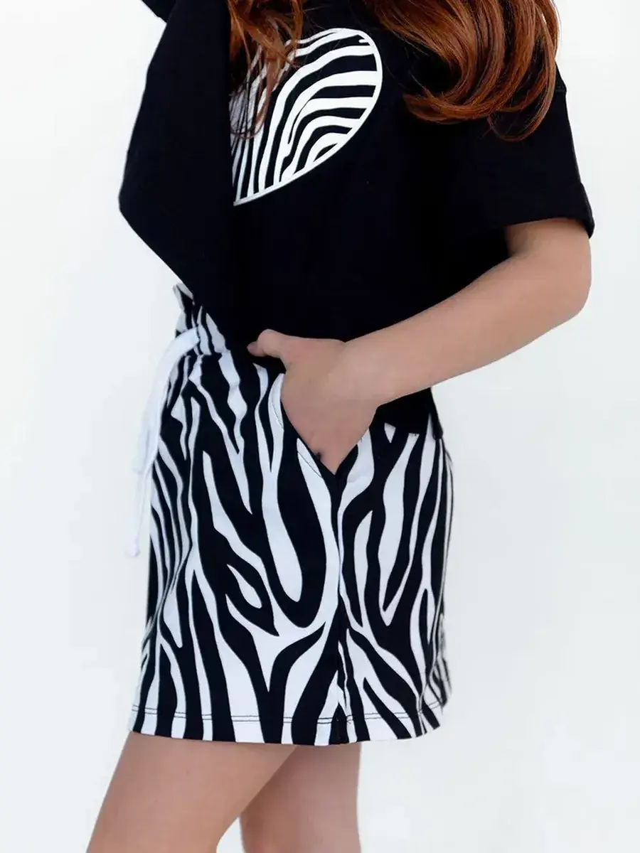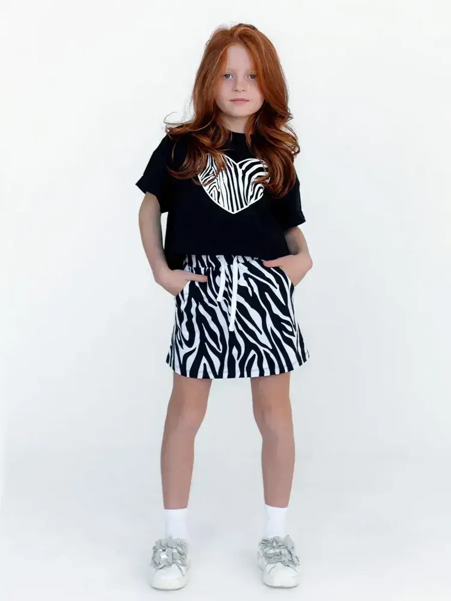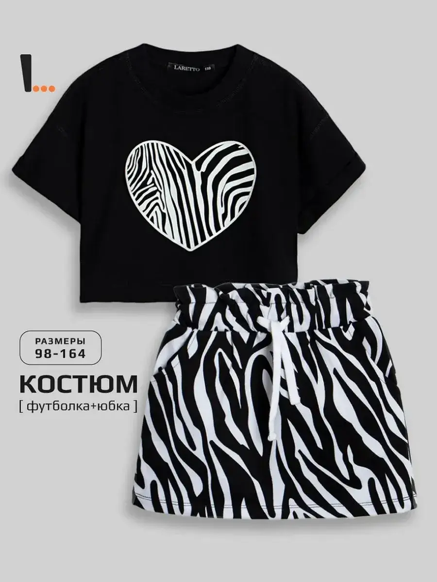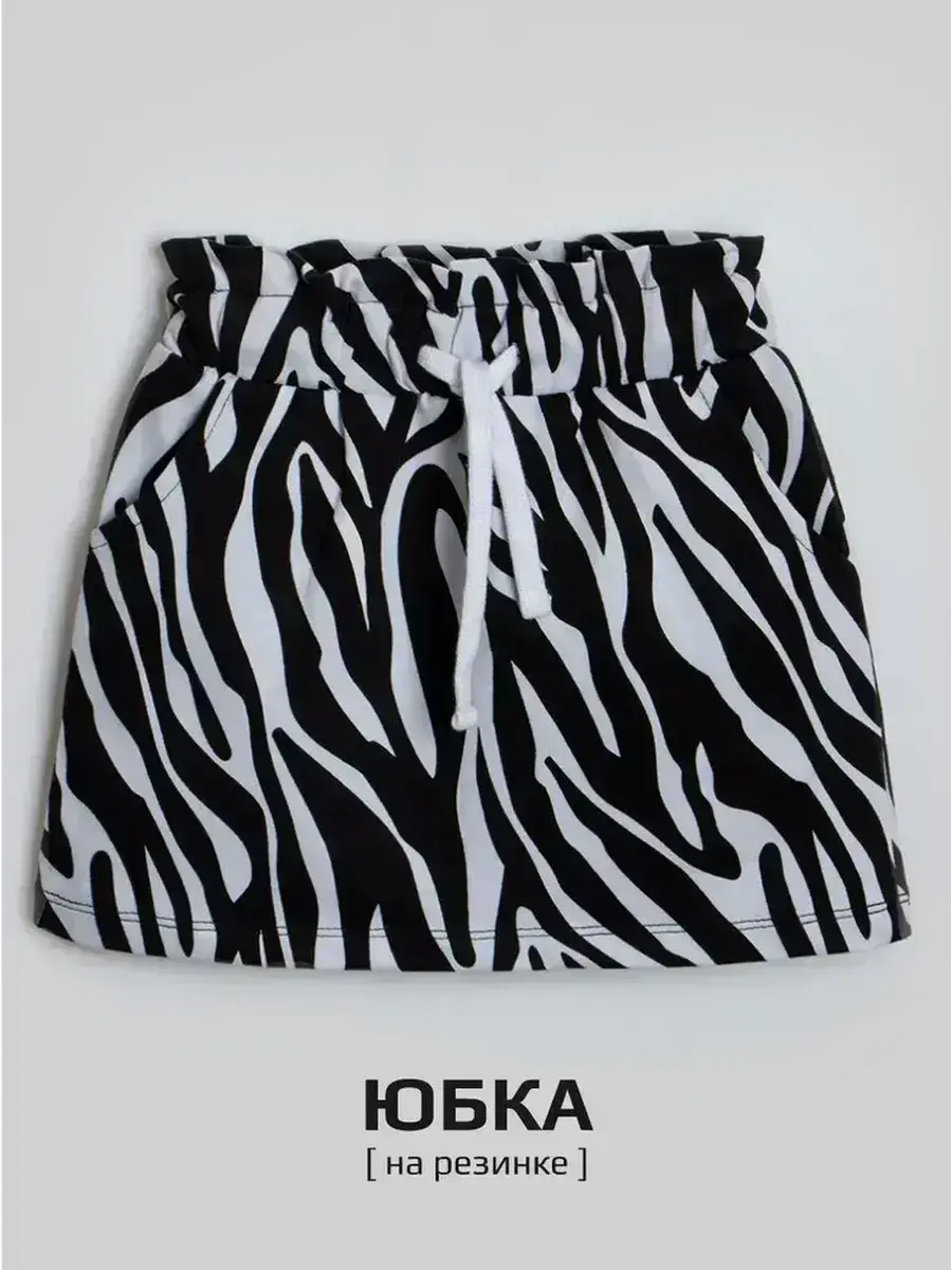 Костюм для девочки от бренда LARETTO - это стильная находка, которая станет незаменимой на любой случай жизни! Укороченная футболка в сочетании с юбкой на резинке делает образ ярким в то же время непринужденным. Модный принт в стиле "зебра" - тренд этого сезона! Сочетание черного и белого делает этот комплект практически универсальным для любого гардероба. Однотонный топ оверсайз с минималистичным принтом дарит своей обладательнице ощущение свободы и комфорта, а также добавляет ярких красок в повседневные образы. Юбка трикотажная на резинке отлично садится и подчеркивает силуэт, а шнуровка на поясе позволяет регулировать уровень талии. Она создана из качественного футера 2-х нитки, очень мягкого и нежного материала. Костюм летний для девочки отлично подойдет для любого типа фигуры и позволяет маленькой моднице чувствовать себя комфортно, не сковывая движения. Изделие идеально как для малышей, так и для подростков. Это прекрасный вариант подходит на лето и теплое время года, а также в качестве сменной одежды в садик. При выборе модели ориентируйтесь на таблицу мерок в карточке товара. Обращаем Ваше внимание, что правильное определение размера напрямую зависит от индивидуальных особенностей ребёнка. Приятных Вам покупок!