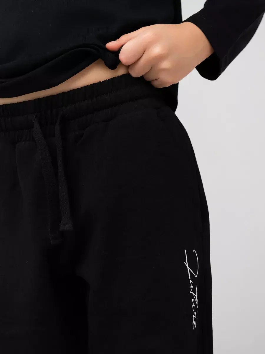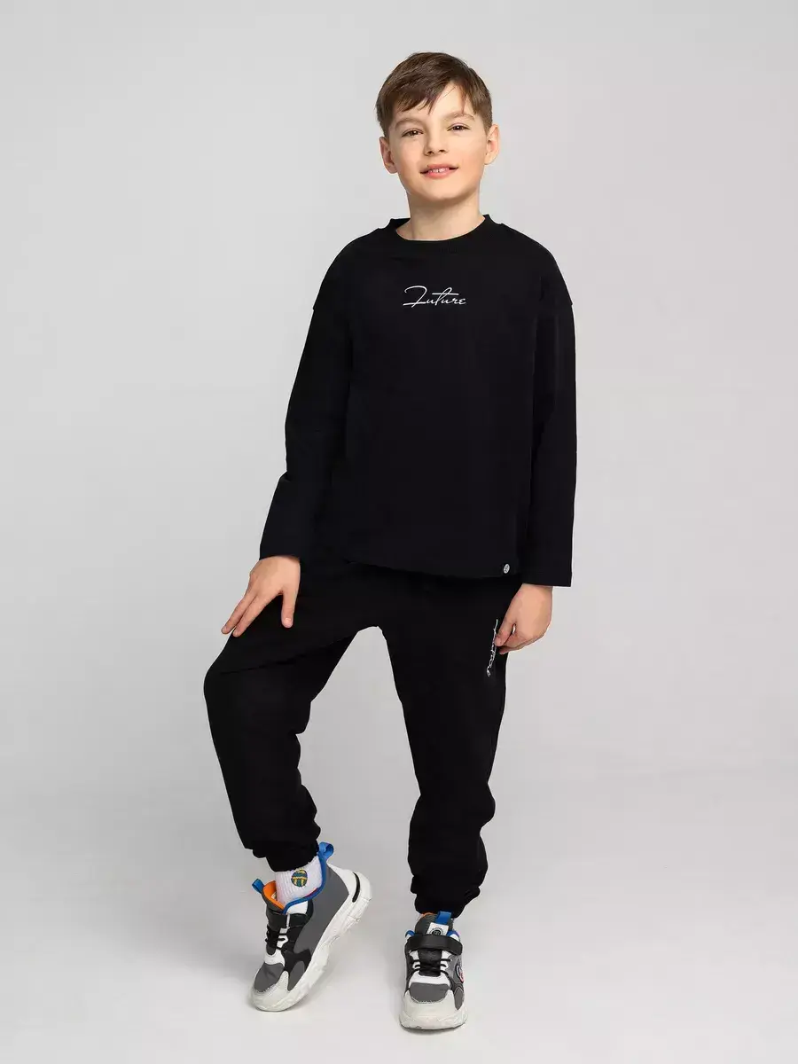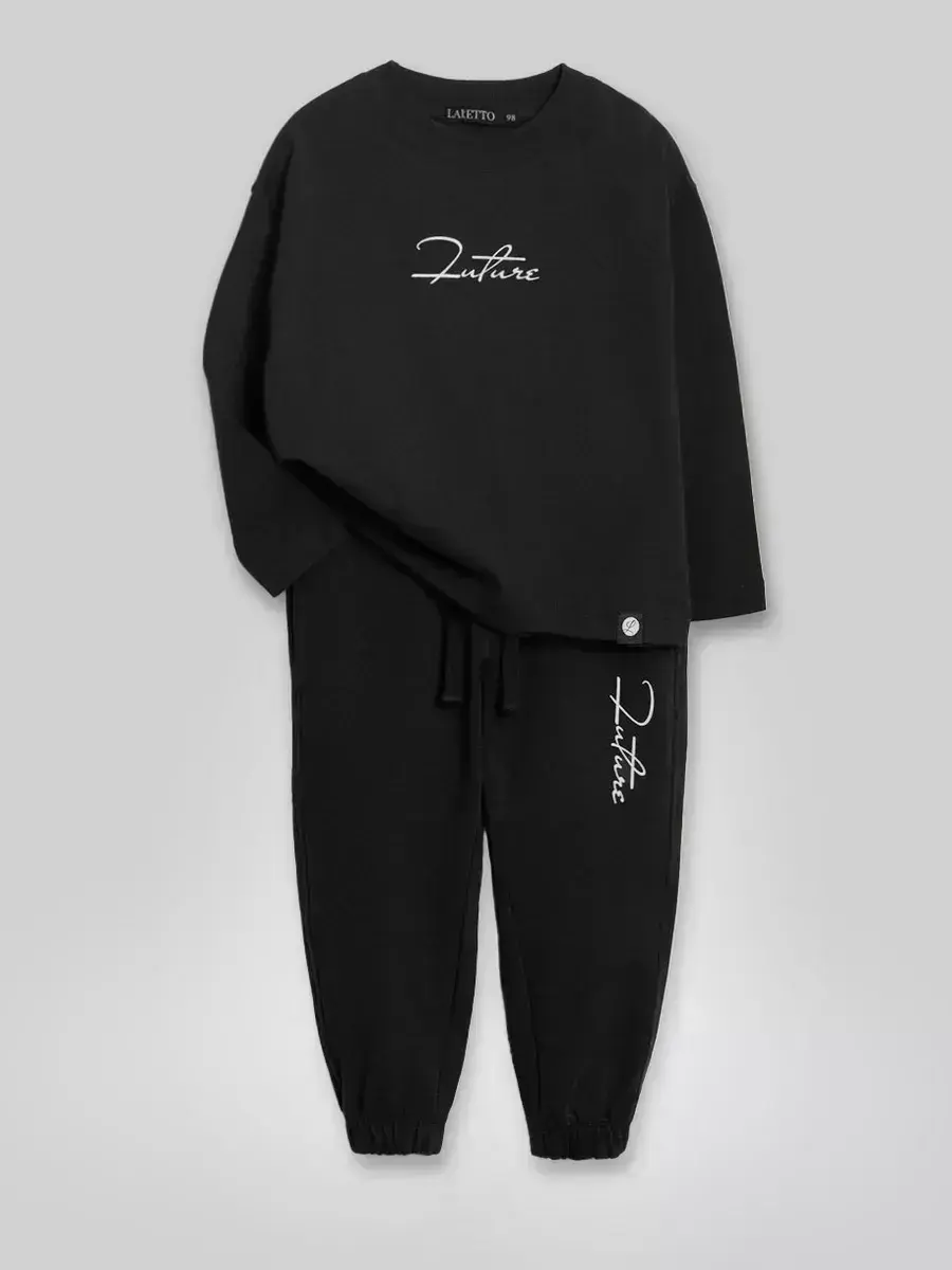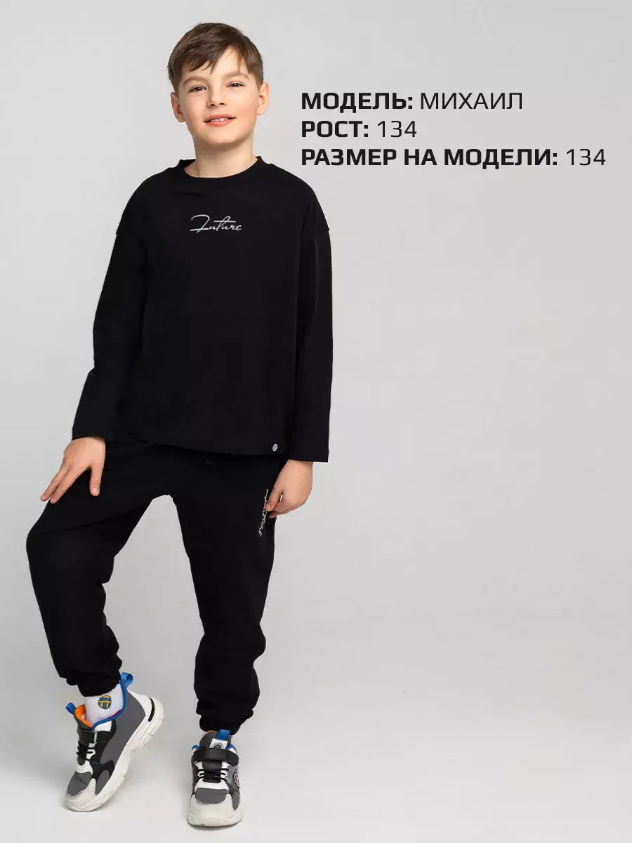Черный спортивный костюм для мальчика от бренда LARETTO - это лучший выбор для комфортного и стильного образа на каждый день. Лонгслив оверсайз и брюки просто незаменимы как спортивная форма, а также в качестве домашней одежды. Универсальный дизайн и лаконичный принт придется по вкусу даже самым избирательным подросткам. Штаны детские выполнены из футера, долговечной и качественной ткани. Этот материал отличается своей мягкостью и приятной на ощупь текстурой, а также обеспечивает хорошую терморегуляцию. Уникальные детали джоггеров, такие как эластичный пояс с регулируемым шнурком и манжеты на голенищах, стильно выглядят и добавляют практичности. Трикотажная кофта с длинным рукавом из хлопка не стесняет движений и отлично дополняет трико. Комплект одежды актуален для любого сезона: , осени, лета и даже зимы. Лонг и спортивки являются практичными вещами на каждый день, будь то посещение садика, школы, прогулка с друзьями или отдых на природе. Костюм для мальчика в сад обеспечит комфорт Вашему ребёнку.При выборе модели мы рекомендуем ориентироваться на таблицу замеров изделия, представленную в карточке товара. Не упустите возможность порадовать Вашего ребенка качественной и модной новинкой из нашей коллекции!