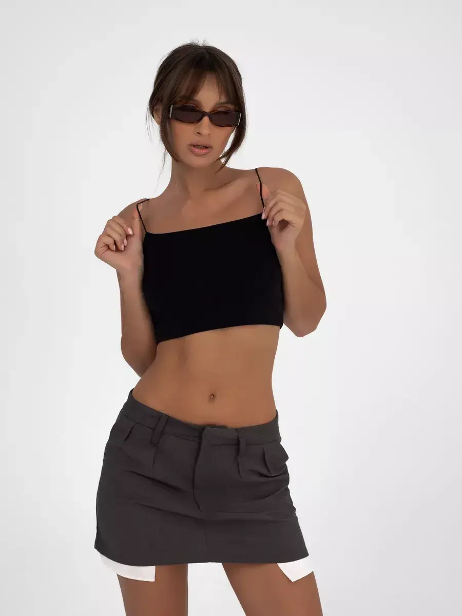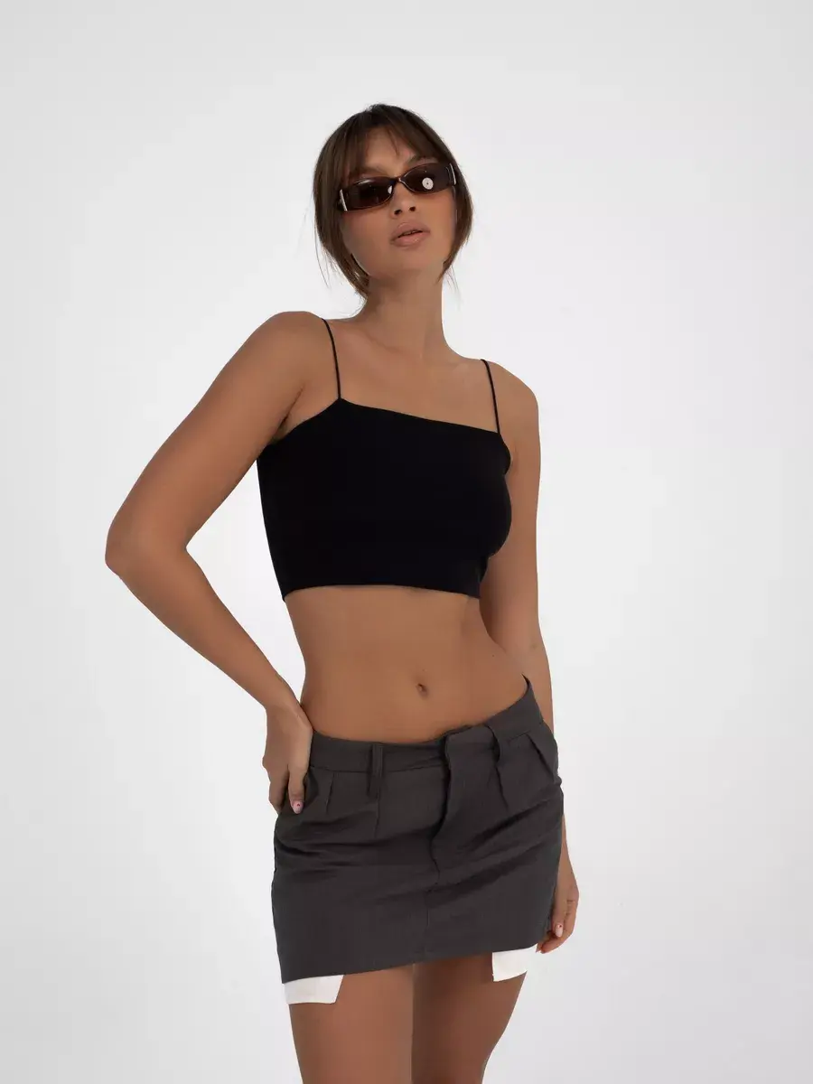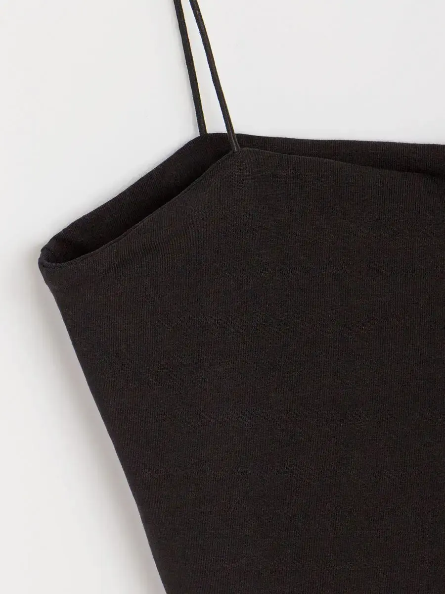 Модный однотонный топ отлично сочетается с пиджаком, рубашкой или базовой футболкой. Можно носить как нарядную вещь на вечерний выход или использовать в качестве повседневной майки для тренировок в спортзале. Базовый черный цвет подходит в любой ситуации. Поддерживающий топ-лиф комфортен даже при активных движениях.