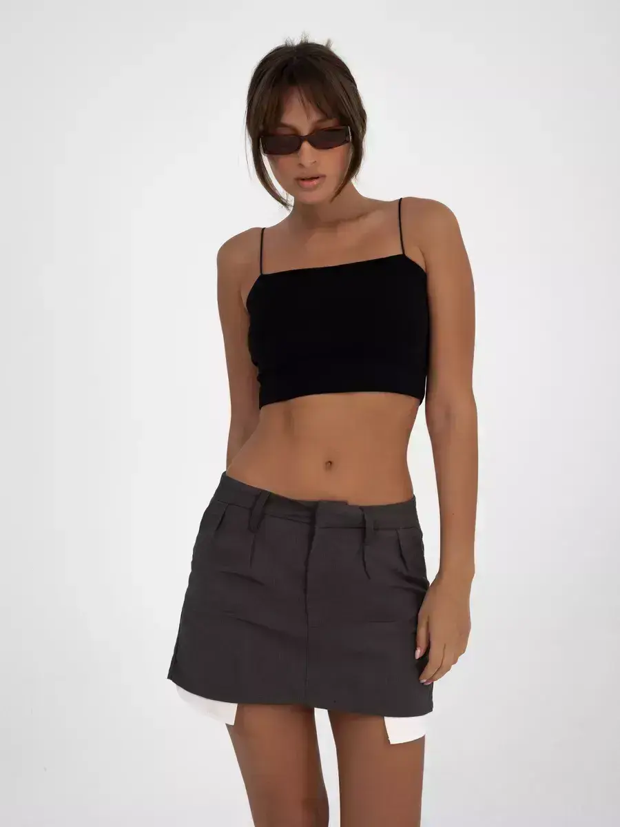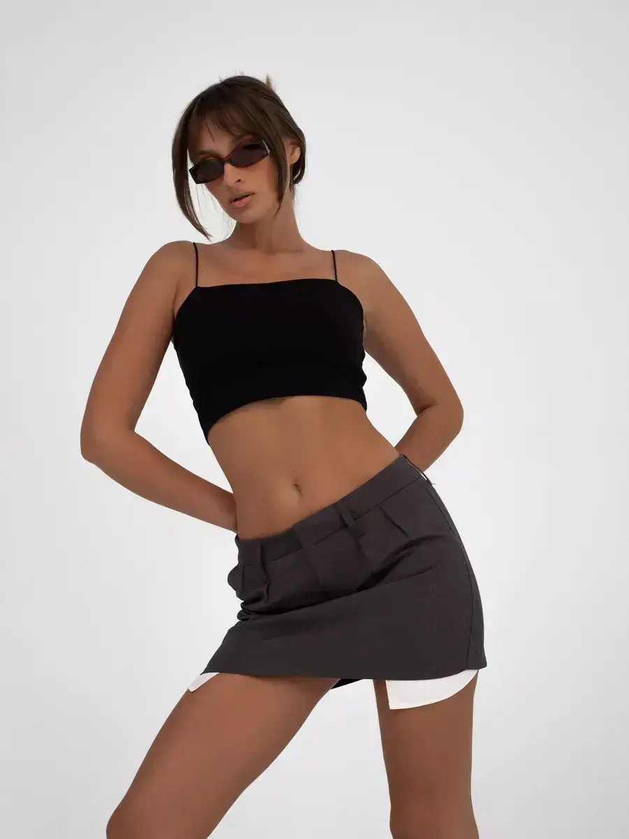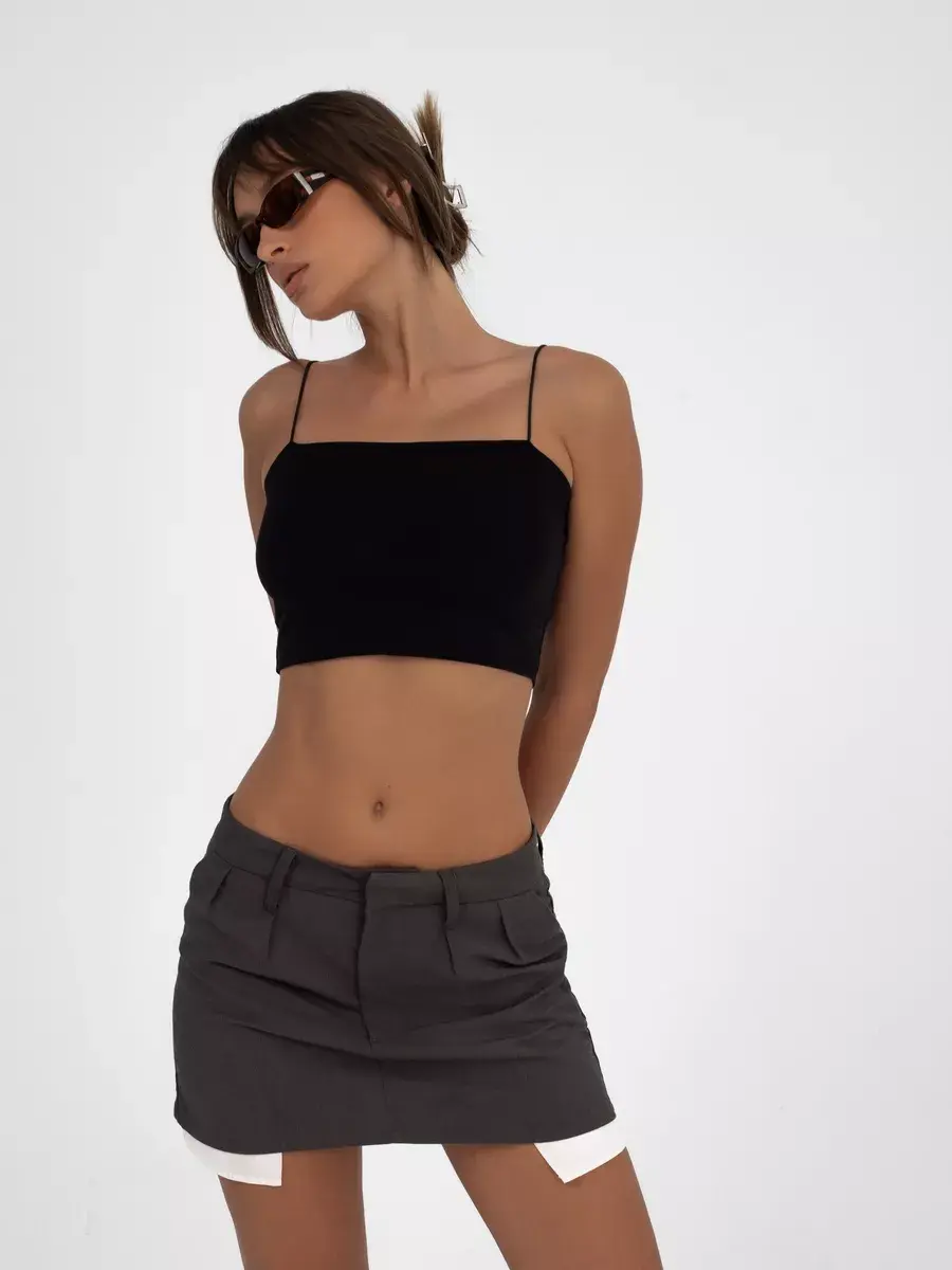 Модный однотонный топ отлично сочетается с пиджаком, рубашкой или базовой футболкой. Можно носить как нарядную вещь на вечерний выход или использовать в качестве повседневной майки для тренировок в спортзале. Базовый черный цвет подходит в любой ситуации. Поддерживающий топ-лиф комфортен даже при активных движениях.
