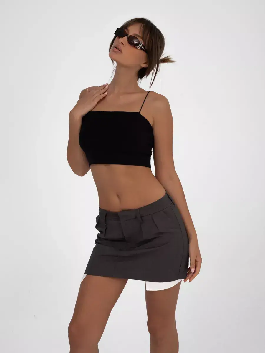 Эта популярная модель подходит девушкам любого возраста, включая подростков. Без косточек и лишних элементов, изделие сохраняет удобство белья, но остается элегантным вариантом для фотосессии или танцевального вечера. Черно-белая гамма подчеркивает универсальность: легко комбинируется с брюками или юбками.