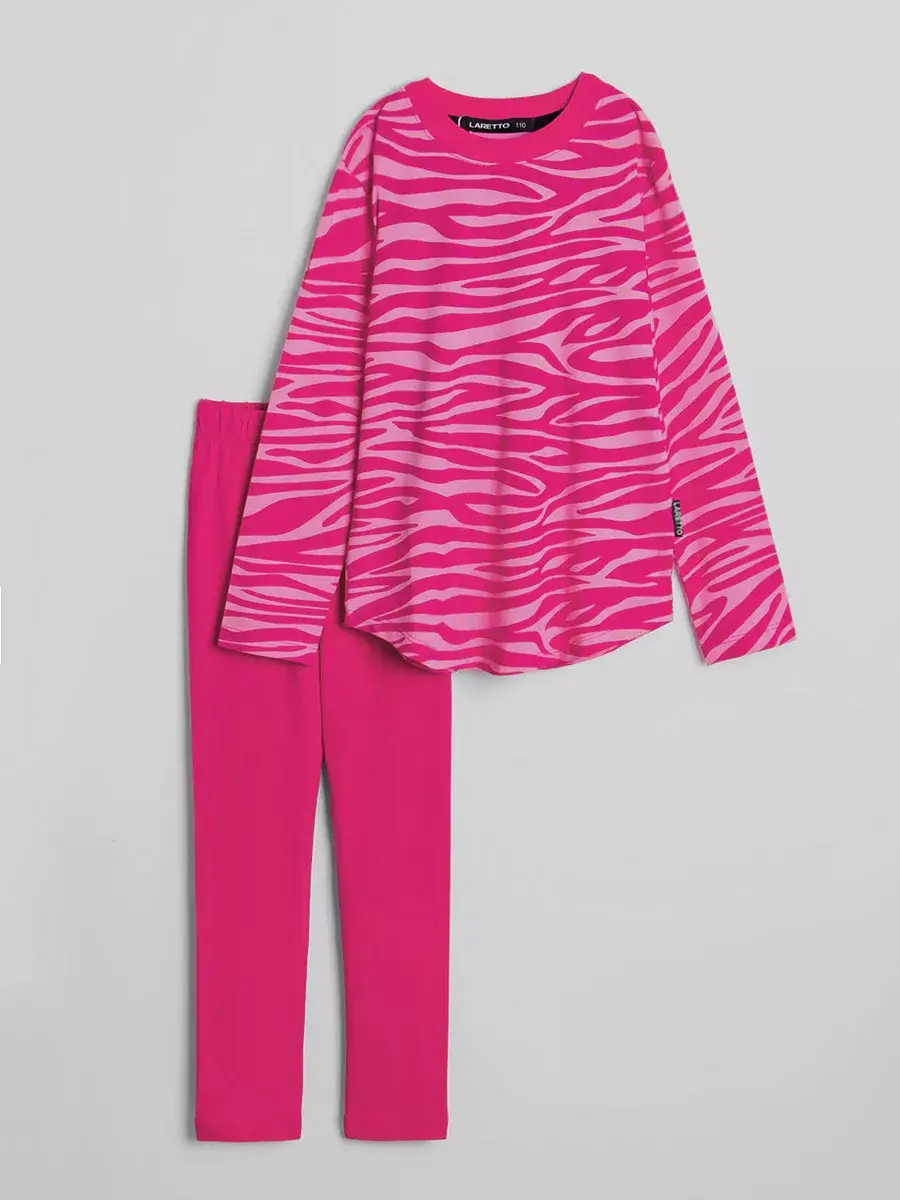 Этот пижамный костюм идеально подойдёт как для малышей, так и для подростков. Подходит для дома, для детского сада и даже для пижамных вечеринок. Облегающие леггинсы не сковывают движений, а лонгслив для девочки с длинным рукавом добавляет уюта и комфорта.