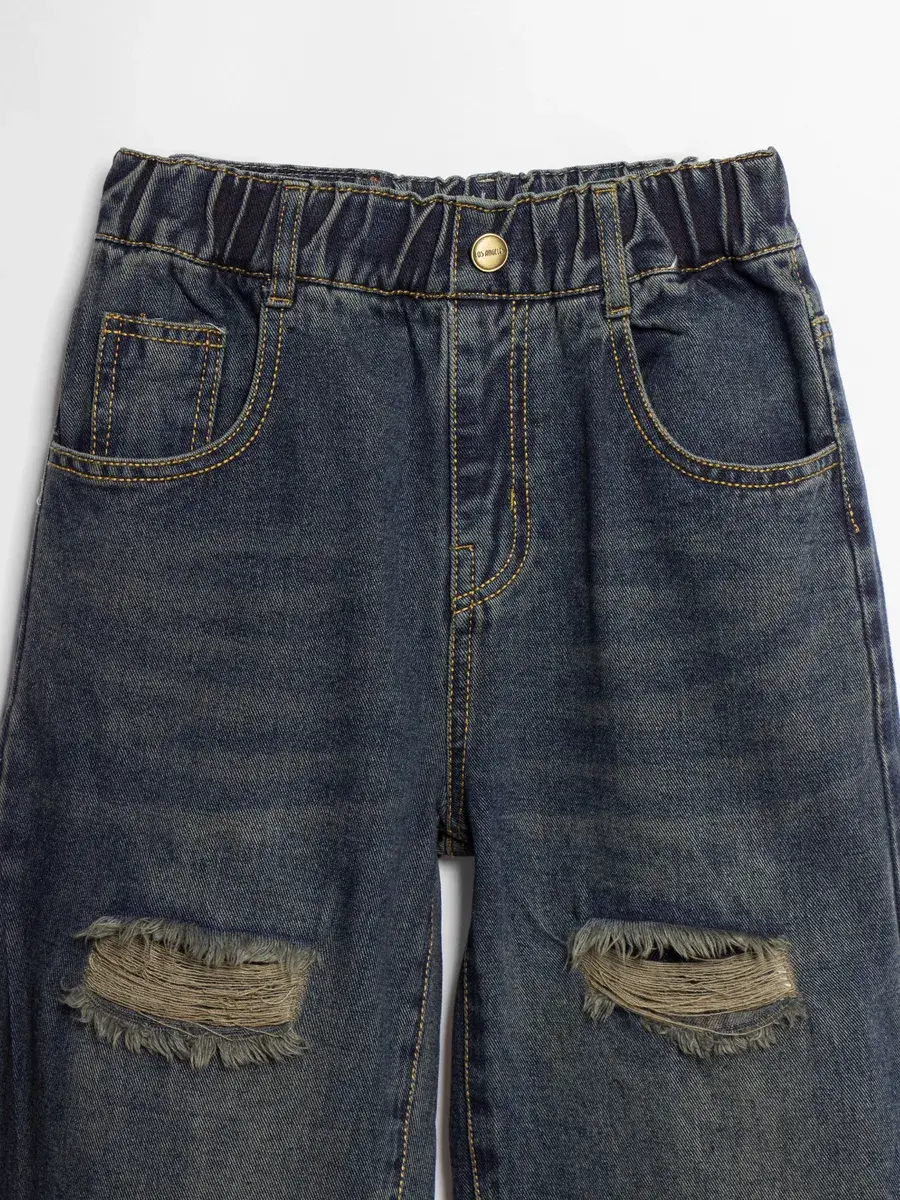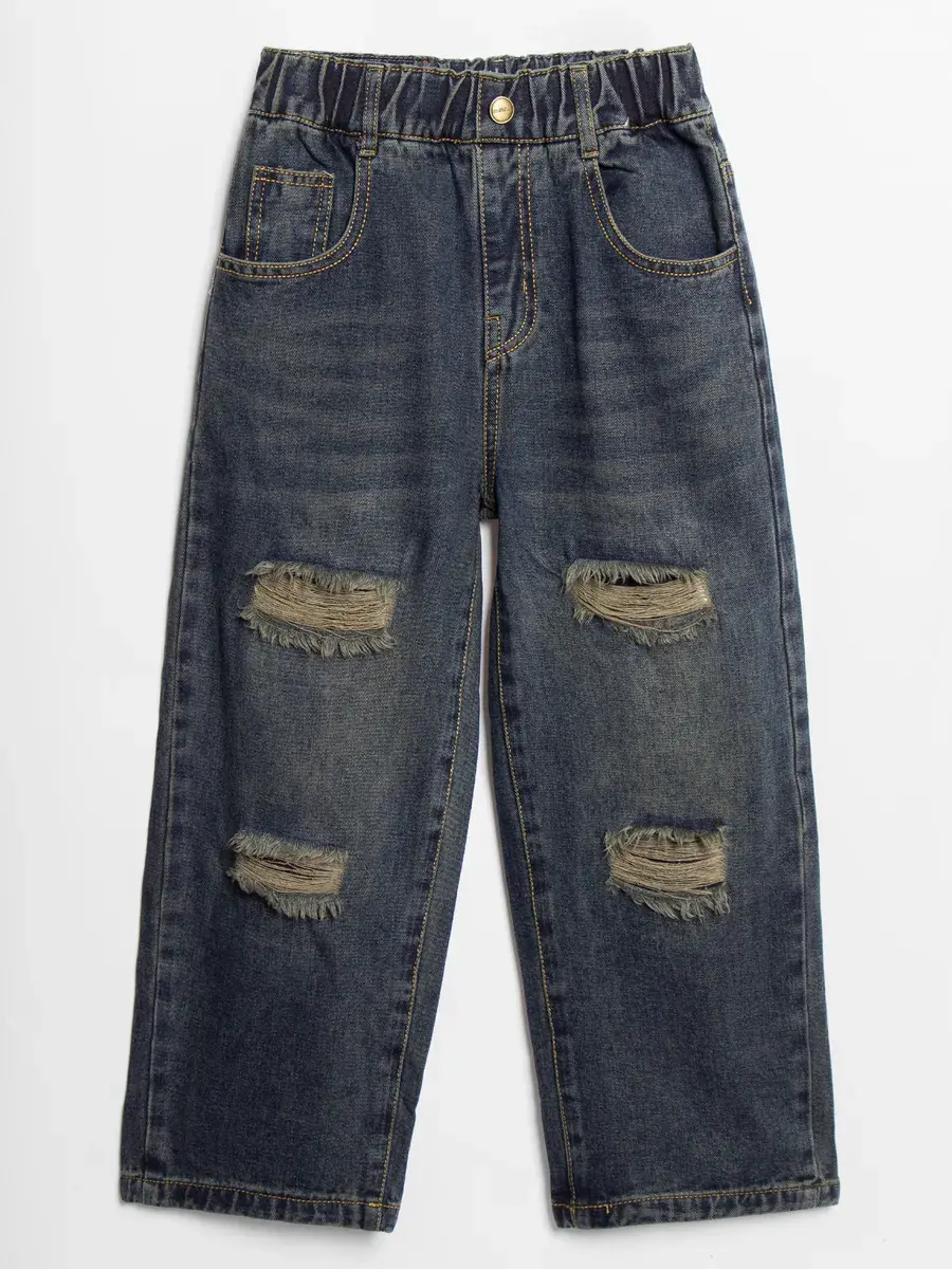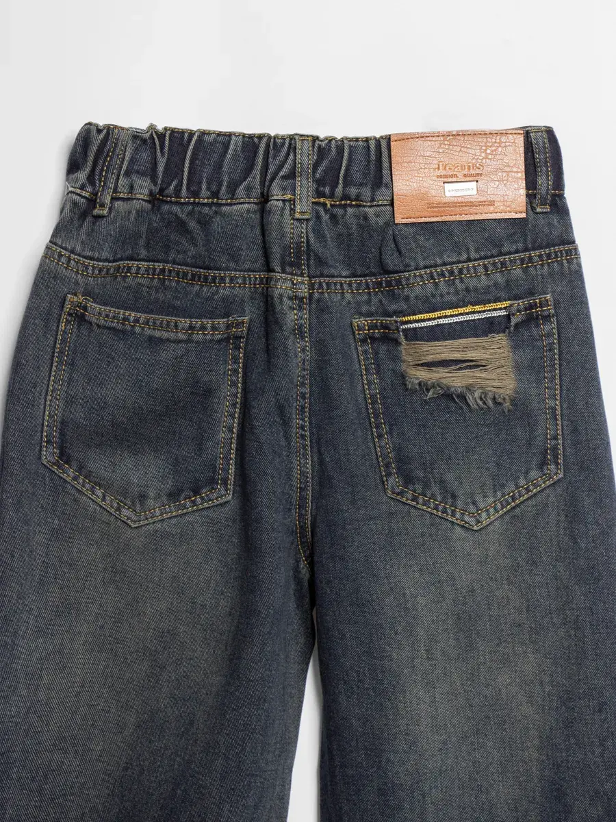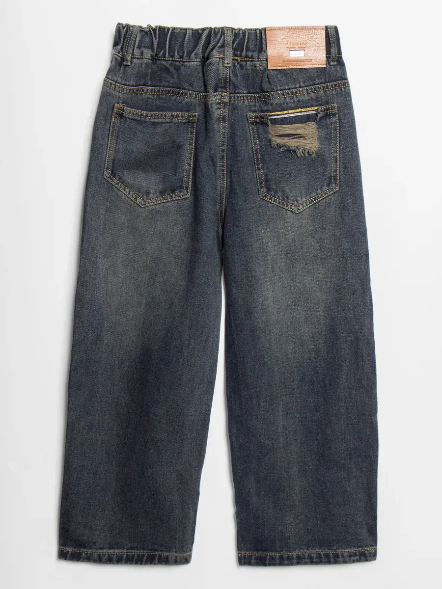 Стильный дизайн: Мы представляем широкие джинсы и брюки в стиле спорт-шик, которые сейчас на пике популярности. Модель с эффектом рваные и порванные джинсы с модными потертостями придает образу современный и динамичный вид. Это именно та модная одежда, которая понравится не только родителям, но и подросткам и малышам.
