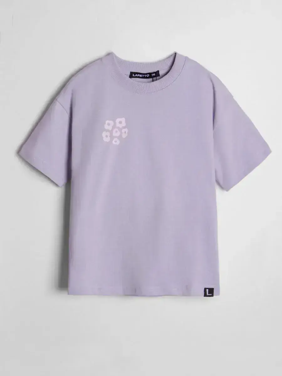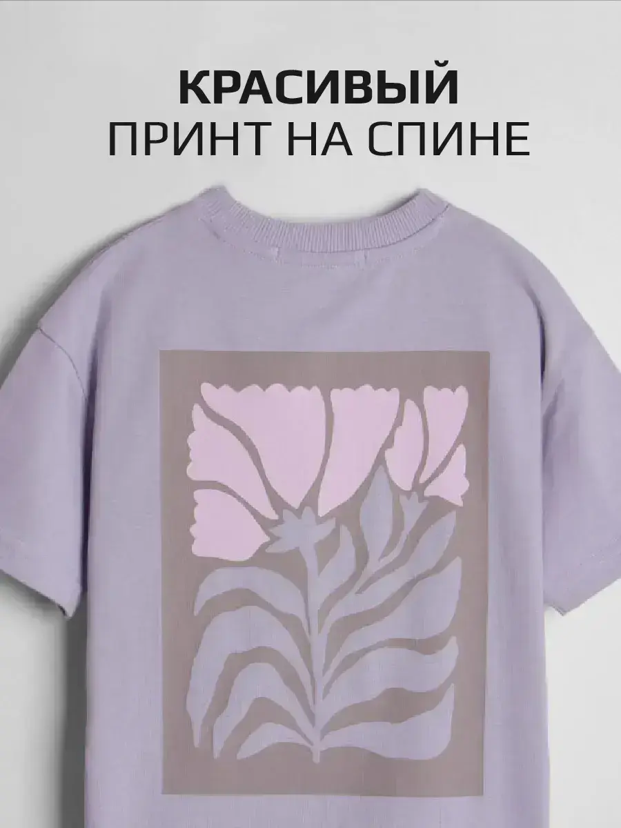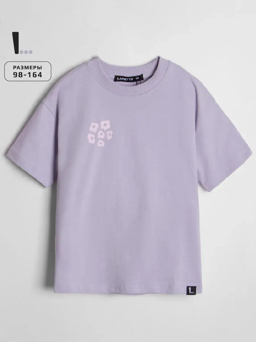Трикотажная футболка оверсайз с принтом для девочек от LARETTO, идеальную для стильных и комфортных образов. Эта сиреневая детская футболка с принтом в виде цветов выполнена в модном оверсайз крое, что обеспечивает свободу движений и комфорт в носке.