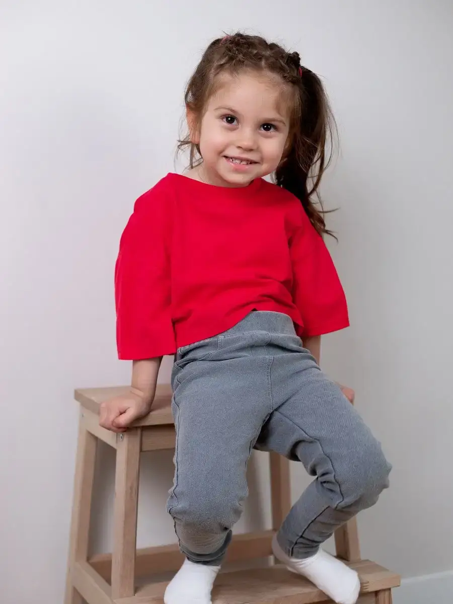Футболка для девочки — стильный и комфортный выбор для повседневного гардероба. Свободный крой оверсайз, спущенная линия плеча и прямой широкий рукав создают модный образ в духе современных тенденций. Благодаря удобному фасону, эта футболка детская идеально подходит для активного отдыха, занятий спортом, детского сада или дома.
