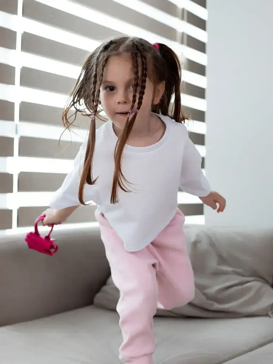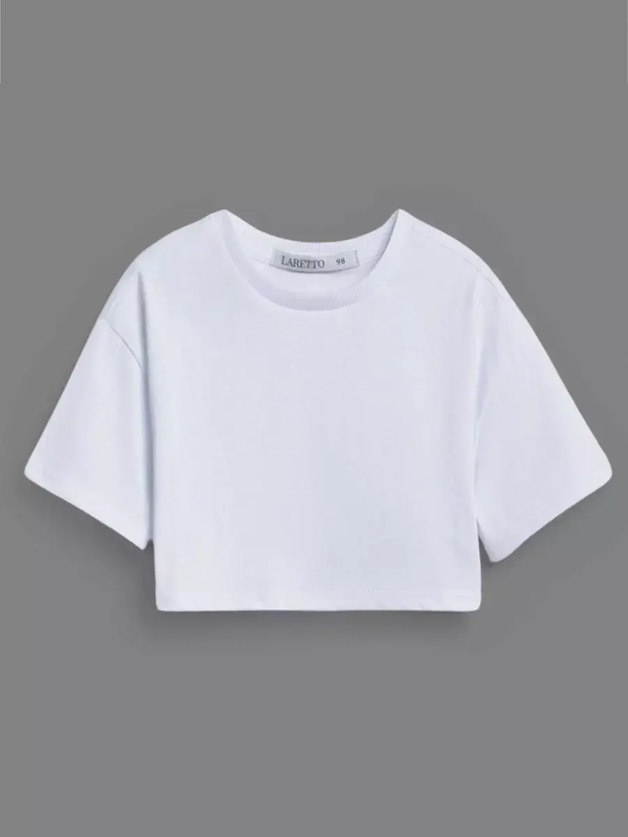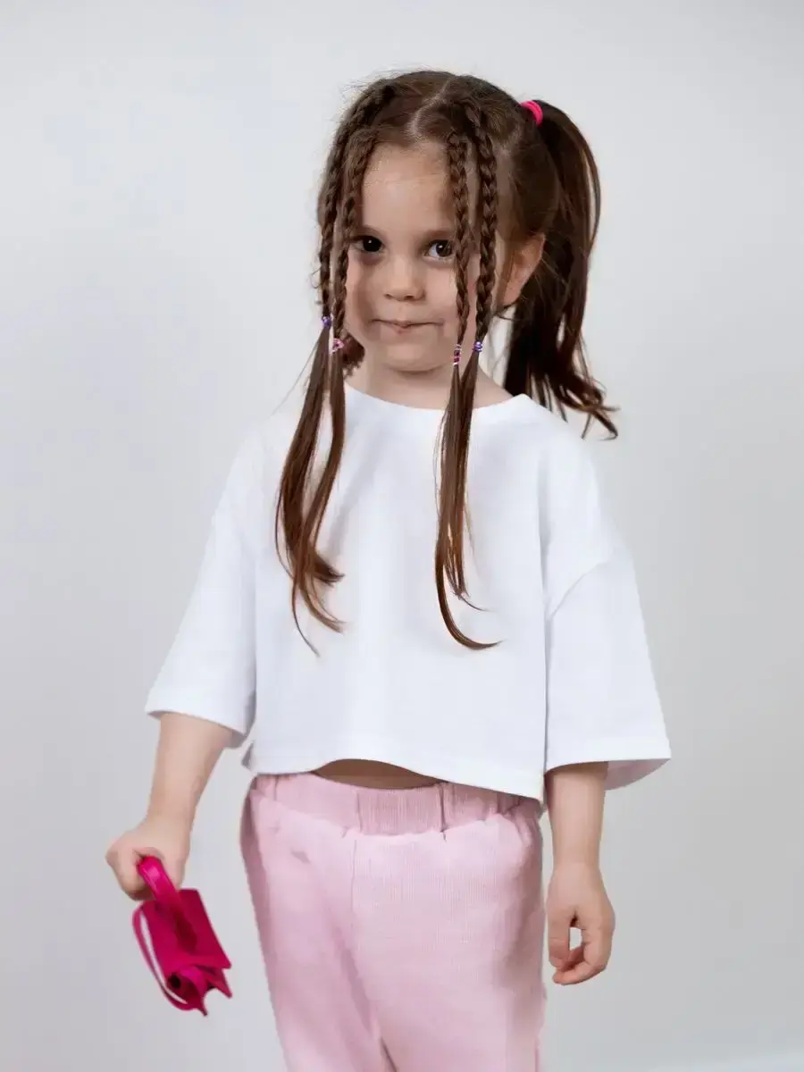 Футболка для девочки — стильный и комфортный выбор для повседневного гардероба. Свободный крой оверсайз, спущенная линия плеча и прямой широкий рукав создают модный образ в духе современных тенденций. Благодаря удобному фасону, эта футболка детская идеально подходит для активного отдыха, занятий спортом, детского сада или дома.