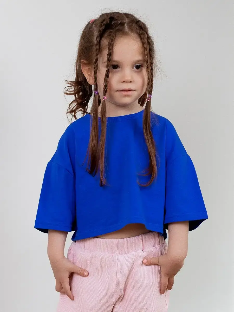 Футболка для девочки — стильный и комфортный выбор для повседневного гардероба. Свободный крой оверсайз, спущенная линия плеча и прямой широкий рукав создают модный образ в духе современных тенденций. Благодаря удобному фасону, эта футболка детская идеально подходит для активного отдыха, занятий спортом, детского сада или дома.