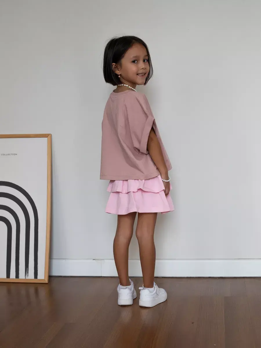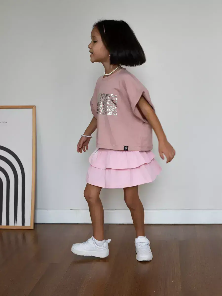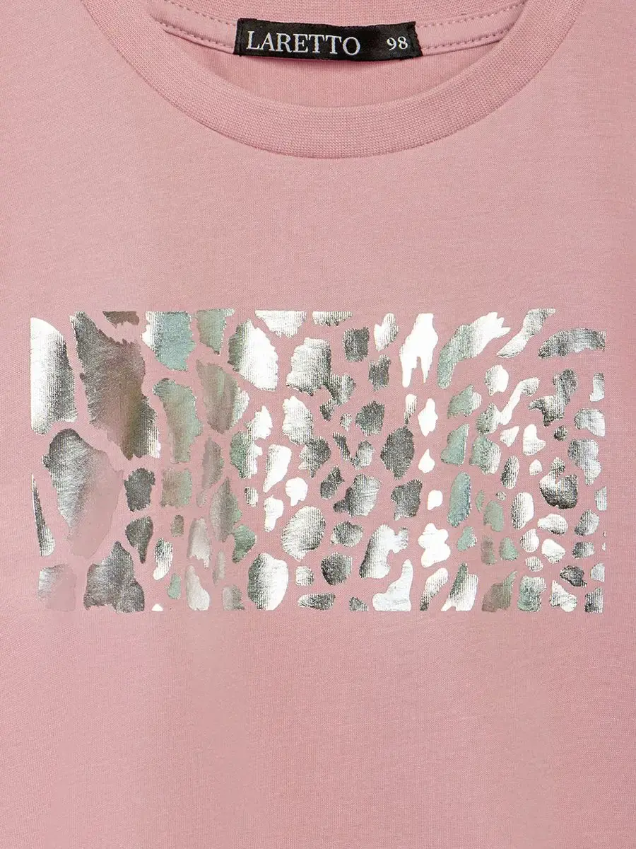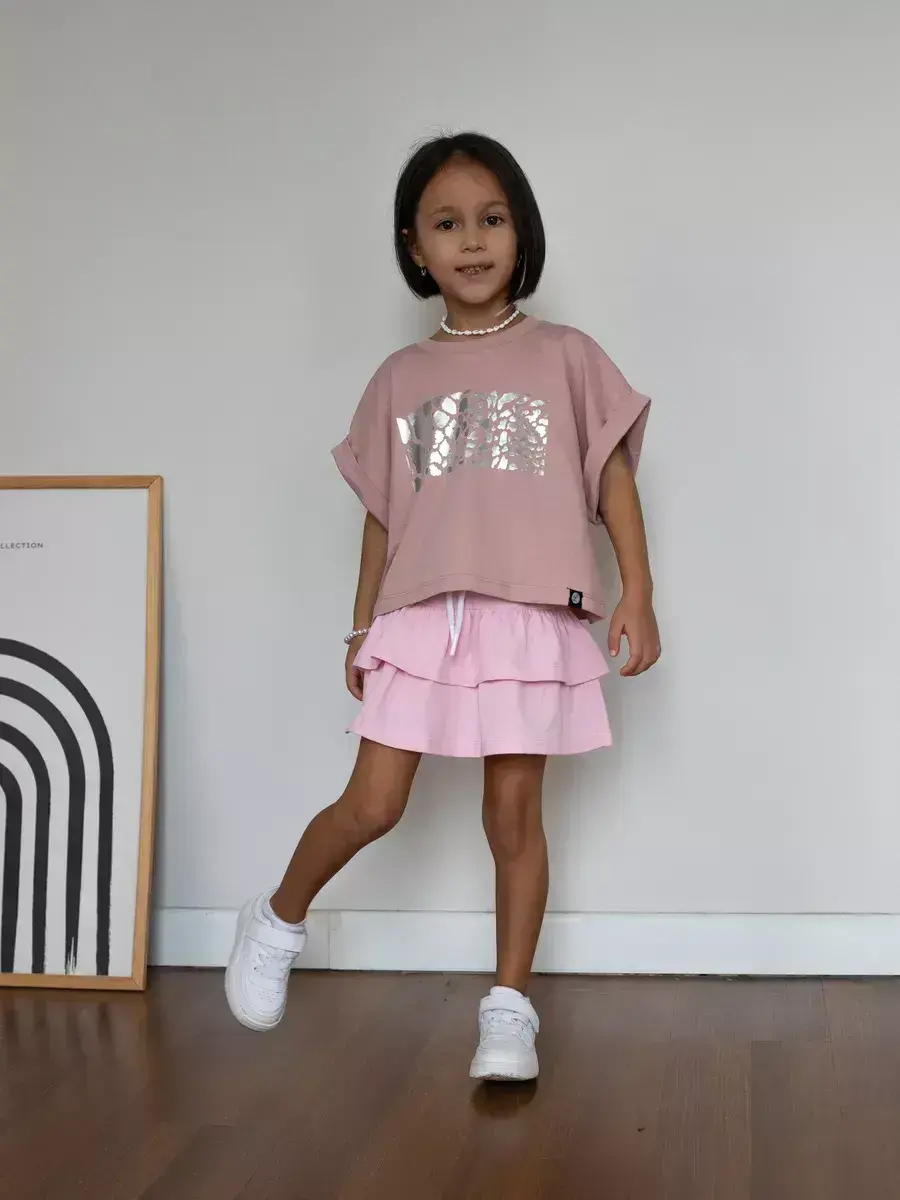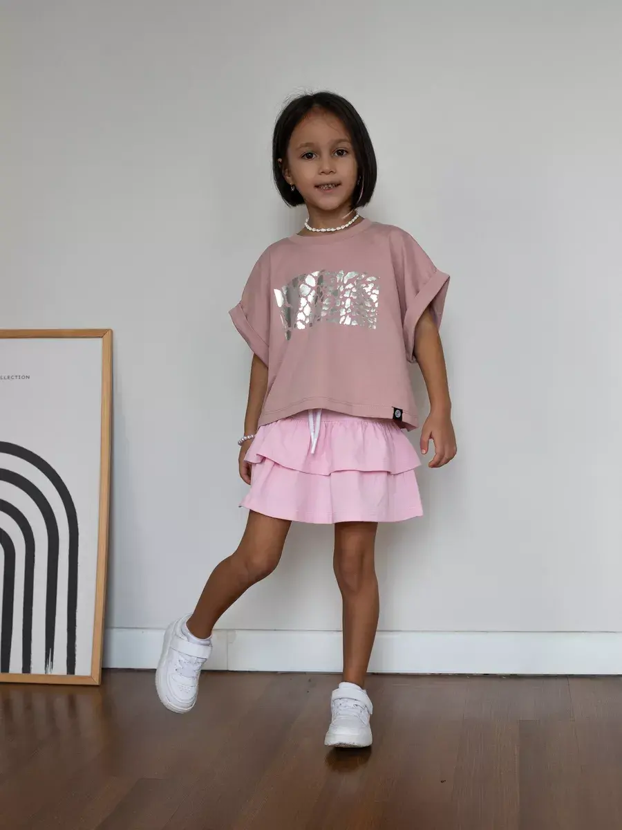 Футболка для девочки — стильный и комфортный выбор для повседневного гардероба. Свободный крой оверсайз, спущенная линия плеча и прямой широкий рукав создают модный образ в духе современных тенденций. Благодаря удобному фасону, эта футболка детская идеально подходит для активного отдыха, занятий спортом, детского сада или дома.