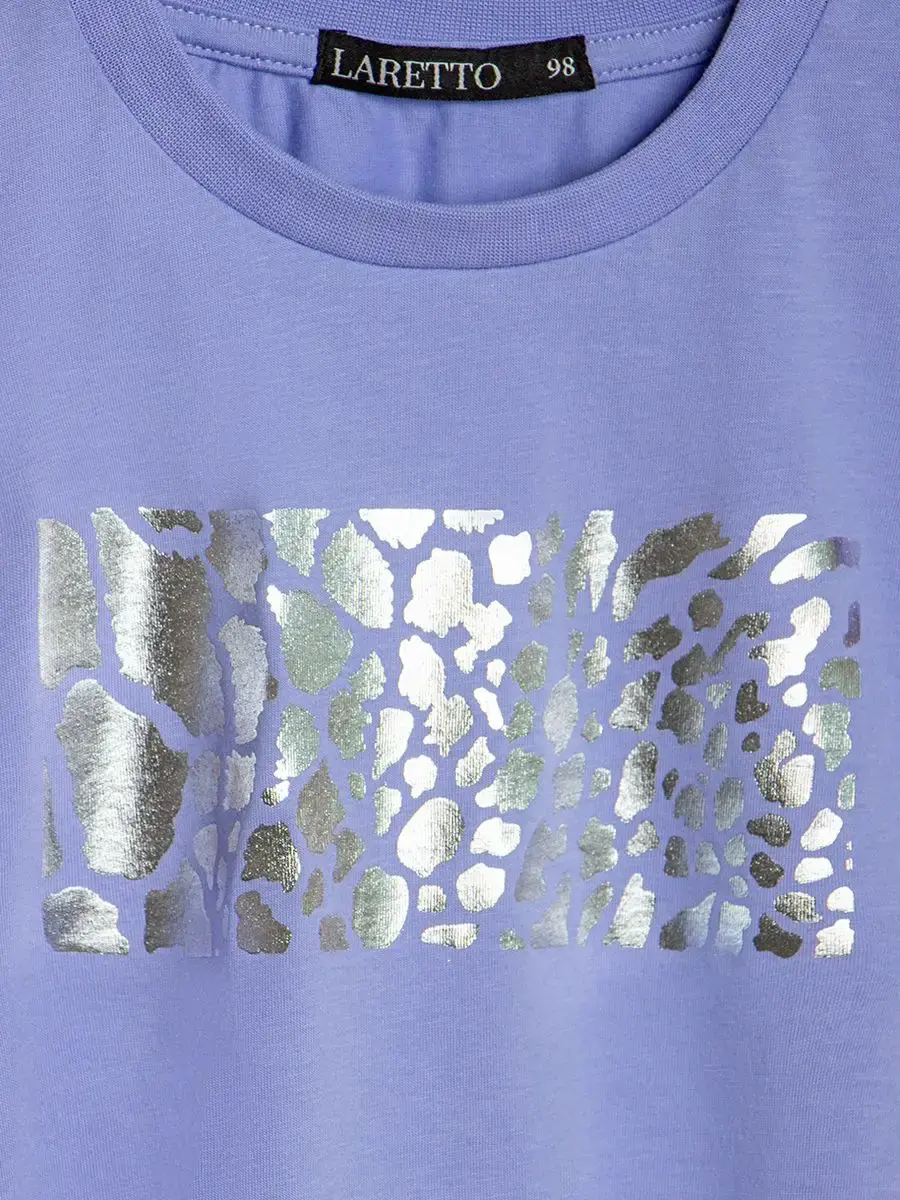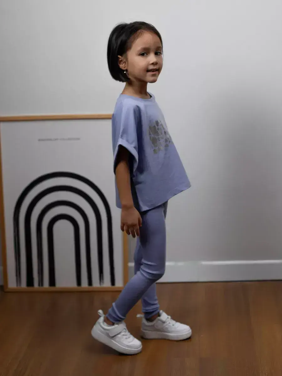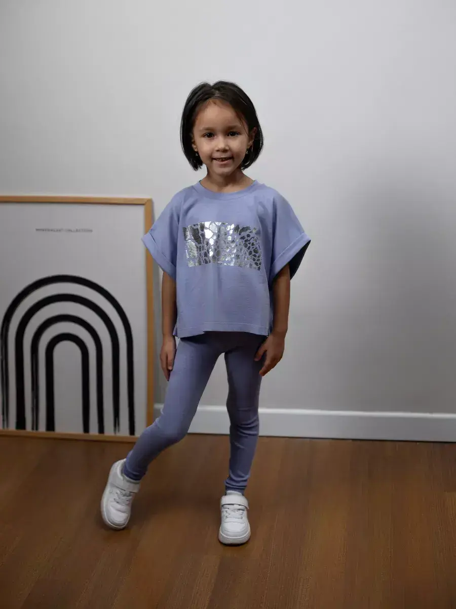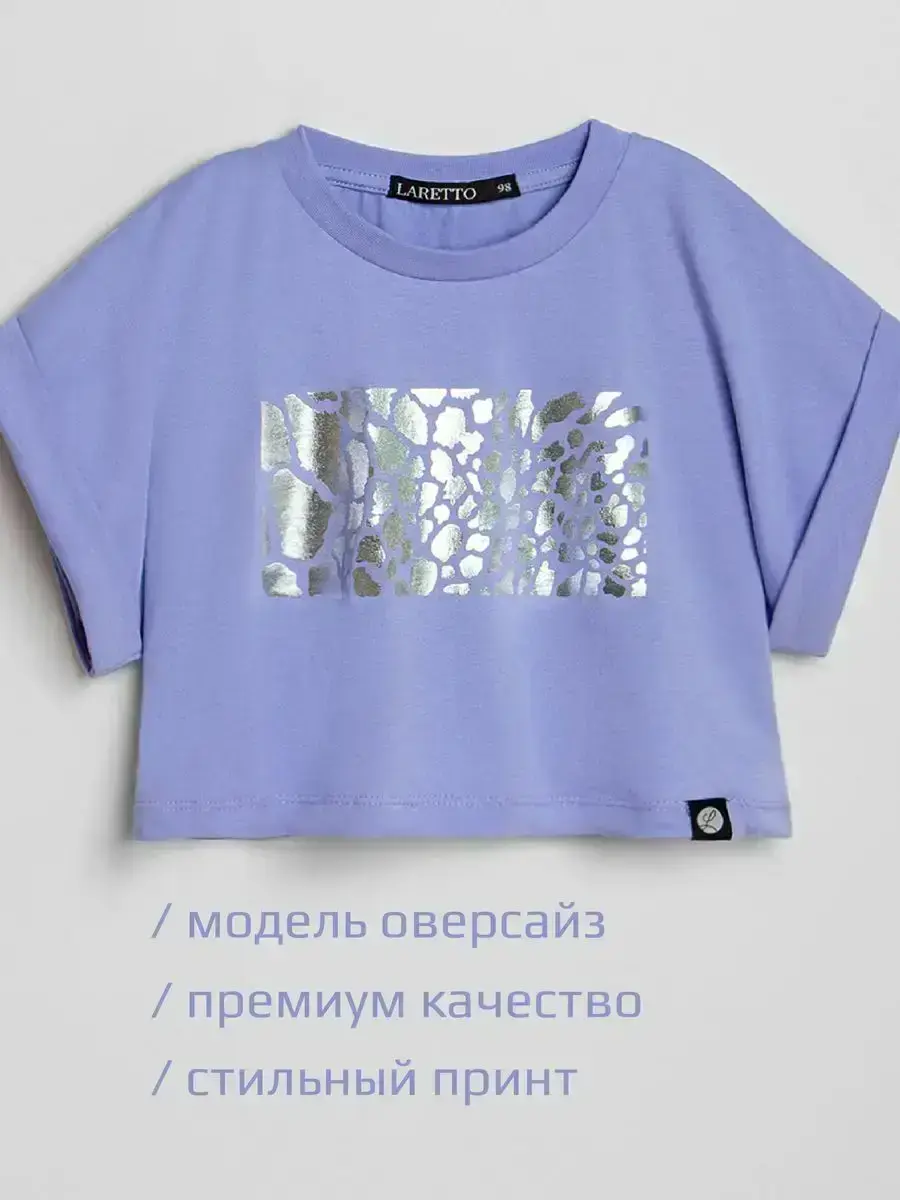Футболка для девочки — стильный и комфортный выбор для повседневного гардероба. Свободный крой оверсайз, спущенная линия плеча и прямой широкий рукав создают модный образ в духе современных тенденций. Благодаря удобному фасону, эта футболка детская идеально подходит для активного отдыха, занятий спортом, детского сада или дома.