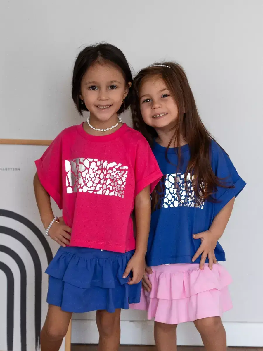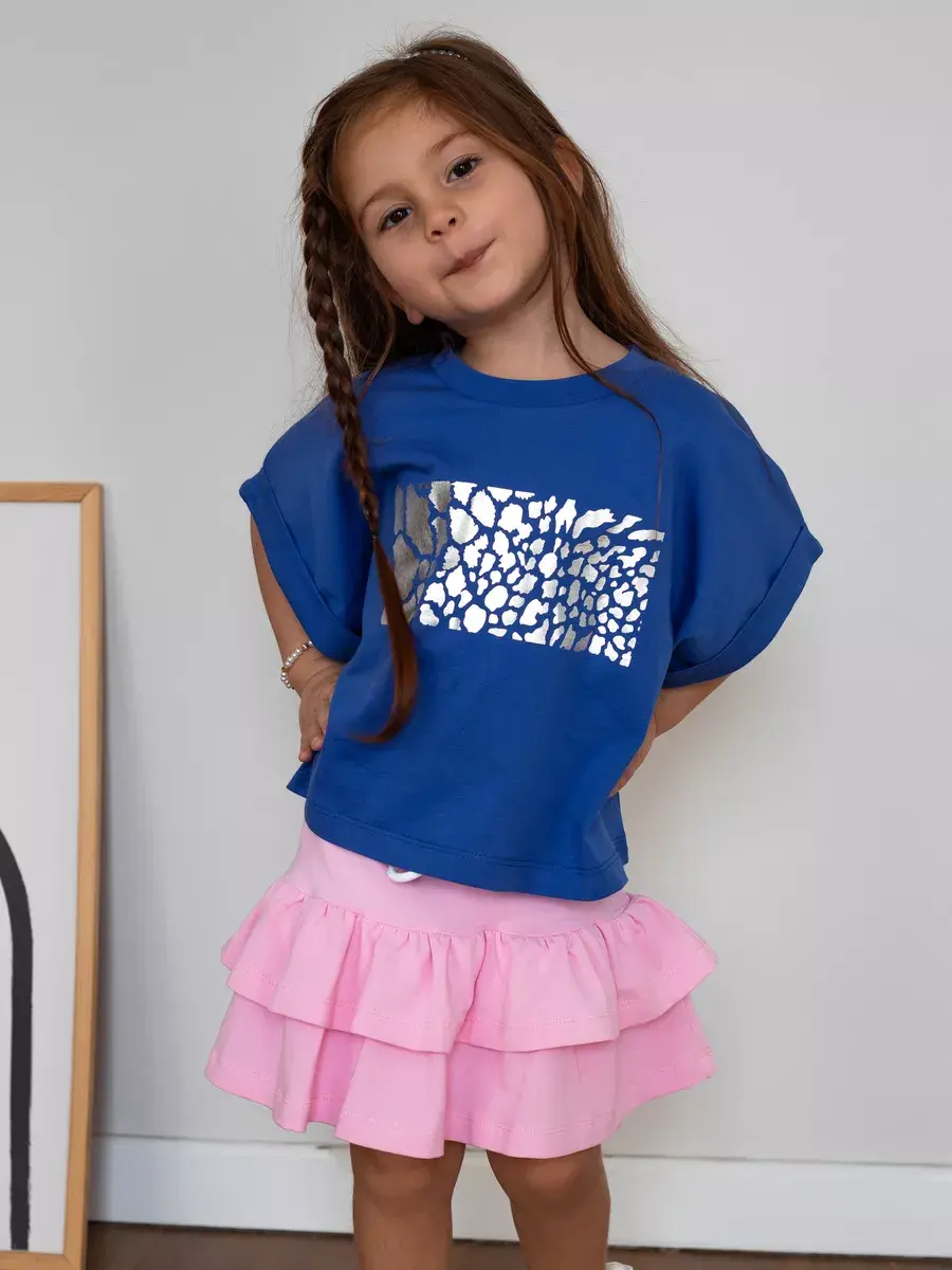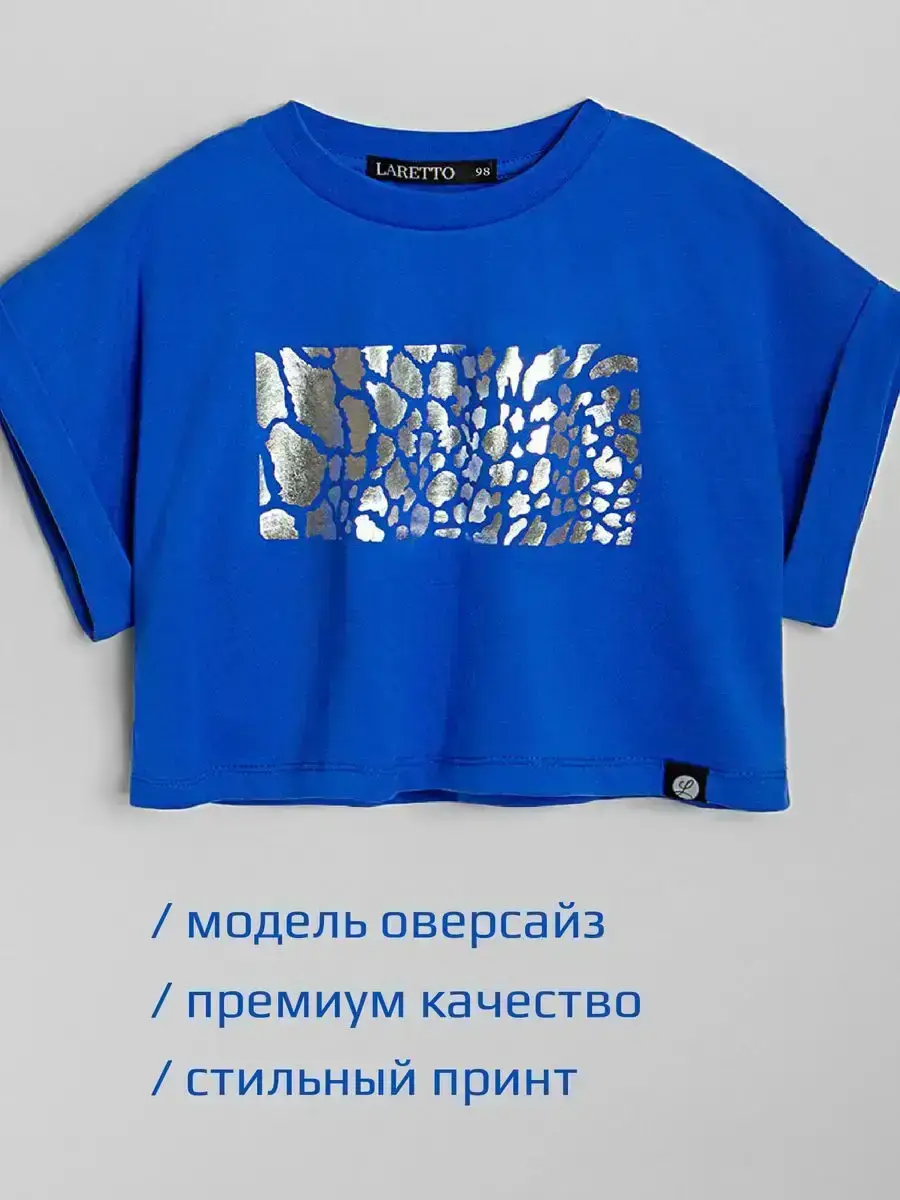 Футболка для девочки — стильный и комфортный выбор для повседневного гардероба. Свободный крой оверсайз, спущенная линия плеча и прямой широкий рукав создают модный образ в духе современных тенденций. Благодаря удобному фасону, эта футболка детская идеально подходит для активного отдыха, занятий спортом, детского сада или дома.