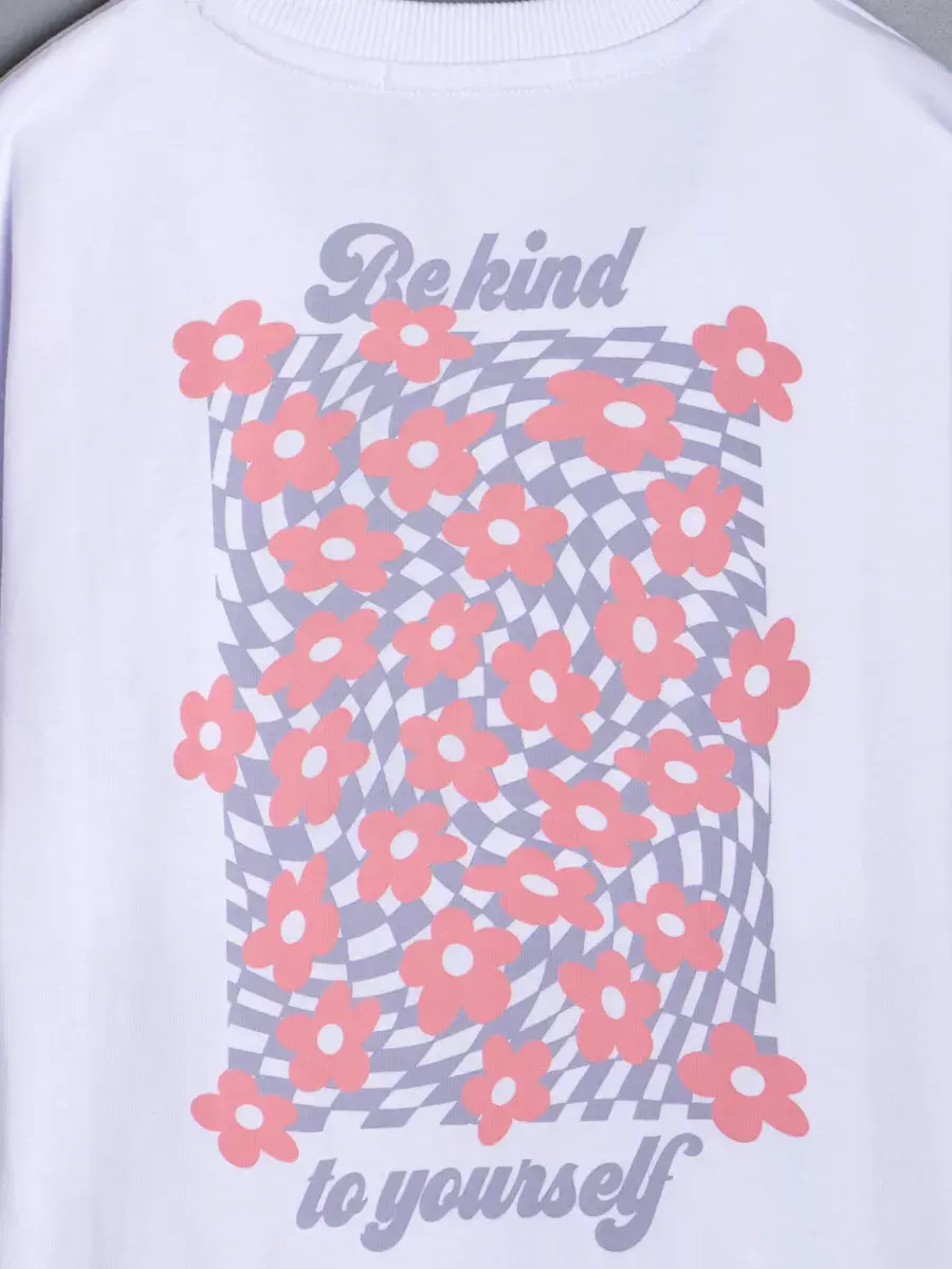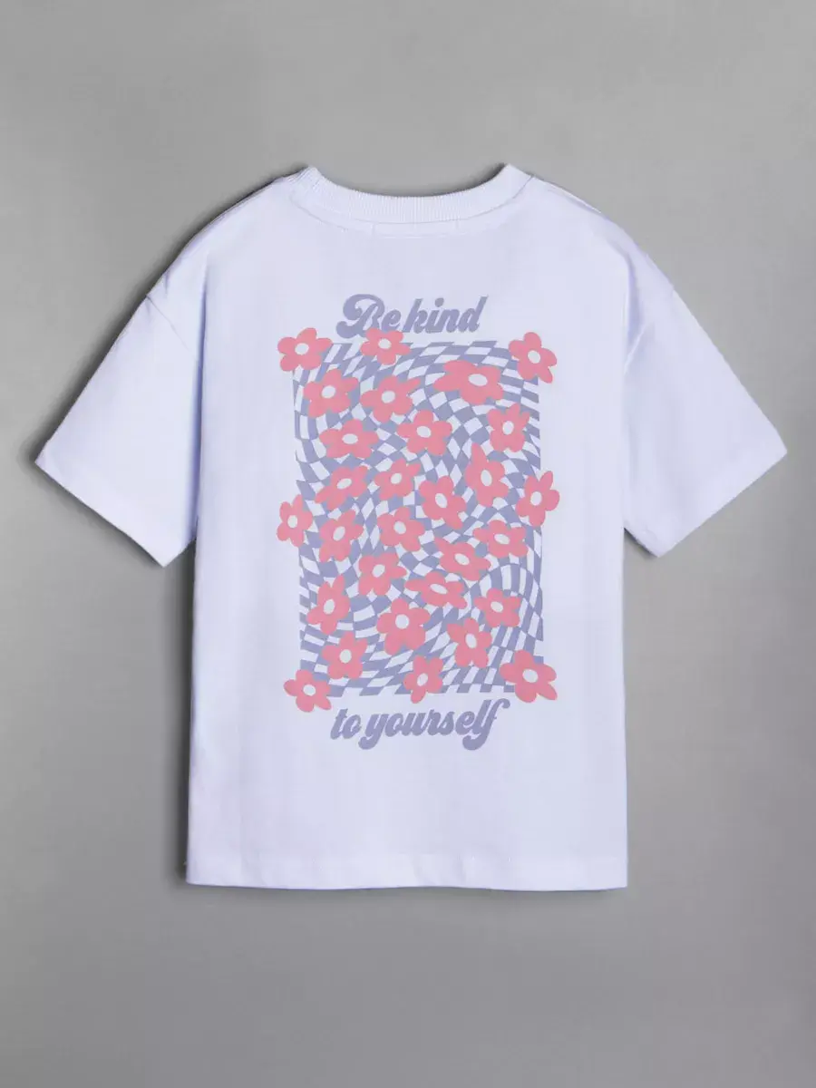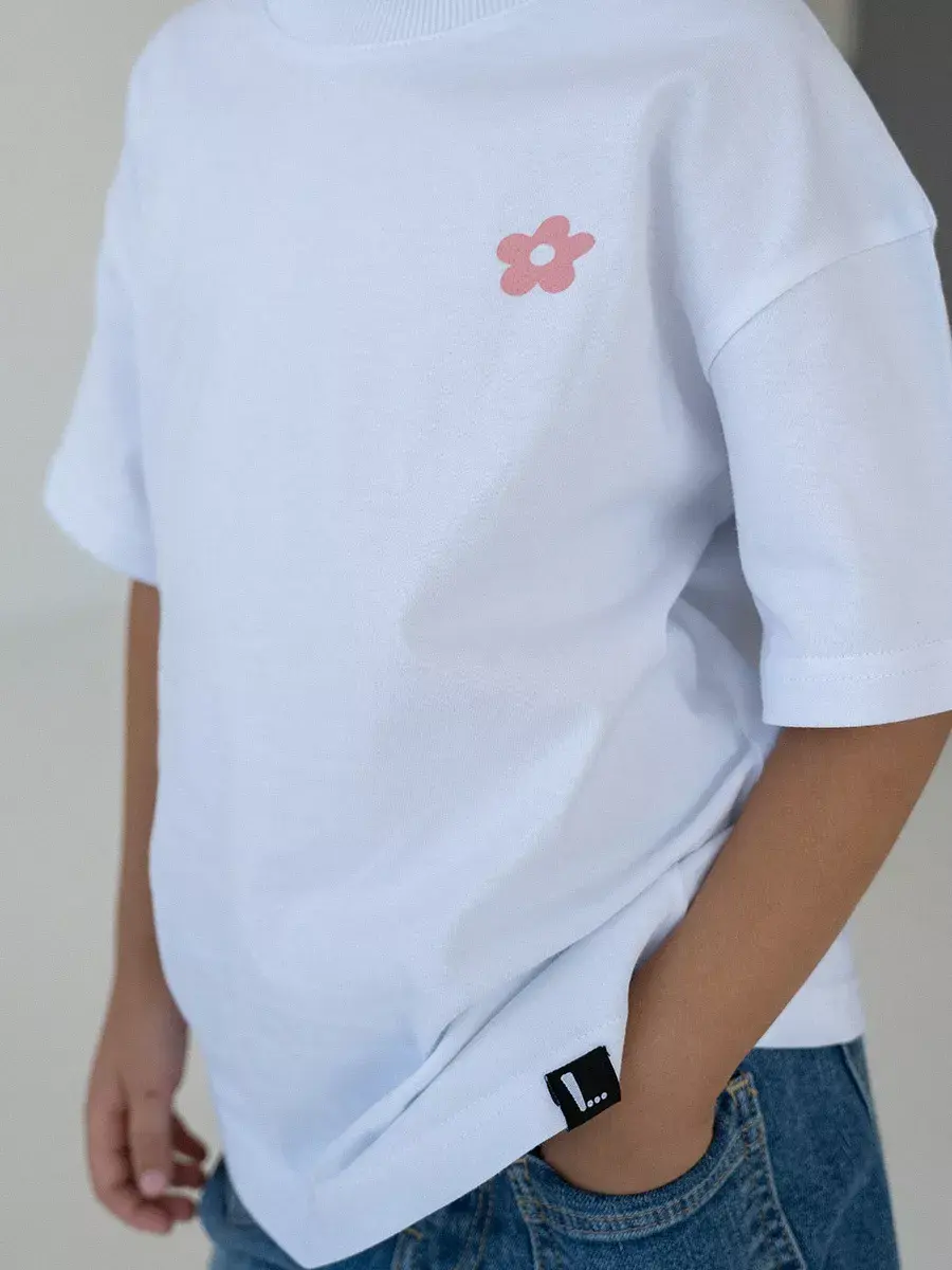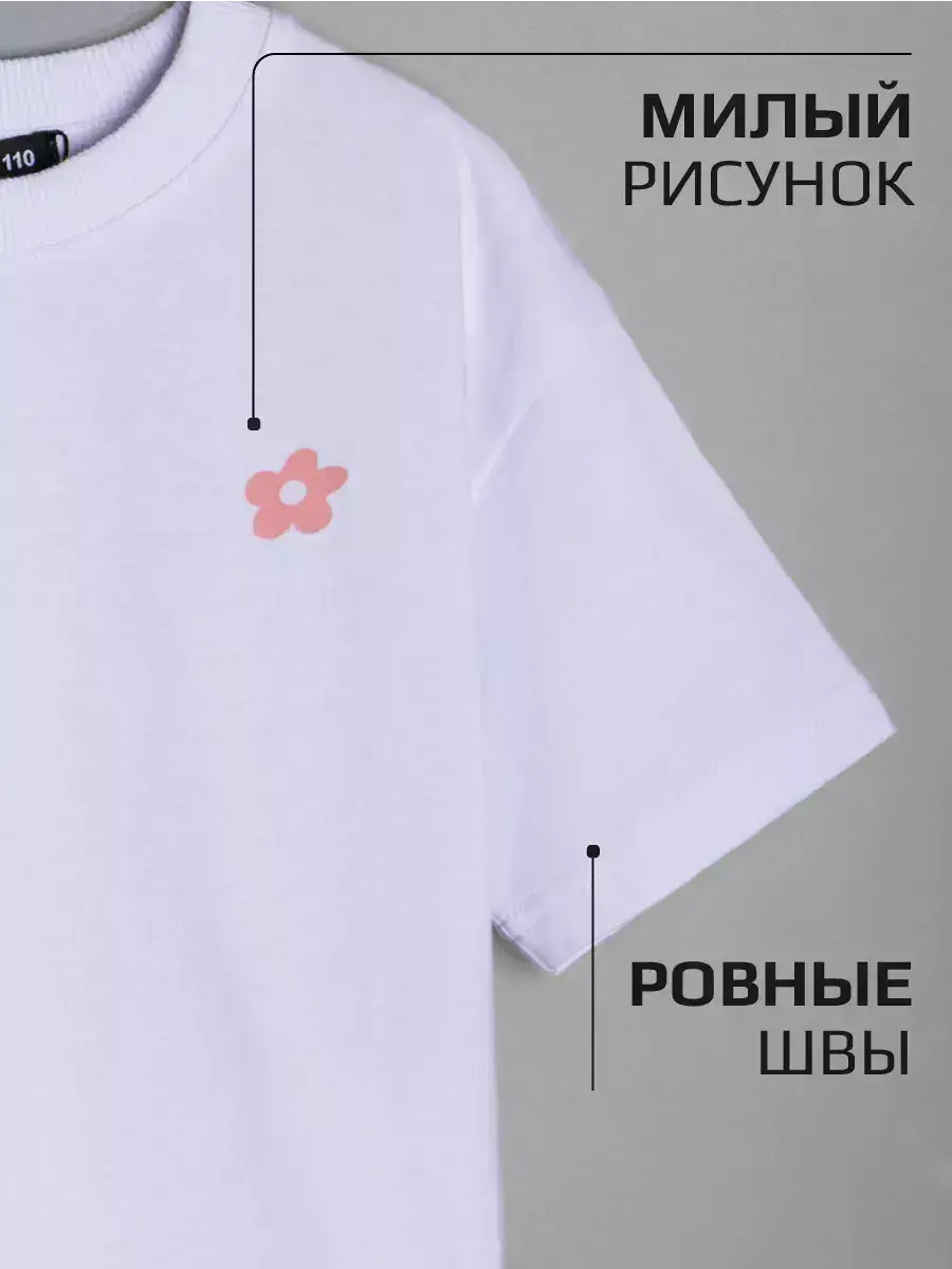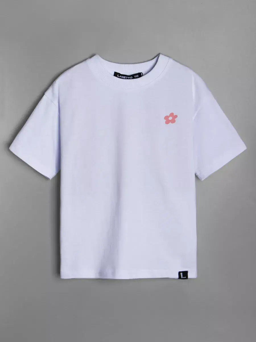 Трикотажная футболка оверсайз с принтом для девочек от LARETTO, идеальную для стильных и комфортных образов. Эта белая футболк с принтом в виде цветов выполнена в модном оверсайз крое, что обеспечивает свободу движений и комфорт в носке.