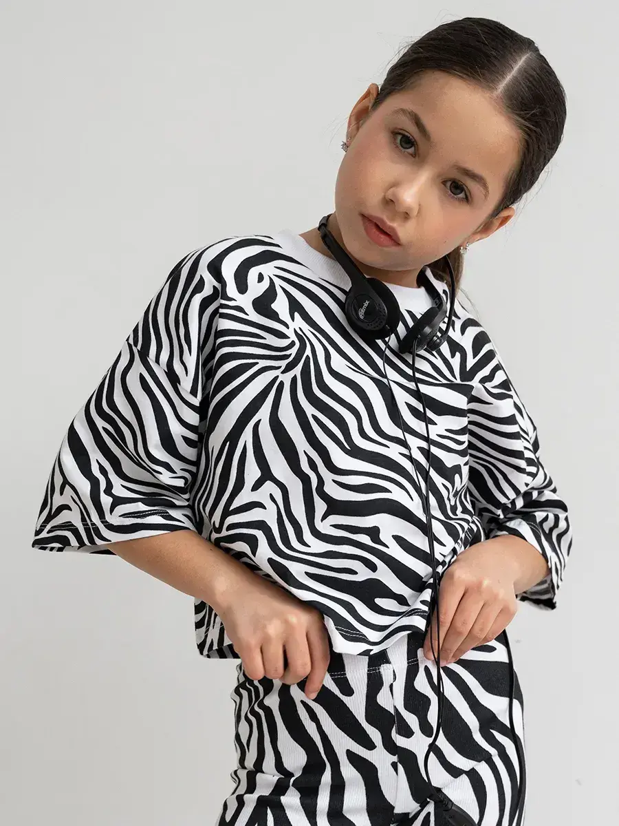 Стильная футболка для девочки подростка из натурального хлопка. Прямой крой футболки для девочки укороченной молодежная модель. Расслабленный фасон обеспечит оптимальную посадку и свободу движений. Футболка оверсайз для девочки с принтом легко комбинируется с разной одеждой: в повседневном образе или спортивном аутфите. Долговечная и износостойкая футболка для девочки, яркие принты не потеряют цвет и форму даже после многочисленных стирок.