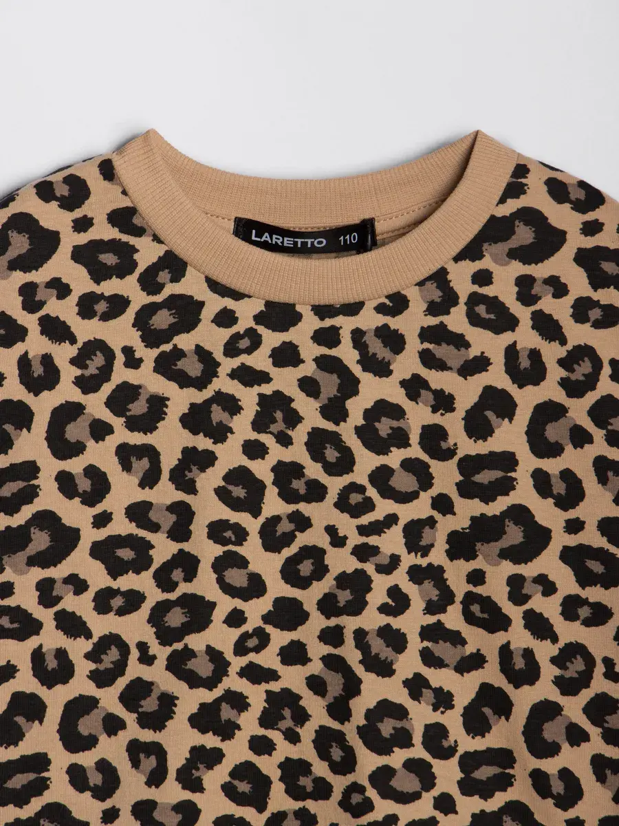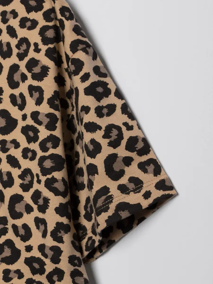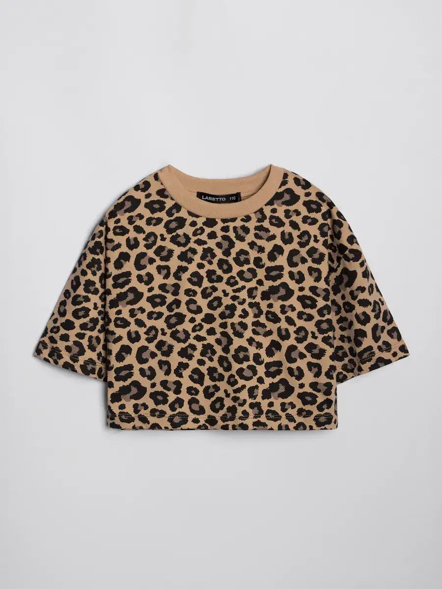 Стильная футболка для девочки подростка из натурального хлопка. Прямой крой футболки для девочки укороченной молодежная модель. Расслабленный фасон обеспечит оптимальную посадку и свободу движений. Футболка оверсайз для девочки с принтом в леопардовом стиле легко комбинируется с разной одеждой: в повседневном образе или спортивном аутфите. Долговечная и износостойкая футболка для девочки, яркие принты не потеряют цвет и форму даже после многочисленных стирок.