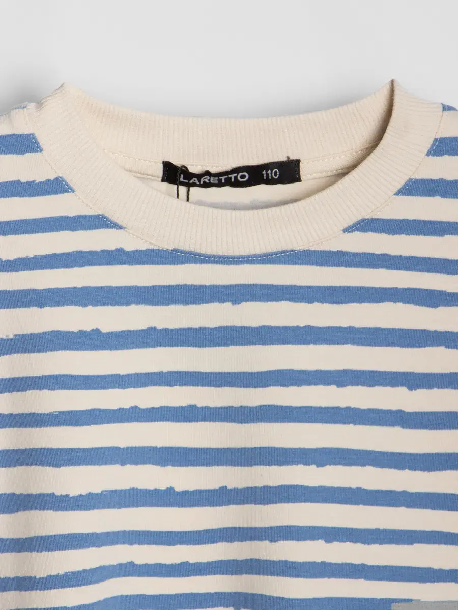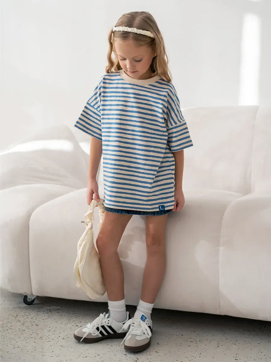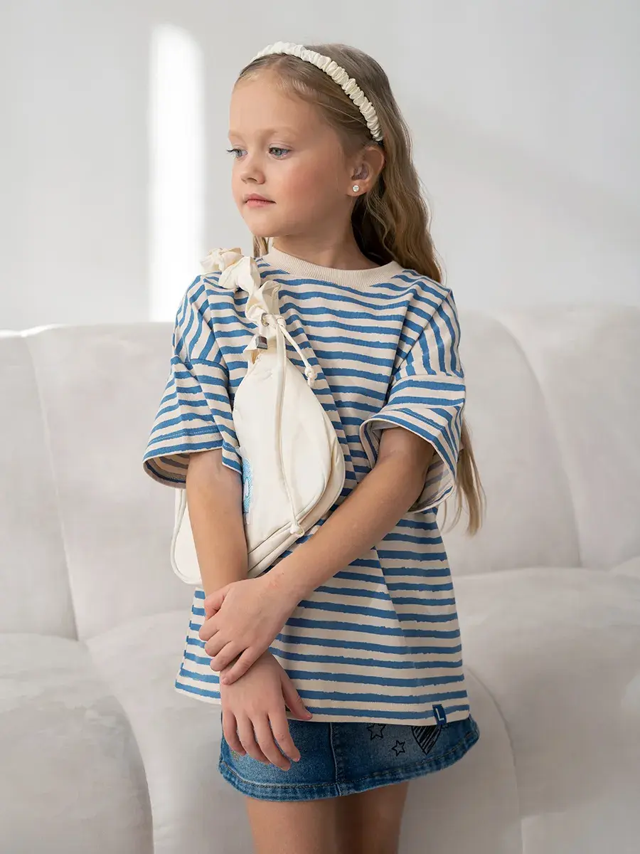 Тельняшка для девочки легко сочетается с другими элементами гардероба. Её можно сочетать с шортами или джинсами, создавая стильный образ на каждый день. Удобство в носке делает эту удлинённую футболку для девочки идеальной вещью для любых мероприятий.