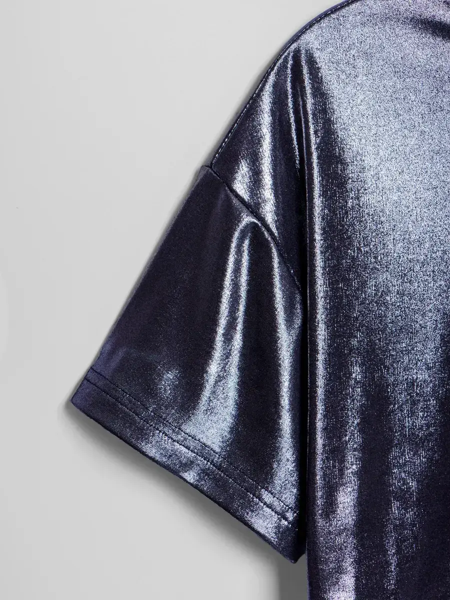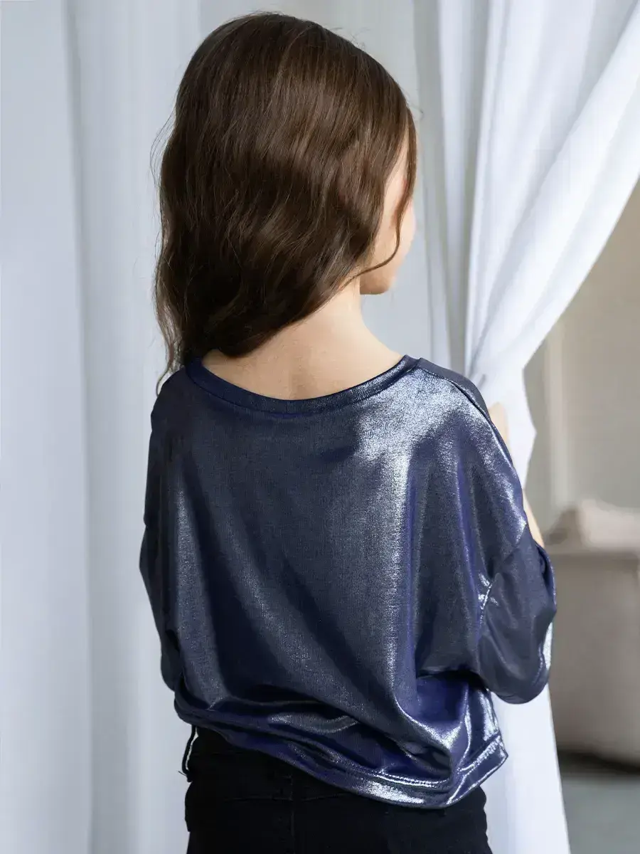 Изготовлена из струящейся ткани с эффектом масла, эта трикотажная модель обладает приятной текстурой и лёгким блеском. Оверсайз подходит как подросткам, так и маленьким детям, делая её универсальной. Милые детали подойдут для фотосессий или праздничных мероприятий.