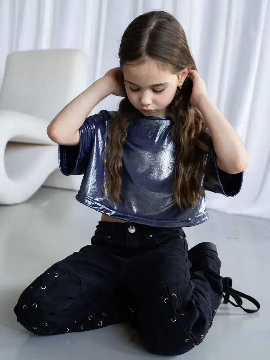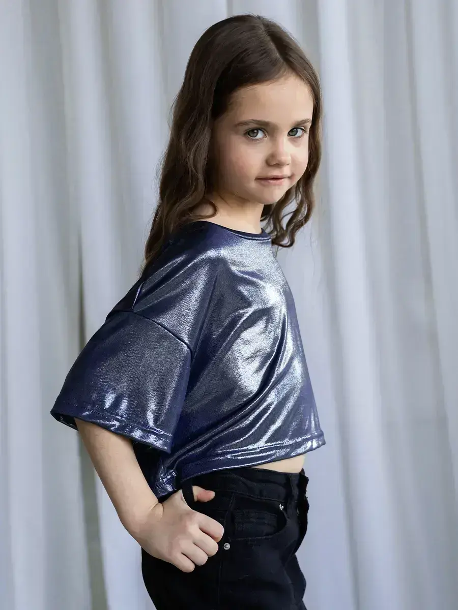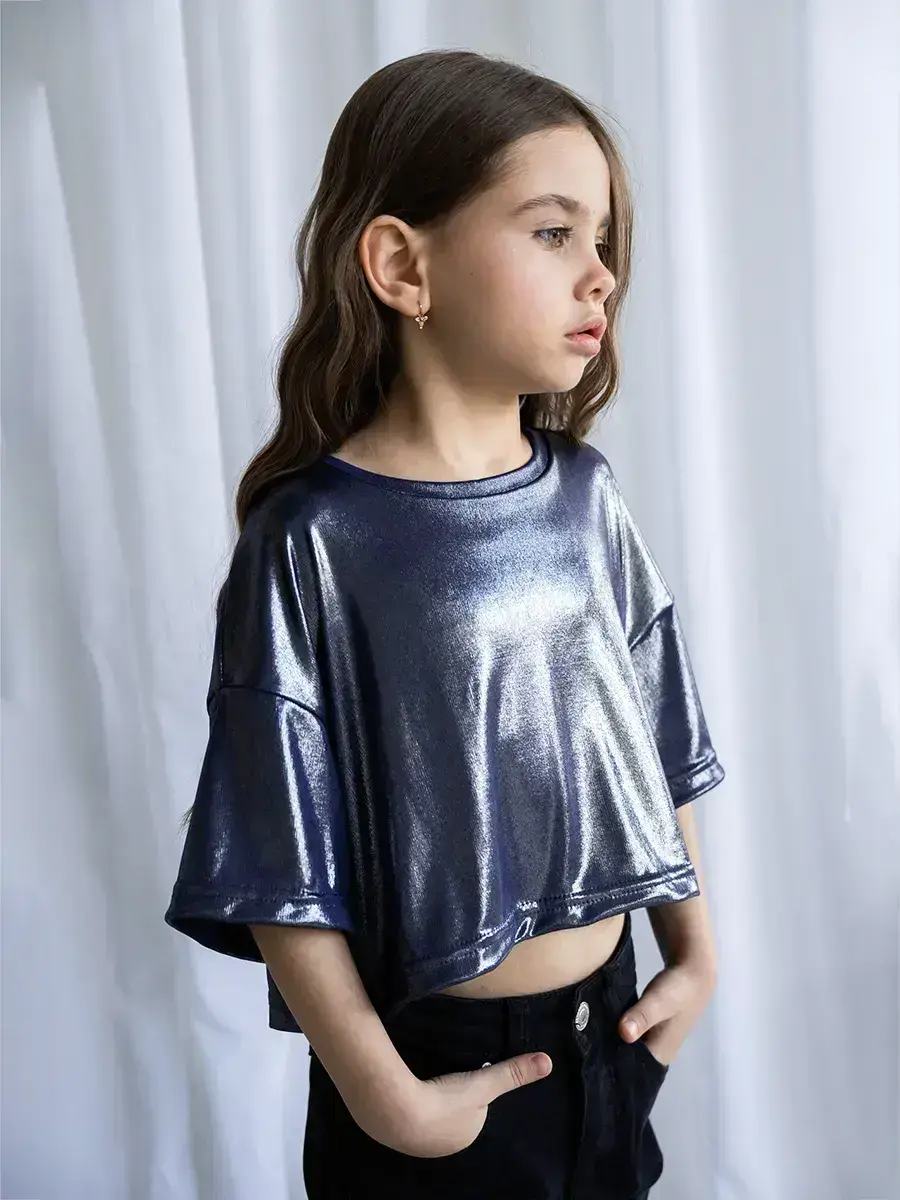 Эта стильная детская укороченная футболка станет замечательным подарком для девочки на любой праздник. Она отлично подойдёт для школы, для детского садика или домашних праздников. Нарядная детская одежда создаёт уютный образ, а короткий крой добавляет модный акцент для любого роста.