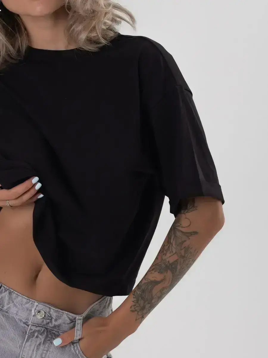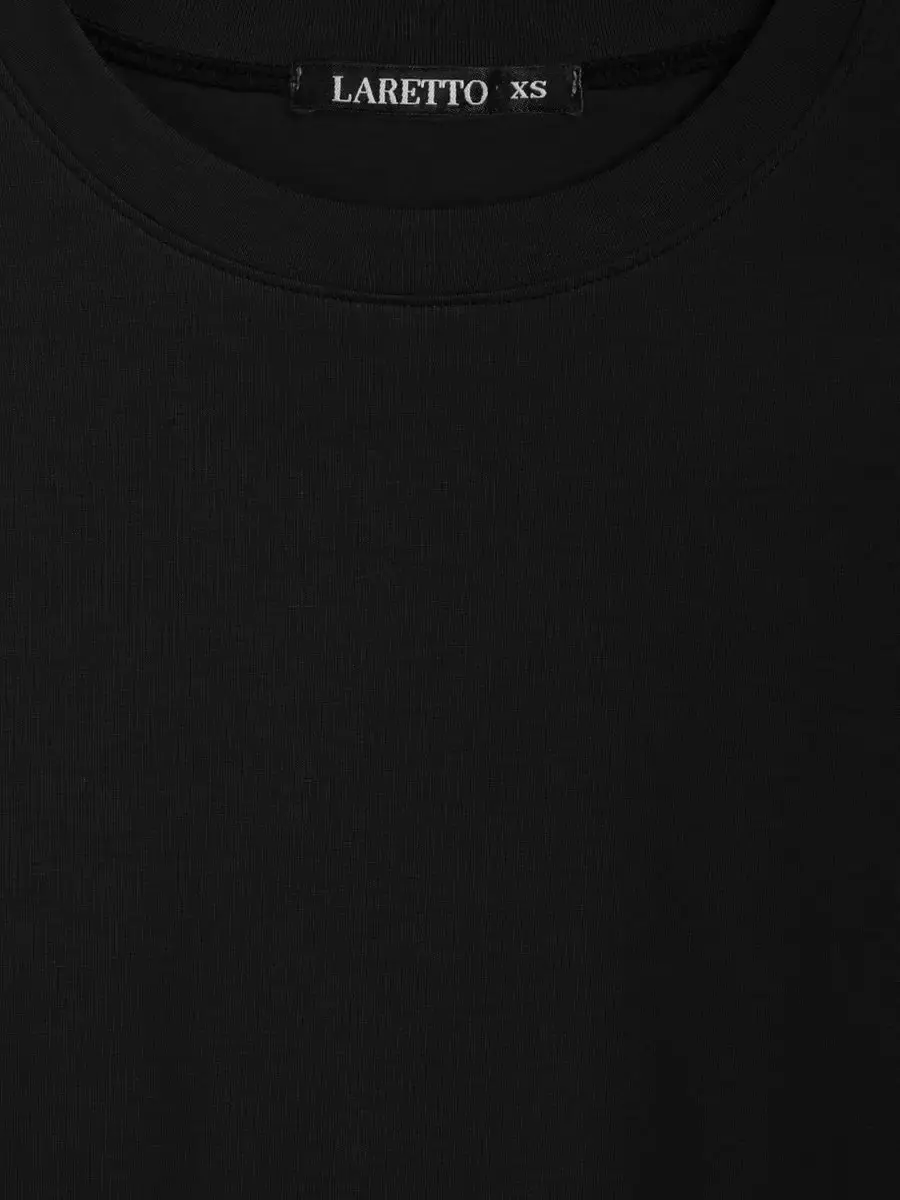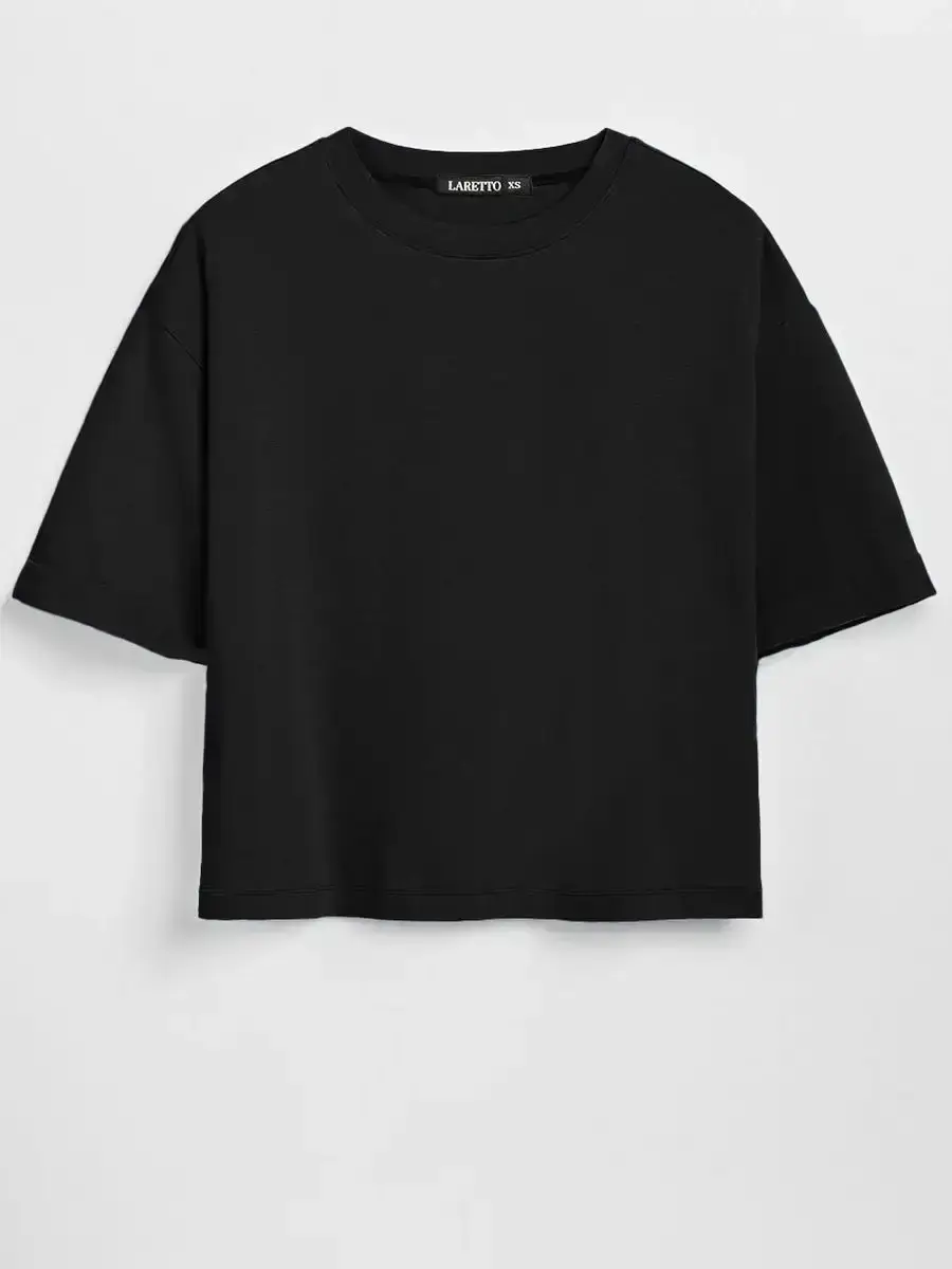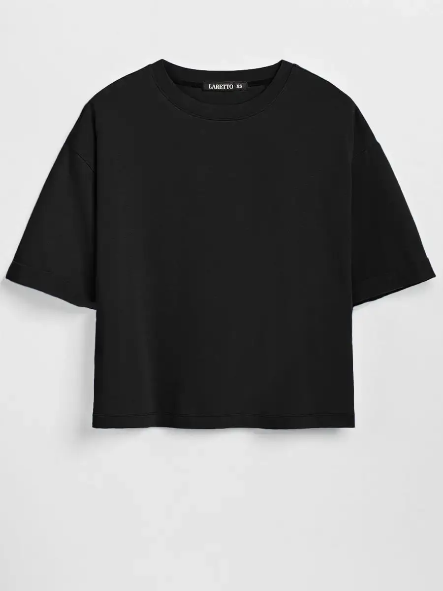 Футболка женская укороченная LARETTO станет незаменимым брендом в гардеробе каждой девушки! Модель оверсайз прямого кроя со спущенным плечом – тренд этого лета! Базовый топ универсальный, он отлично подходит как для создания повседневных образов, так и в качестве домашней одежды. Очень удобен для занятий спортом и фитнесом, так как не сковывает движений.