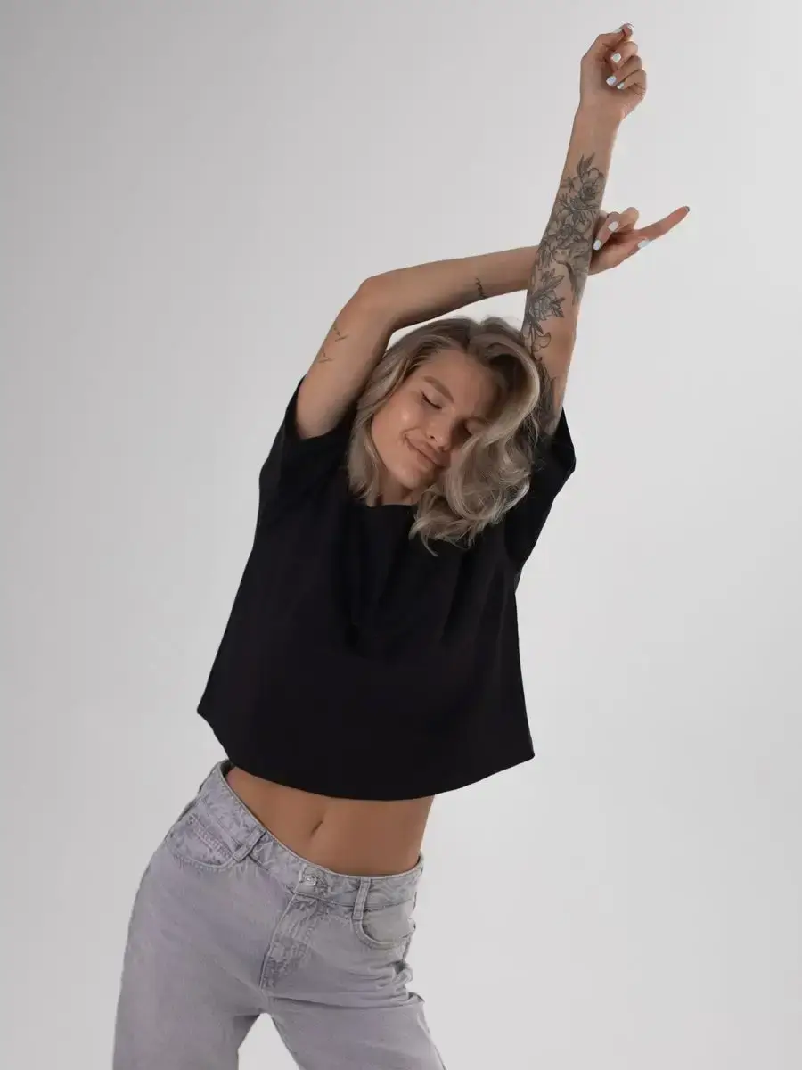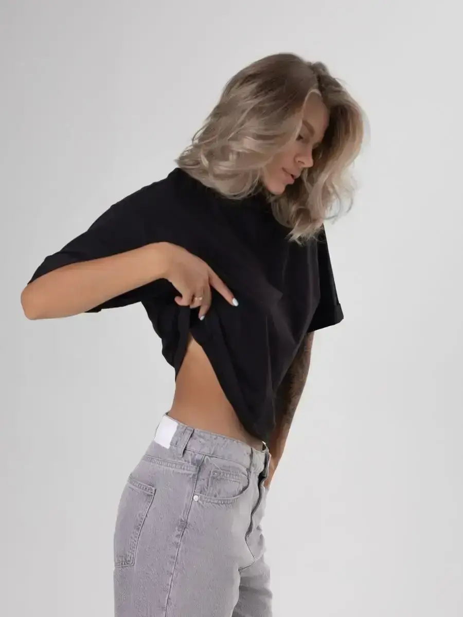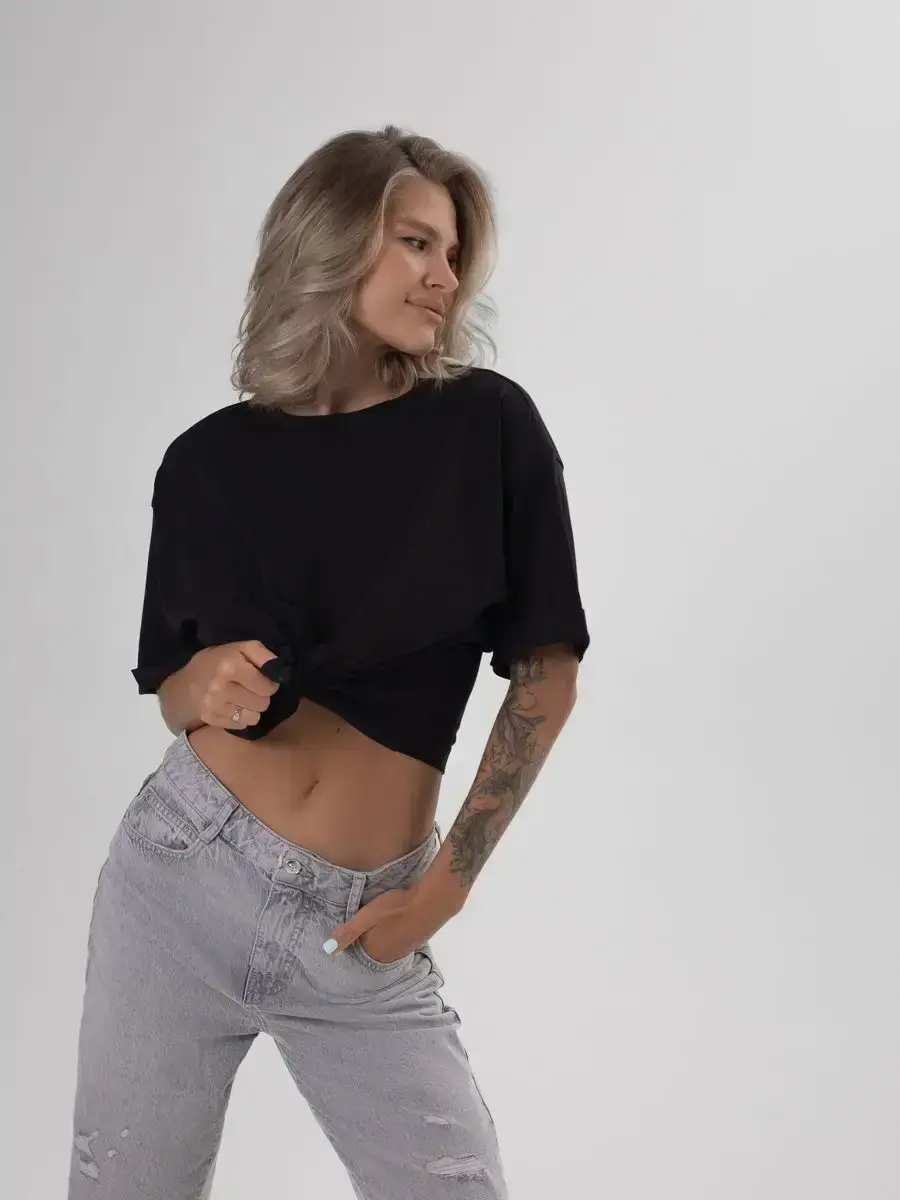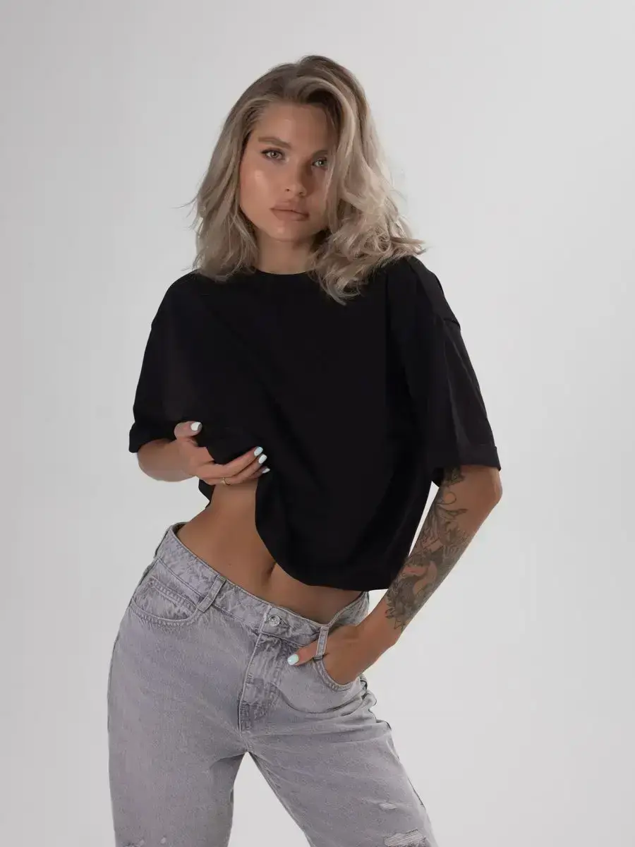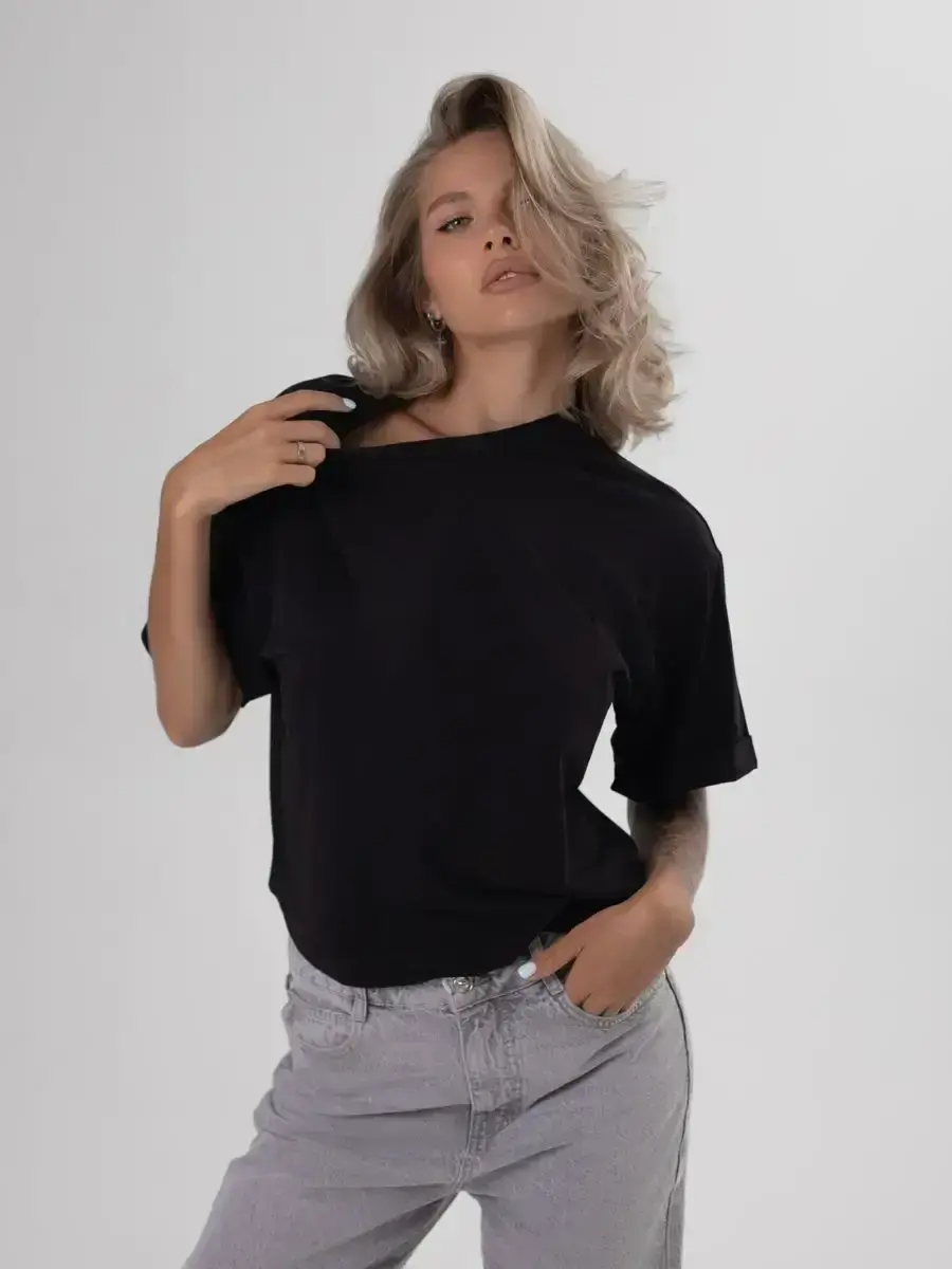 Футболка женская укороченная LARETTO станет незаменимым брендом в гардеробе каждой девушки! Модель оверсайз прямого кроя со спущенным плечом – тренд этого лета! Базовый топ универсальный, он отлично подходит как для создания повседневных образов, так и в качестве домашней одежды. Очень удобен для занятий спортом и фитнесом, так как не сковывает движений.