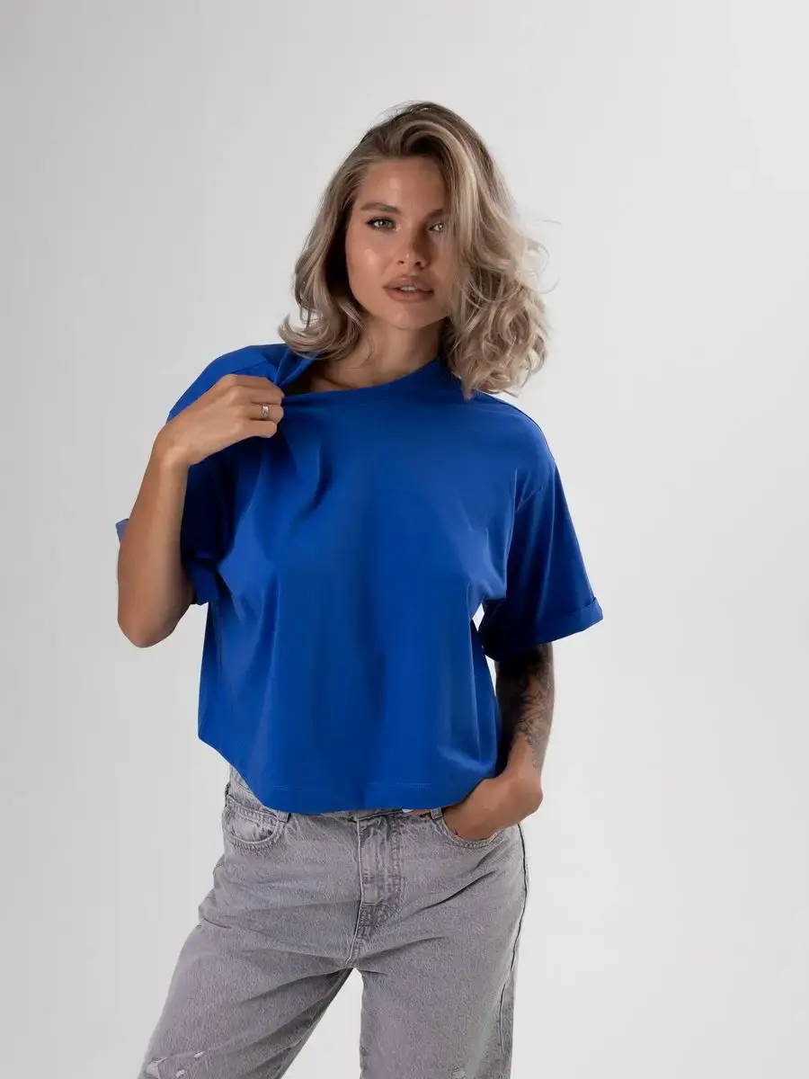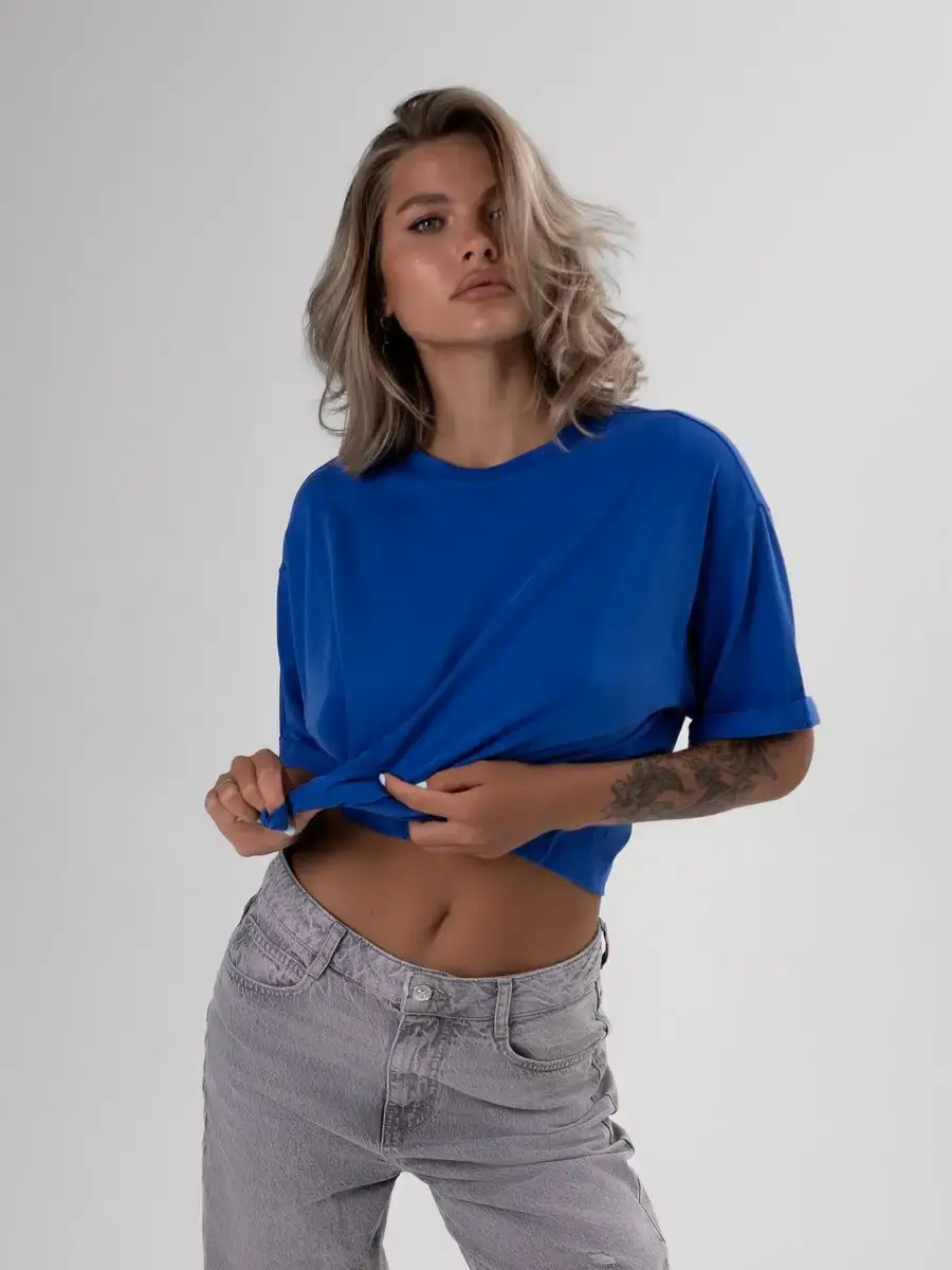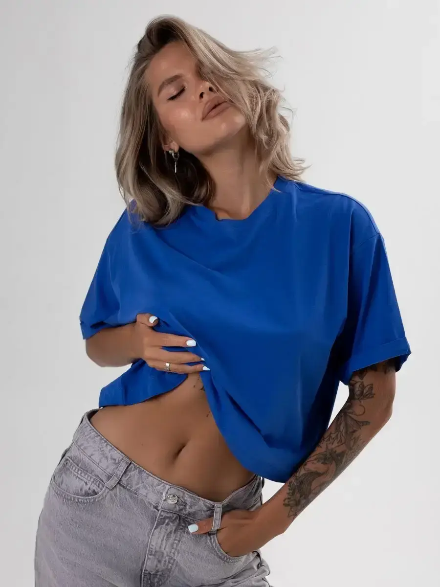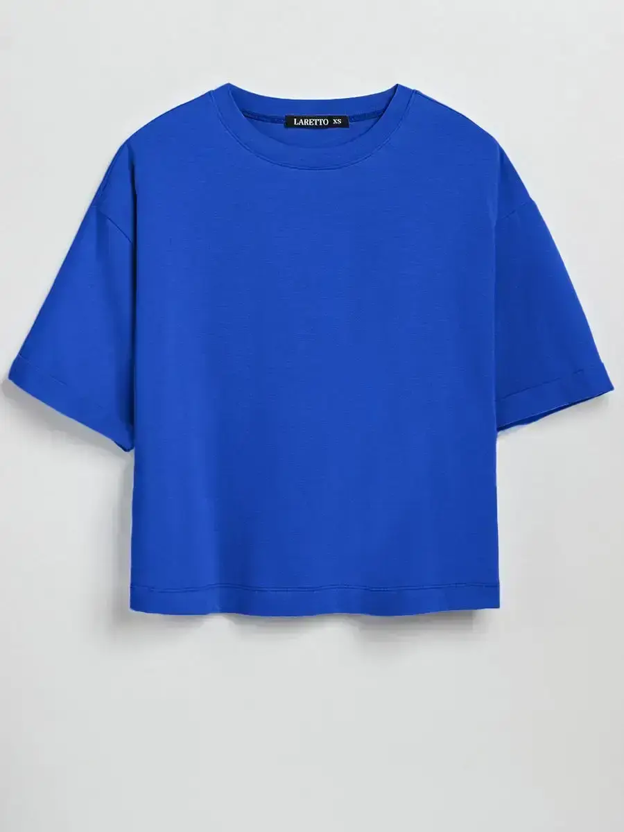 Футболка женская укороченная LARETTO станет незаменимым брендом в гардеробе каждой девушки! Модель оверсайз прямого кроя со спущенным плечом – тренд этого лета! Базовый топ универсальный, он отлично подходит как для создания повседневных образов, так и в качестве домашней одежды. Очень удобен для занятий спортом и фитнесом, так как не сковывает движений.