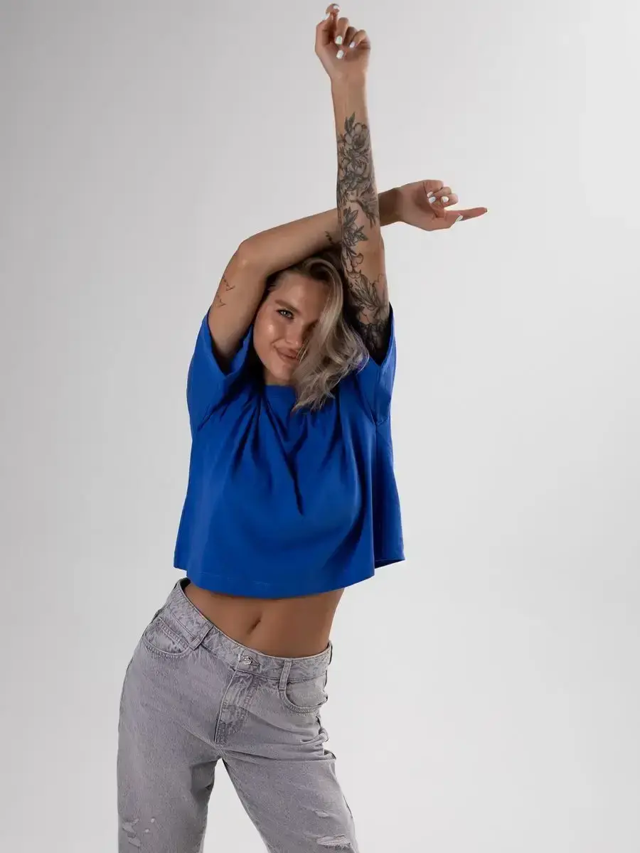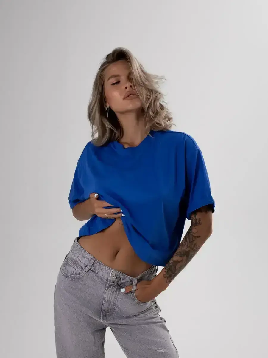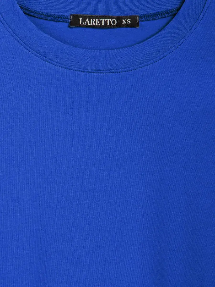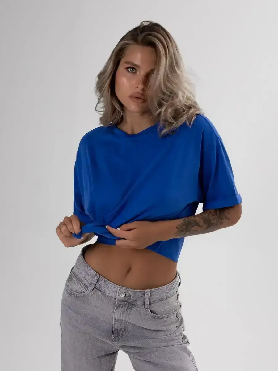 Футболка женская укороченная LARETTO станет незаменимым брендом в гардеробе каждой девушки! Модель оверсайз прямого кроя со спущенным плечом – тренд этого лета! Базовый топ универсальный, он отлично подходит как для создания повседневных образов, так и в качестве домашней одежды. Очень удобен для занятий спортом и фитнесом, так как не сковывает движений.