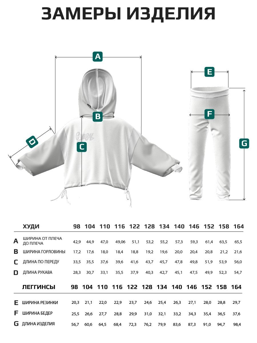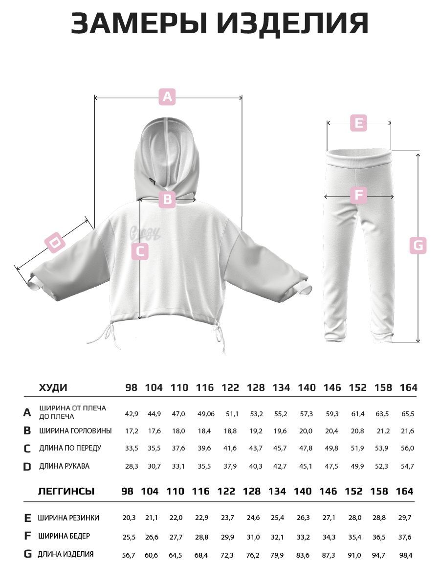 Футболка и худи выполнены из того же материала, что и леггинсы, и имеют круглый вырез горловины, который обеспечивает максимальный комфорт при носке.