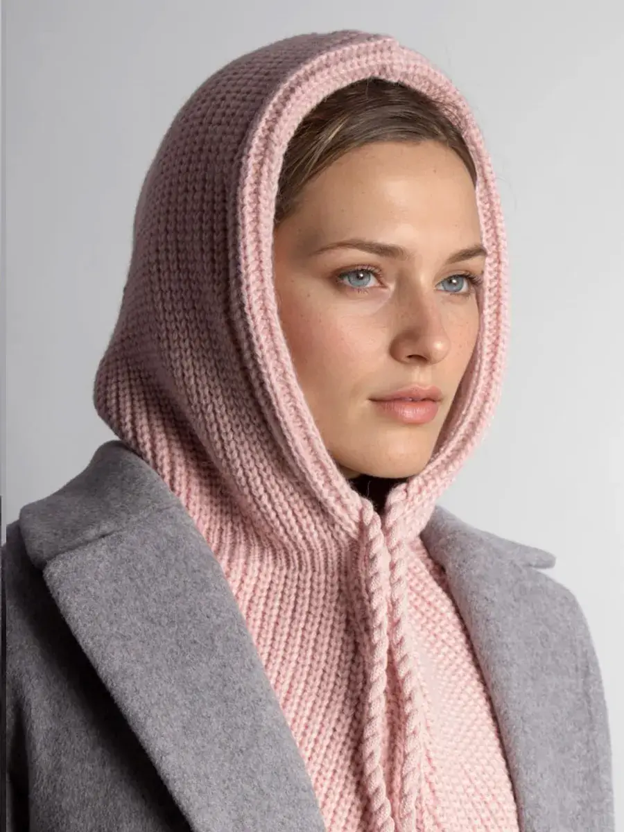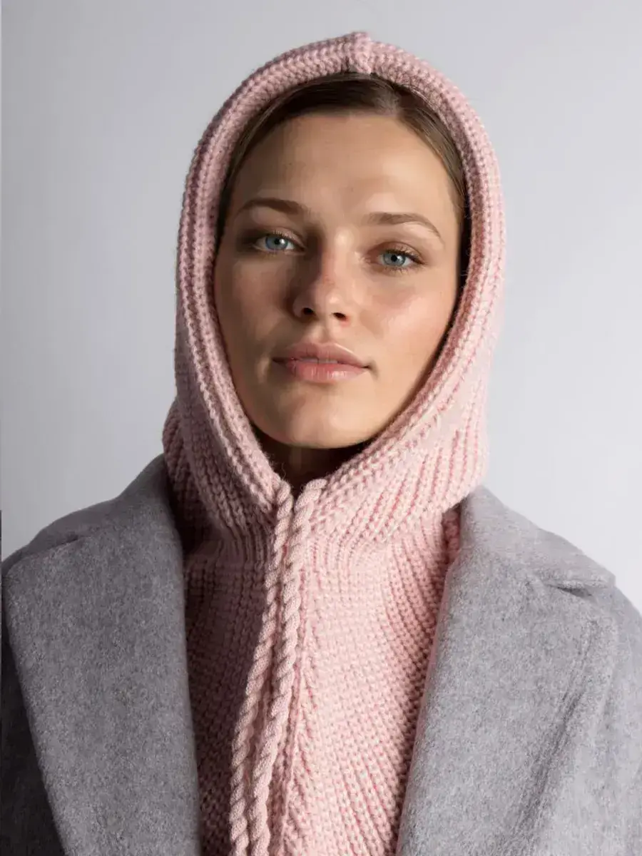 WB-009/00-0058530/Капор удлиненный женский вязаный, пудровый