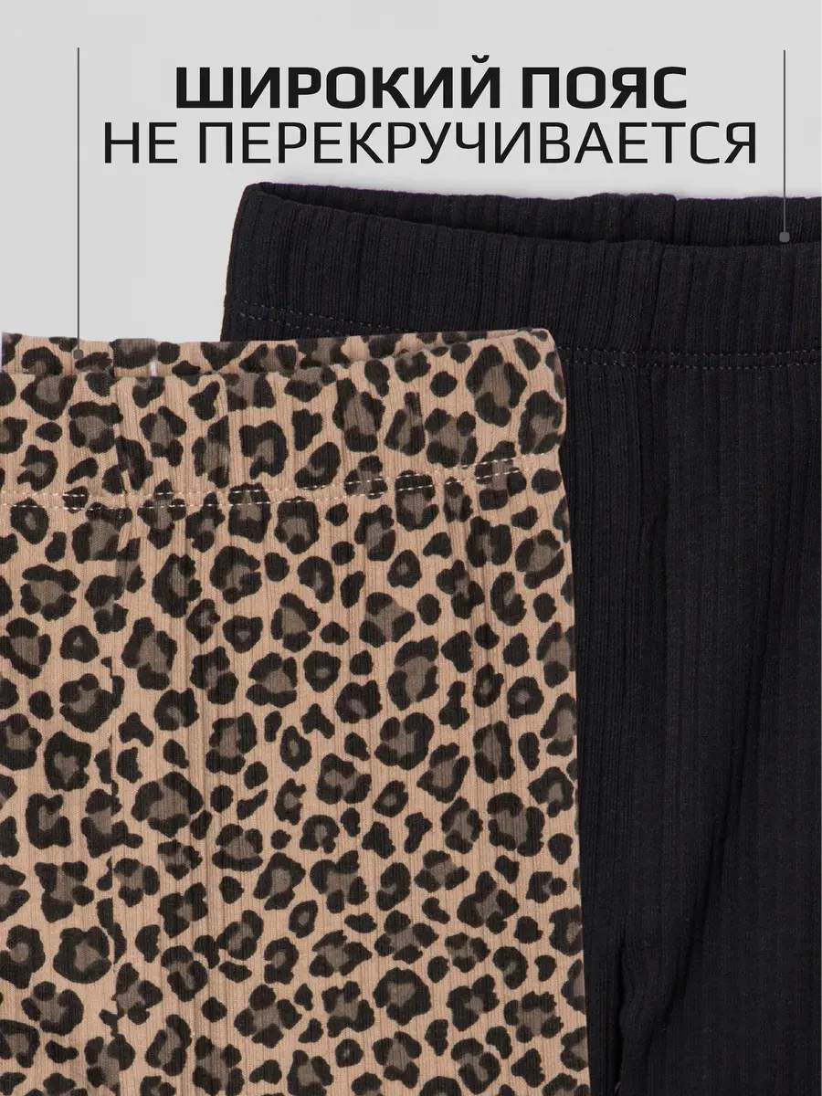 Черные леггинсы для девочки выполнены из легкой и прочной ткани, которая идеально подходит для гимнастики, танцев и физкультуры в школе. Леггинсы — это не только стильная вещь, но и удобная форма для занятий спортом. Леопардовые леггинсы детские позволяют свободно двигаться и проводить тренировочные упражнения без ограничений. Комплек из 2-х леггинс подойдет не только для занятий в школе, но и для активного отдыха на природе или походов в садик. Леггинсы идеально дополняют школьную или спортивную форму и подчеркивают стиль подростка.