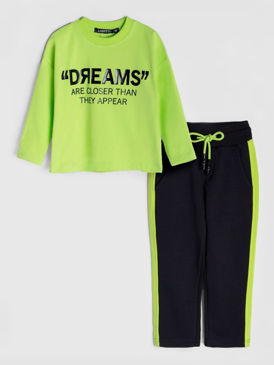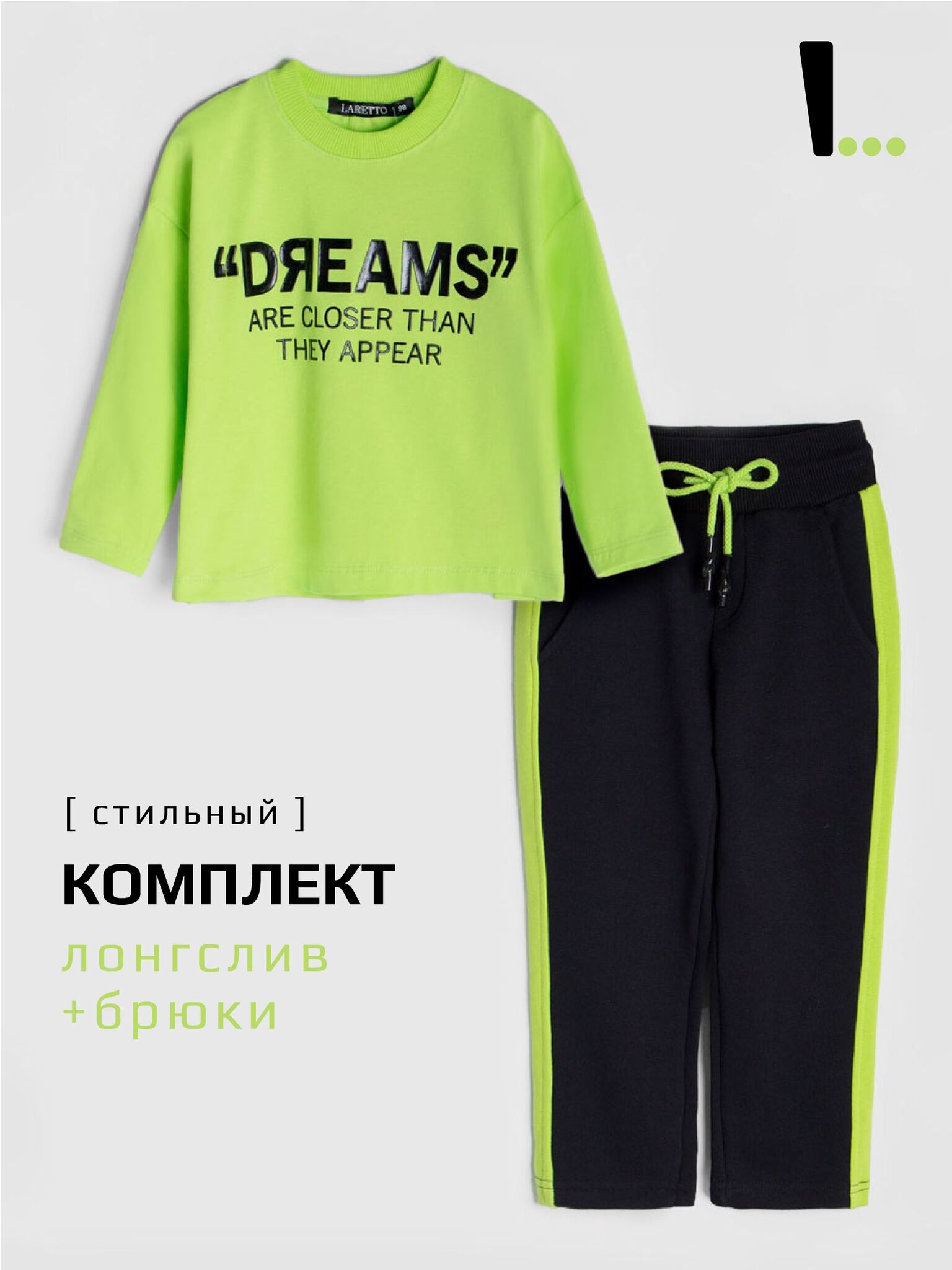 Костюм детский школьный трикотажный от бренда LARETTO - это практичный вариант для повседневной носки в детский сад, школу, на уроки физкультуры, катания на велосипеде и активных игр на свежем воздухе! Качественный крой и пошив Премиум класса выделит образ Вашего ребенка среди других! Лонгслив в школу детский имеет укороченную длину до талии, с длинными рукавами выполнен из 100% хлопка, отлично сидит и приятен к телу. Малышам будет очень комфортно в кофте свободного кроя и штанах с карманами на мягкой резинке. Брюки детские из футера 2-х нитка класса Пенье очень удобны в носке, хорошо тянутся и не сковывают движения. Модный школьный костюм ларетто идеален не только, как одежда для садика. Благодаря широкой размерной сетке (от 98 до 164) комплект станет стильным решением для подростков. Индивидуальная расцветка позволит выбрать костюм к любому гардеробу. Красивый принт добавит изюминку любому образу! Одежда для девочки подходит для теплой погоды на весну и лето. В сочетании с бейсболкой и кроссовками можно собрать модный look для похода в кино или кафе. Летний костюм максимально удобен в качестве домашней одежды. При производстве детских вещей мы используем только гипоаллергенные материалы, которые не вызывают раздражения на чувствительной коже ребенка. Для того чтобы костюм для мальчика и девочки радовал Вашего ребенка дольше, очень важно соблюдать рекомендации по уходу за изделием (бережная стирка при t не более 30С). При выборе размера ориентируйтесь на таблицу мерок в карточке товара. Обращаем Ваше внимание, что правильное определение размера детской одежды напрямую зависит от индивидуальных особенностей ребёнка. В нашем магазине представлен большой ассортимент одежды для садика и школы на любой сезон! Приятных Вам покупок!