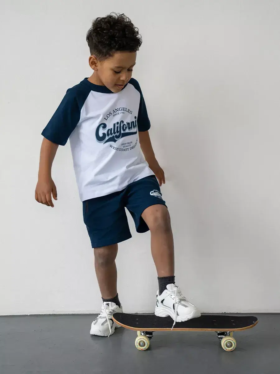 Трикотажный летний костюм от бренда LARETTO покорит каждого подростка своим комфортом и стилем! Этот повседневный комплект, состоящий из футболки и шорт, идеально подходит для отдыха и спортивных занятий, таких как футбол и баскетбол, а также в качестве домашней одежды. Это подходящий вариант для малышей в садик. Верх оверсайз с принтом, вдохновленный современными мотивами, добавит индивидуальности в любой образ.